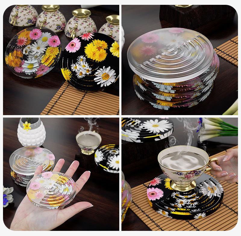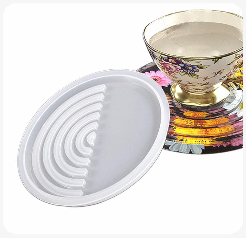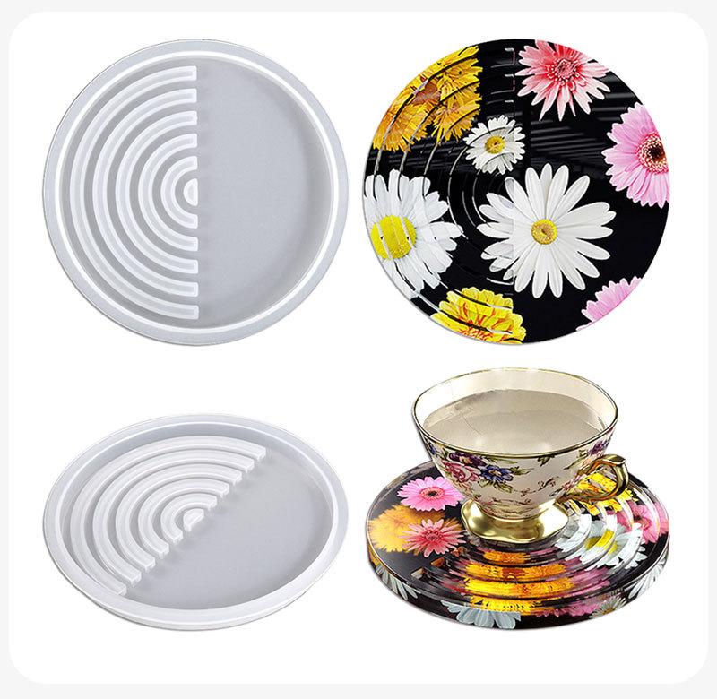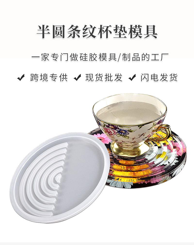 Molde de resina de gota de cristal para bricolaje, molde de silicona para posavasos de rayas semicirculares redondas con espejo alto, venta al por mayor