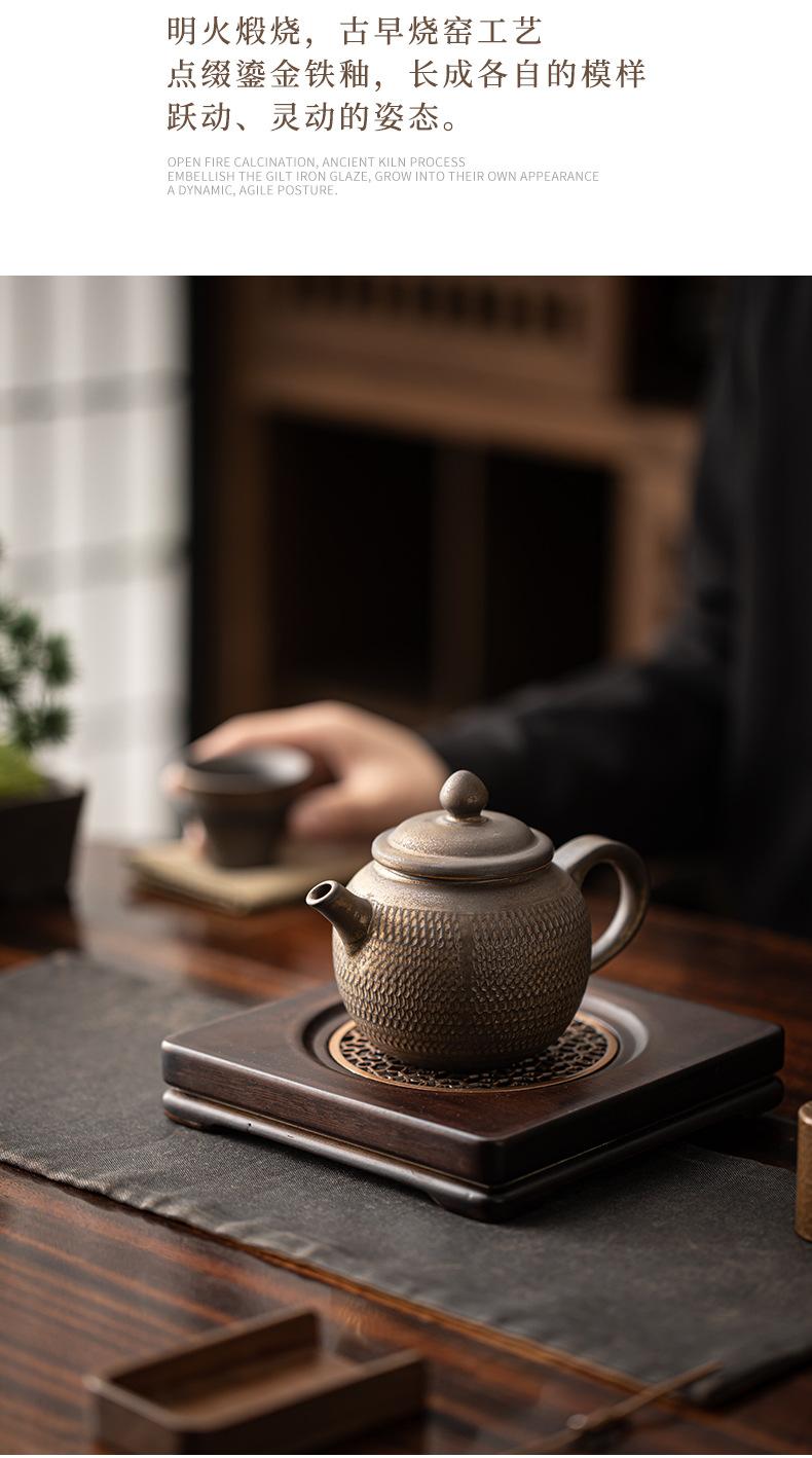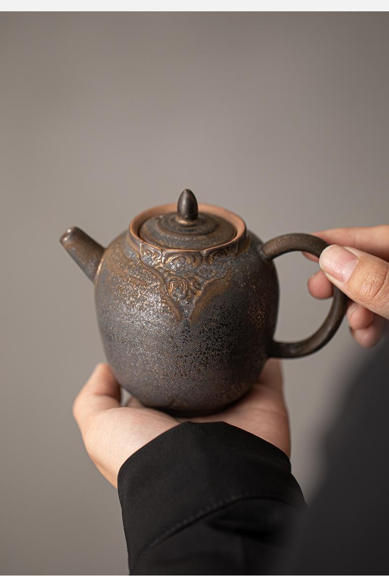 Tetera de kung fu de cerámica retro con filtro de agujero de bola, estilo japonés, con hierro esmaltado en oro y cambio de horno, tetera pequeña de una sola tetera