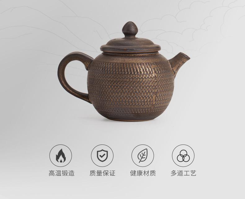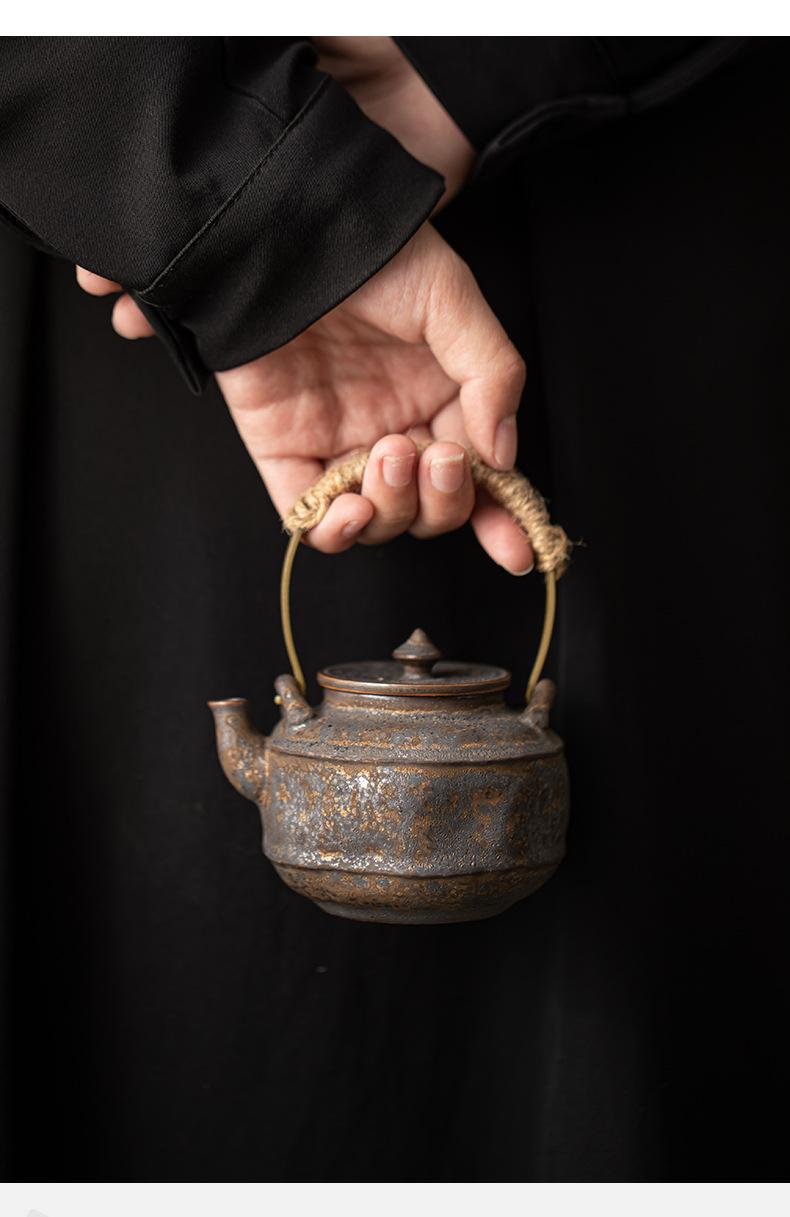 Compra Tetera de kung fu de cerámica retro con filtro de agujero de bola, estilo japonés, con hierro esmaltado en oro y cambio de horno, tetera pequeña de una sola tetera al por mayor en Joom.pro