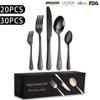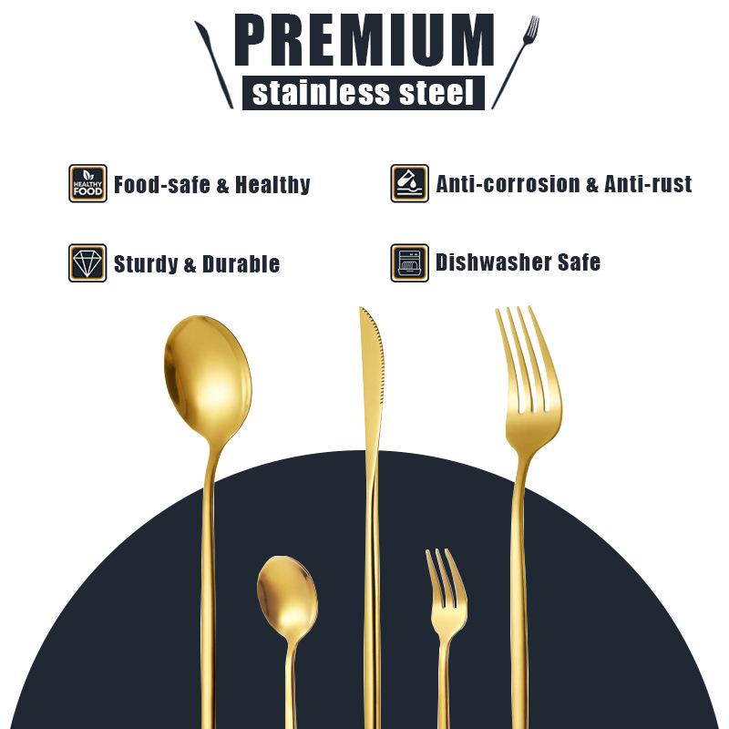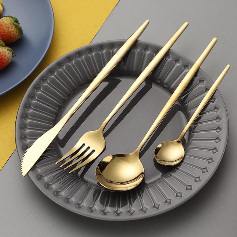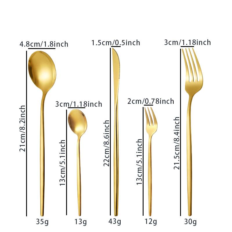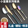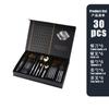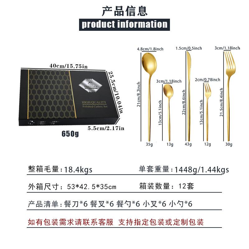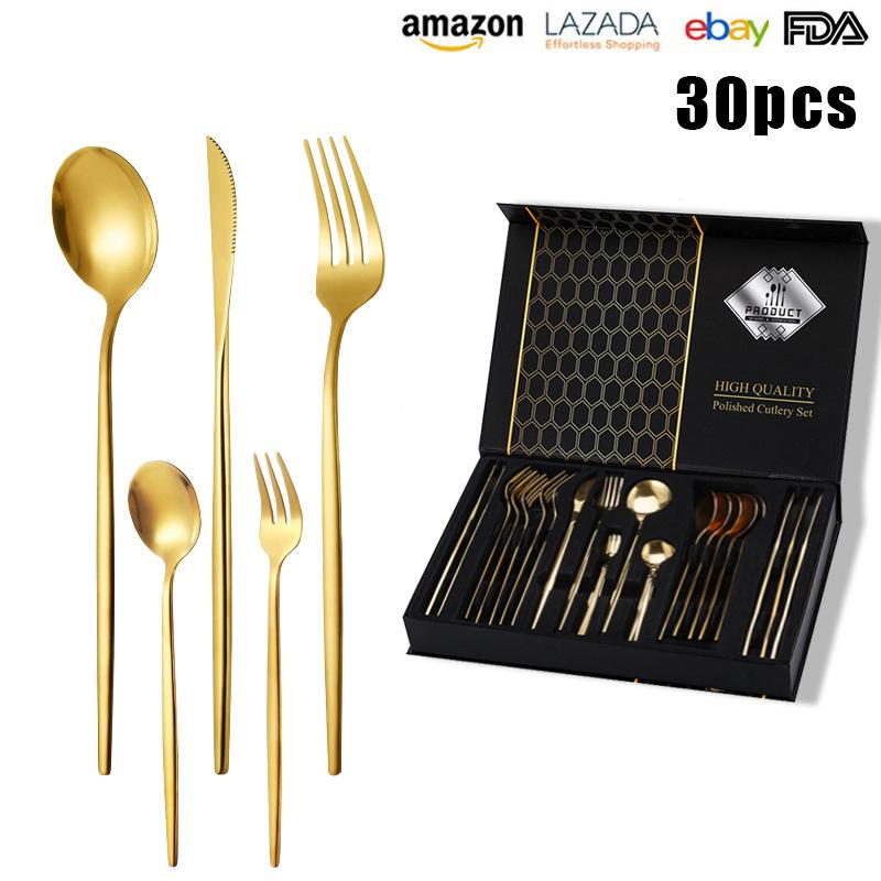 Vajilla de acero inoxidable de gran venta transfronteriza, 30 piezas, cuchillo y tenedor, cuchara, juego de cuchara, estilo occidental, cuchillo y tenedor dorados, caja de regalo.