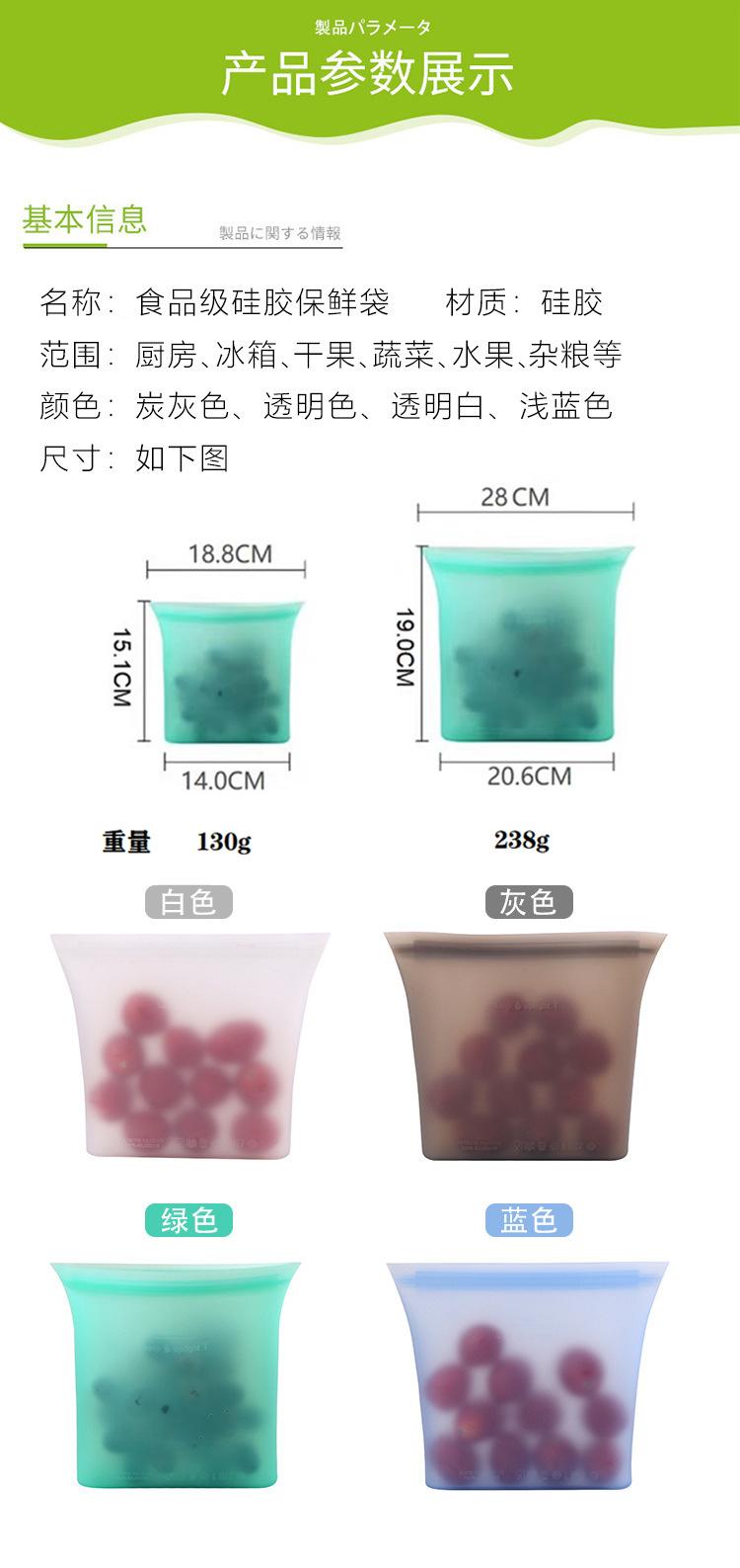 Food grade silicone fresh-keeping bags, multiple uses, outdoor storage sealed bags, silicone food bags can be recycled