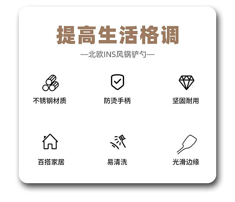 Pala para saltear escandinava Cuchara para saltear de acero inoxidable Cuchara para sopa Utensilios de cocina Artículos para el hogar