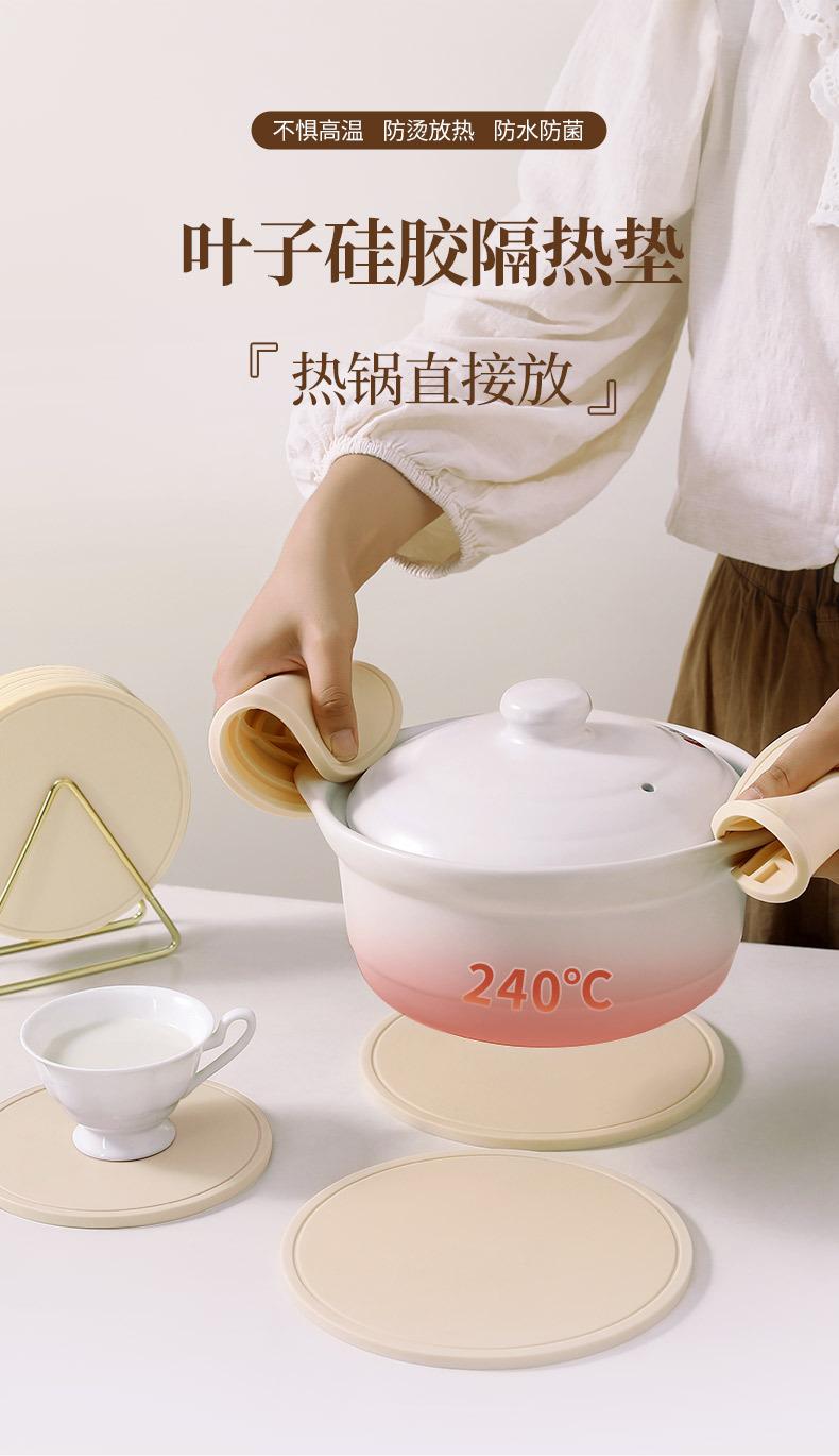 Tapete Aislante de Silicona con Forma de Hoja Creativo Resistente a Altas Temperaturas para Mesa de Hogar Nórdico Anti-Escaldaduras Tapete para Olla Tapete para Plato de Cena Posavasos Venta al por Mayor