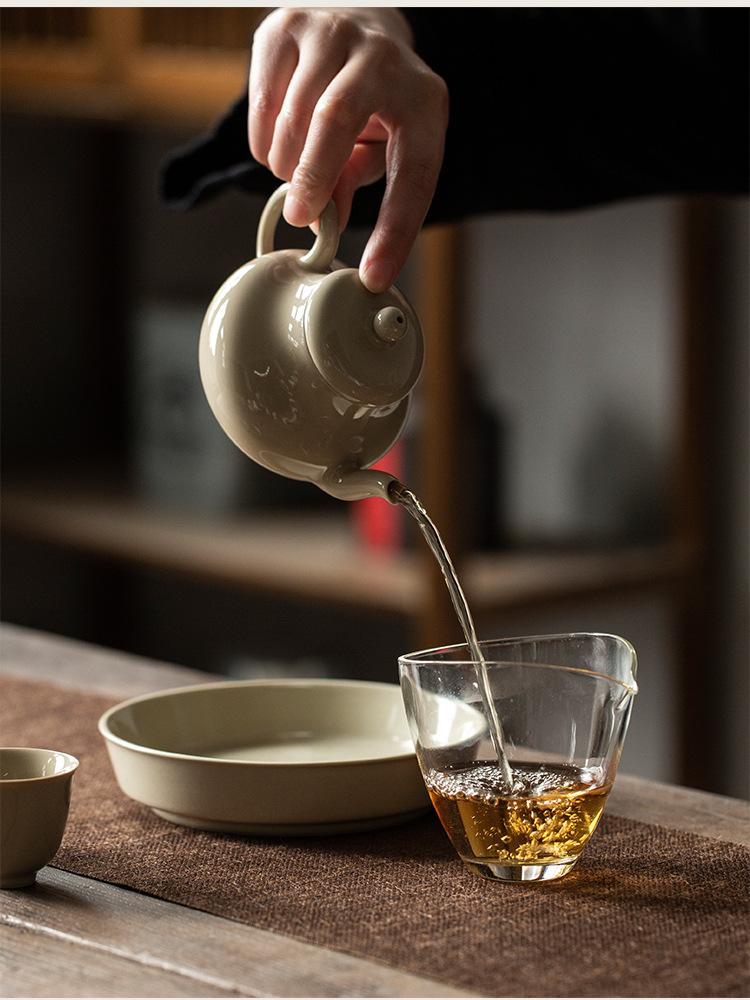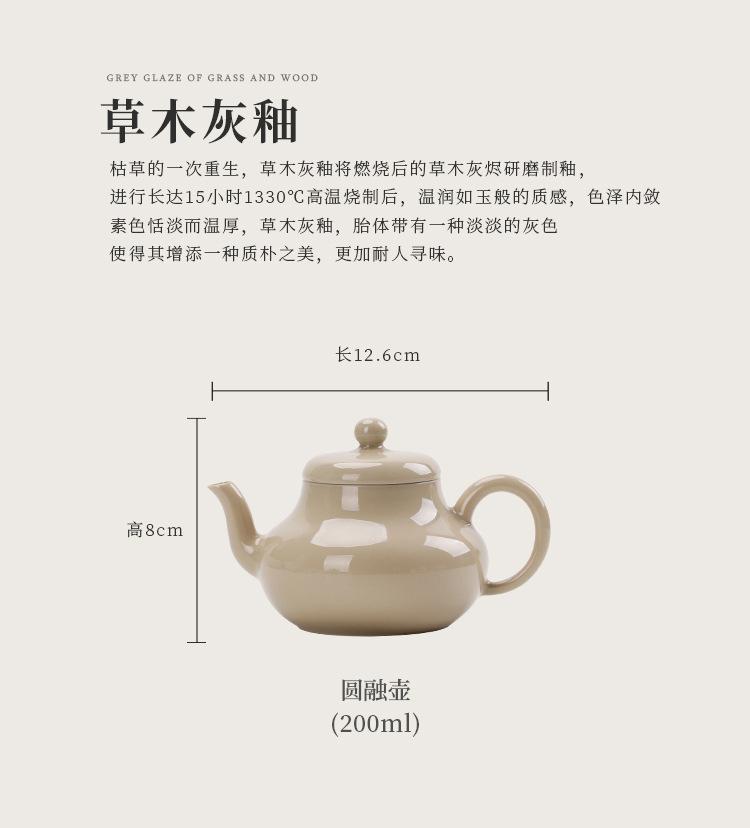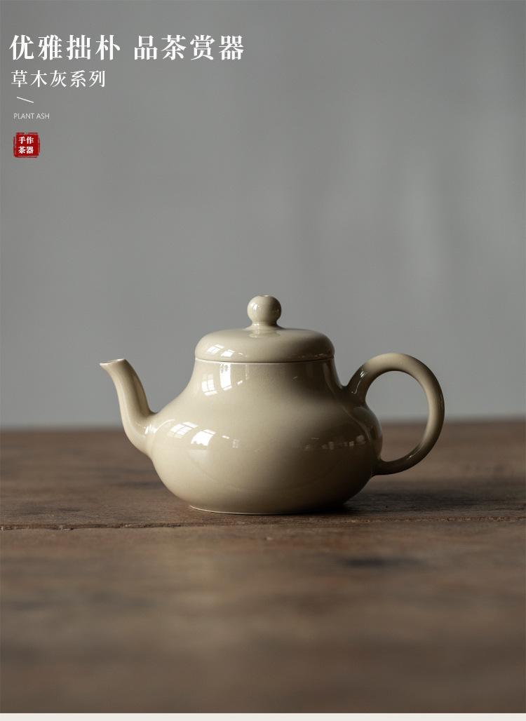 Tetera de cerámica con esmalte ceniza de hierba retro japonés, tetera individual hecha a mano, tetera pequeña para el hogar, juego de té pequeño kung fu, tetera