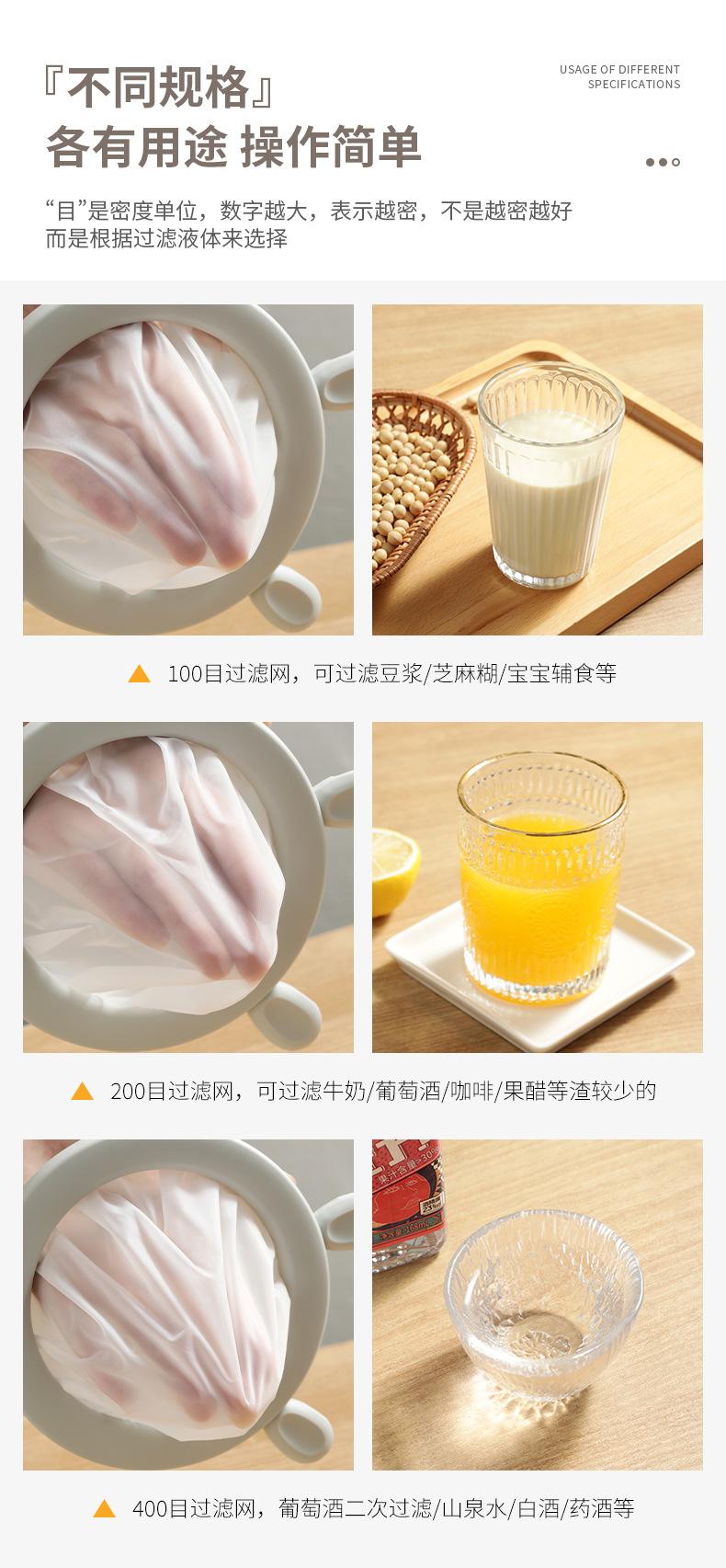 Bolsa de filtro de malla, colador de cocina, filtro de leche de soja, filtro doméstico ultrafino para fugas de jugo, filtro separador de residuos