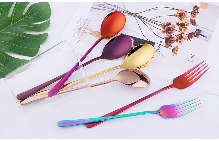 Juego nuevo de cuchara y tenedor 2017, estilo coreano, siete colores disponibles,