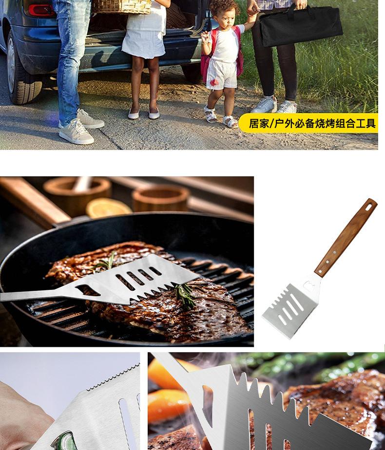 Juego de herramientas combinadas para barbacoa de acero inoxidable transfronterizo, suministros para barbacoa al aire libre, pala, cepillo, combinación de barbacoa