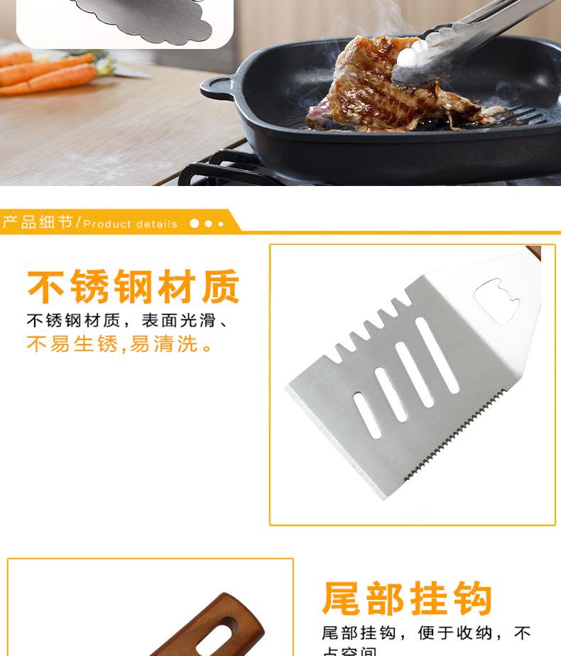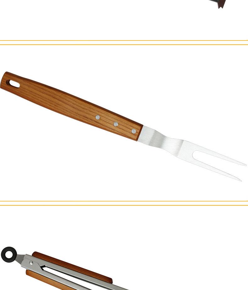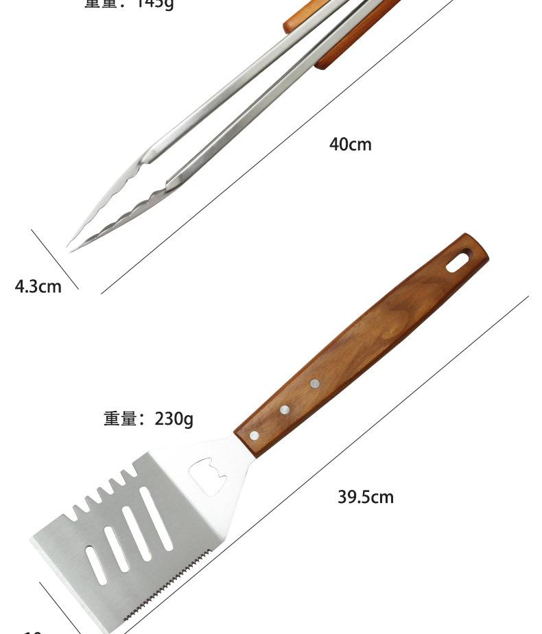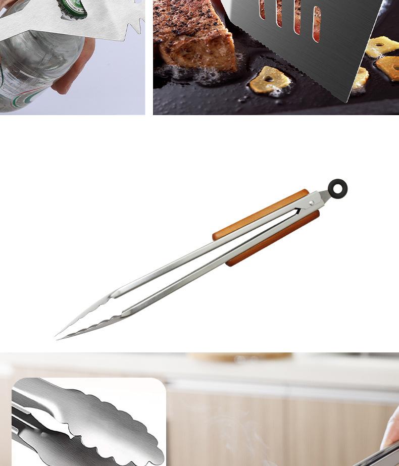 Juego de herramientas para barbacoa de acero inoxidable, cuchillo, pala, tenedor, pinza, mango de madera, herramientas de cocina occidentales