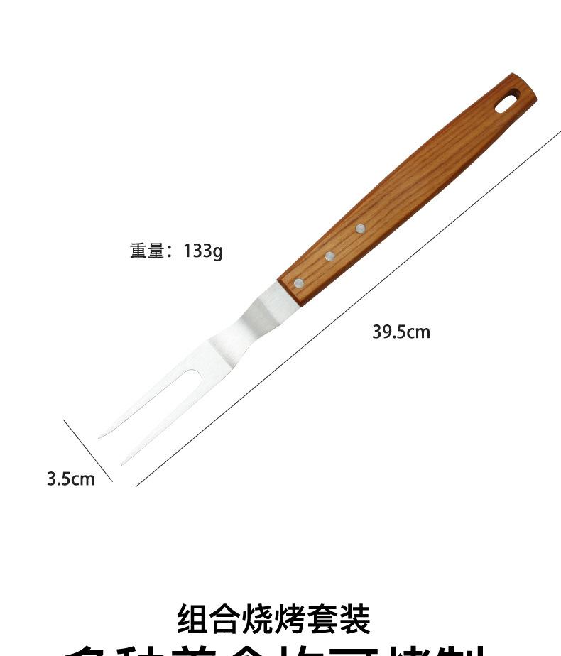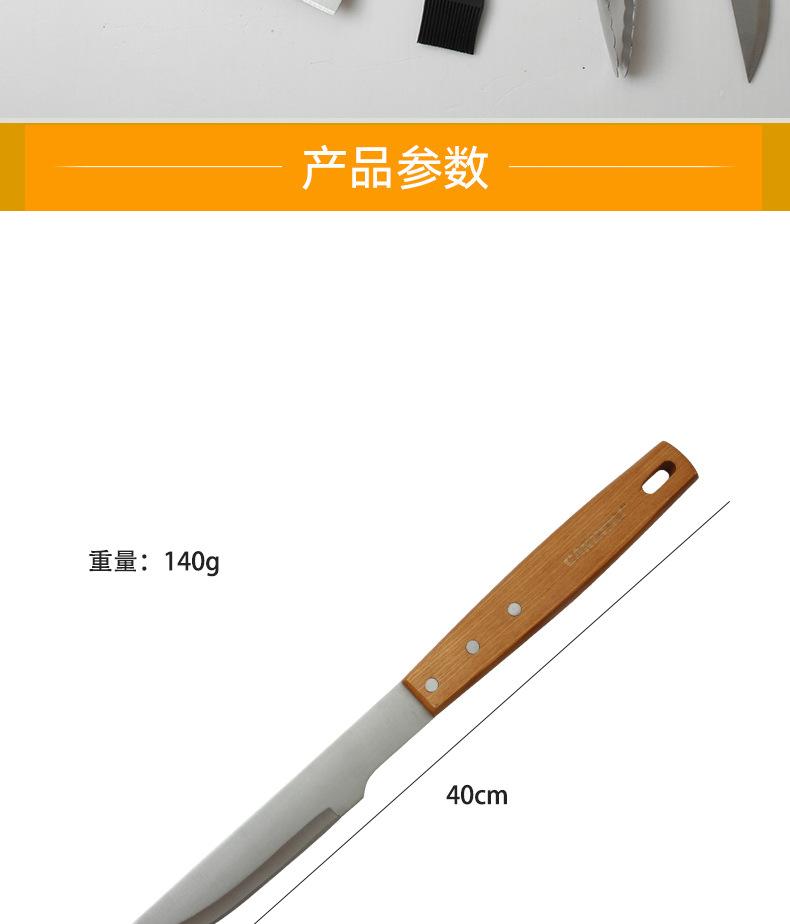Combinación de herramientas para barbacoa: juego de herramientas de acero inoxidable para barbacoa, cuchillo, pala, tenedor, clip, mango de madera, utensilios de cocina de comida occidental.
