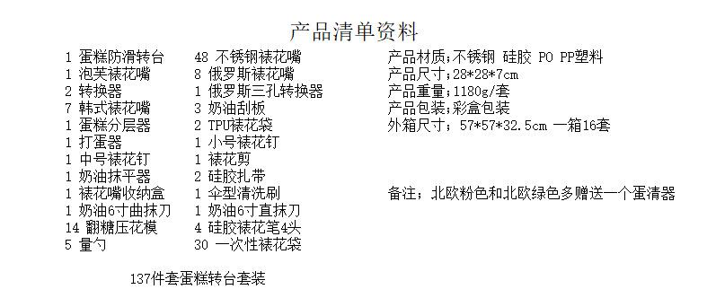 Nordic powder 137-piece cake turntable set