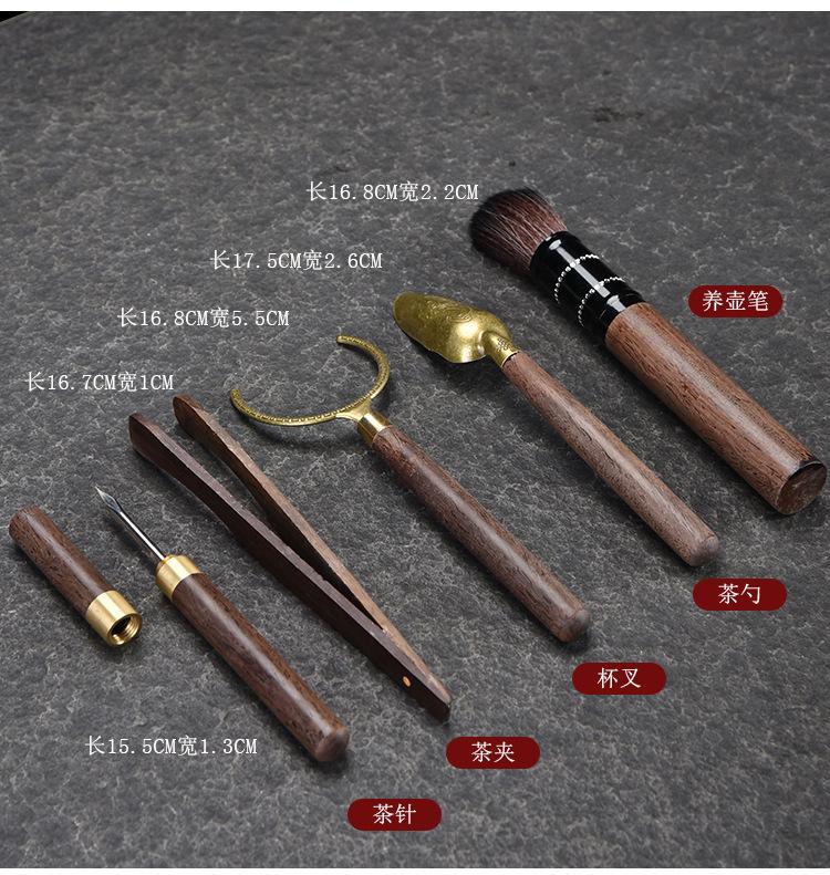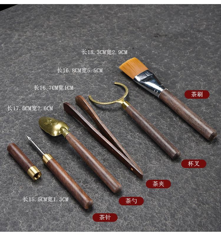 Juego de seis caballeros para ceremonia del té de baquelita al por mayor, accesorios para juego de té kung fu, suministros, herramientas para el té, tetera, cuchillo, cuchara para té
