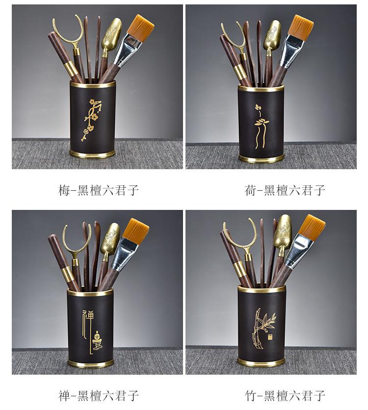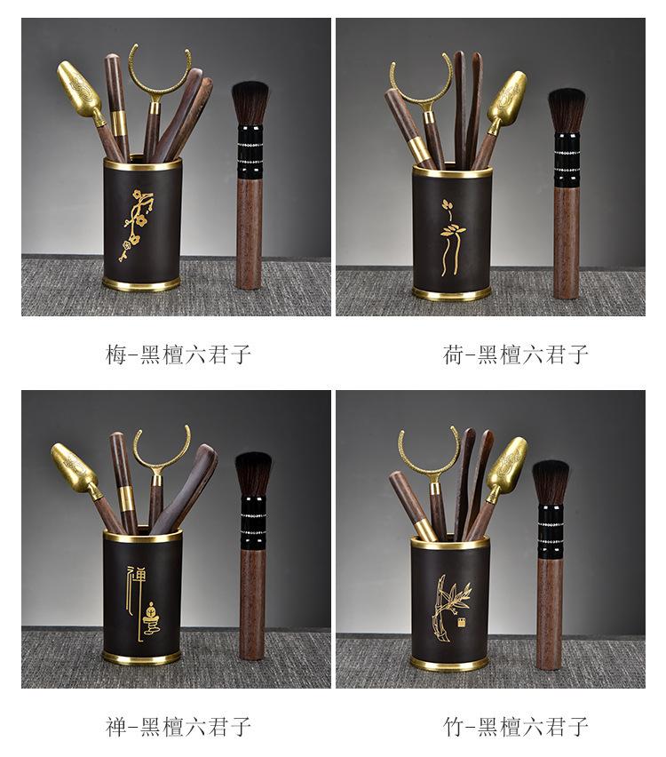 [heyun] bakelite tea ceremony tube + ebony copper wood five accessories