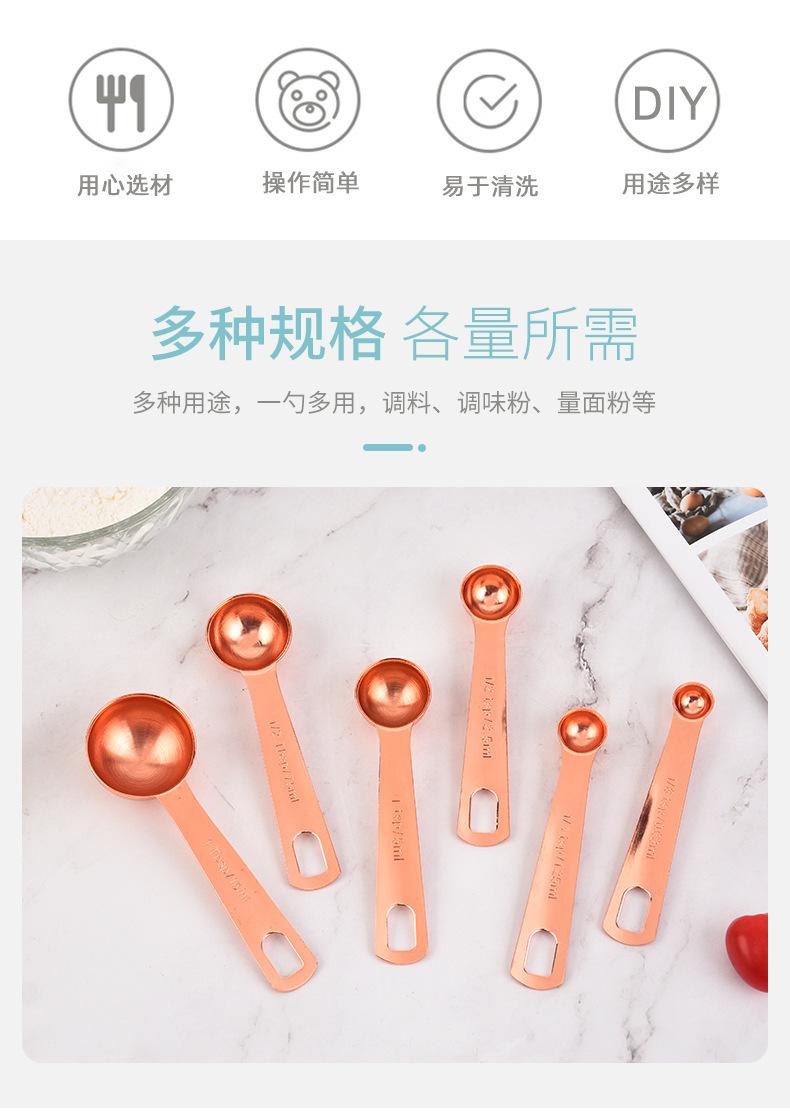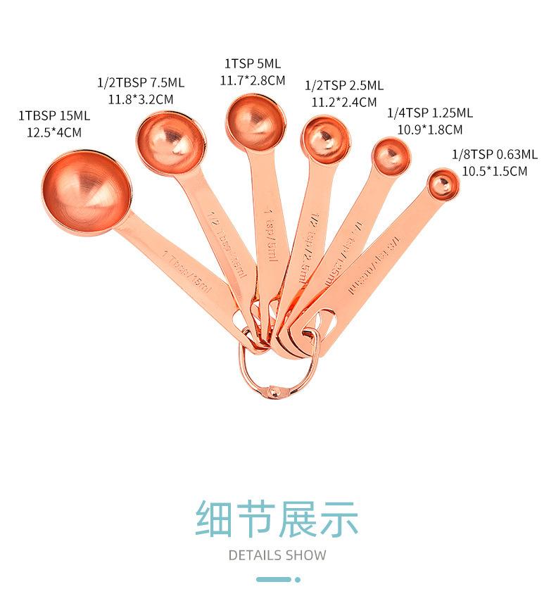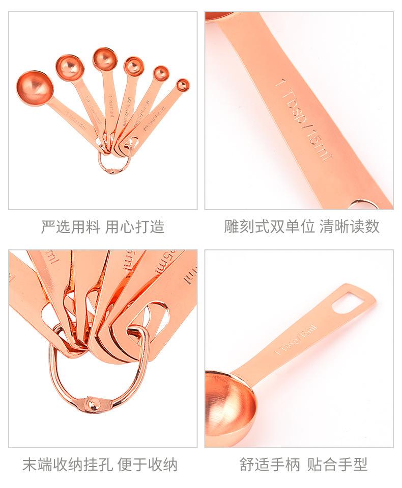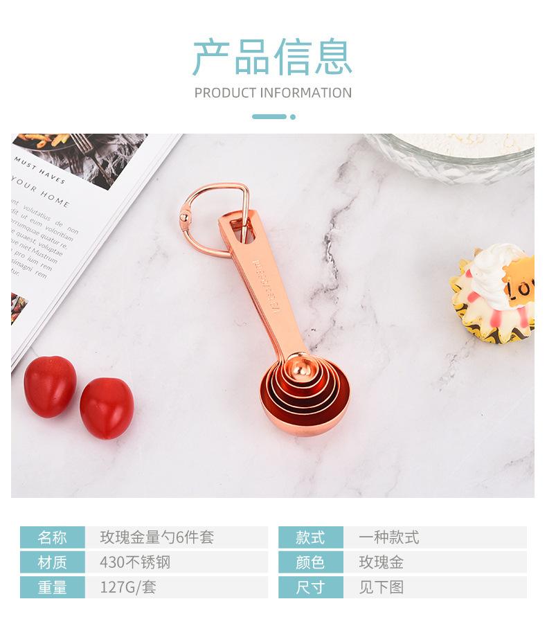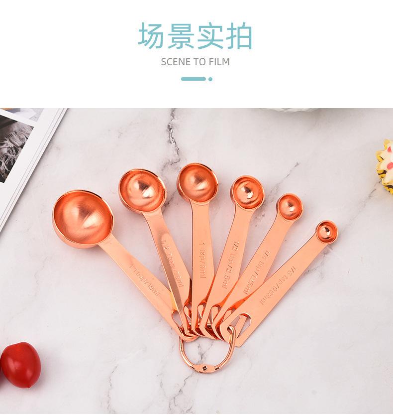 Juego de 6 cucharas medidoras de acero inoxidable en oro rosa con escala, cuchara medidora, cuchara para condimentar, herramienta para hornear en la cocina en stock