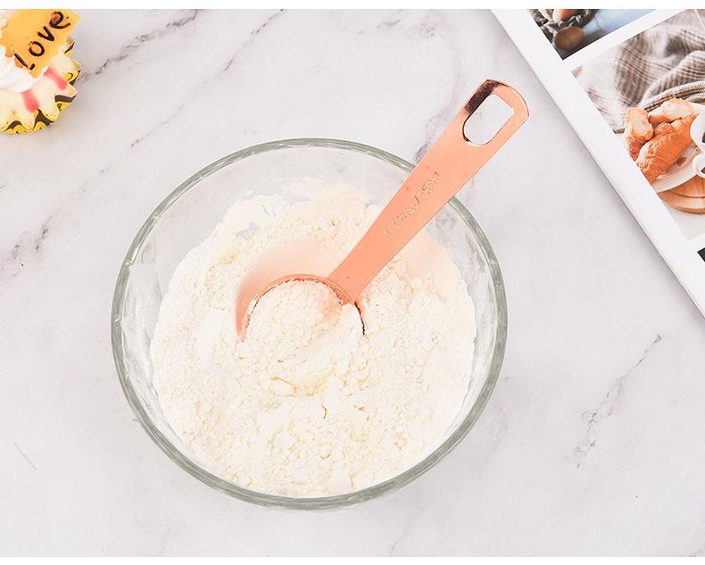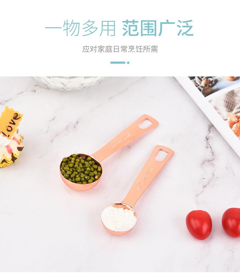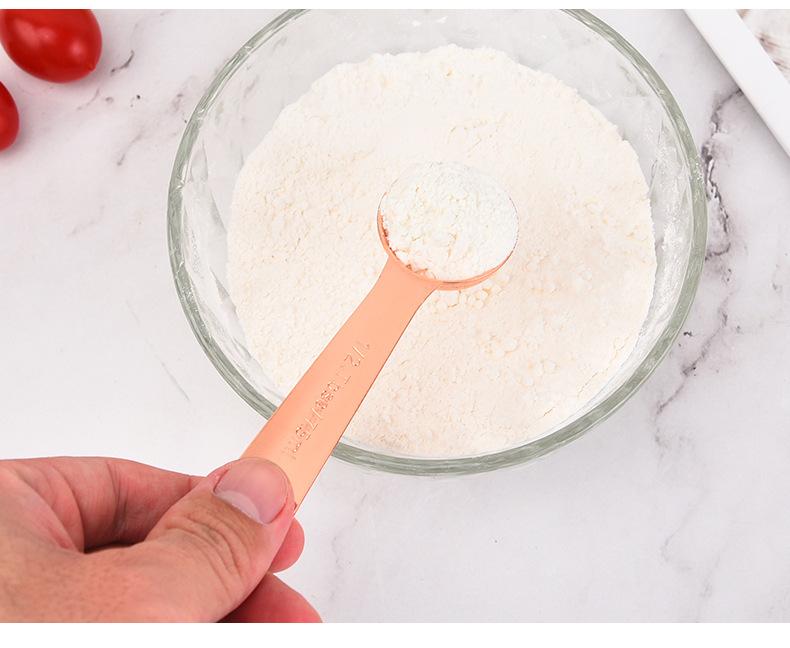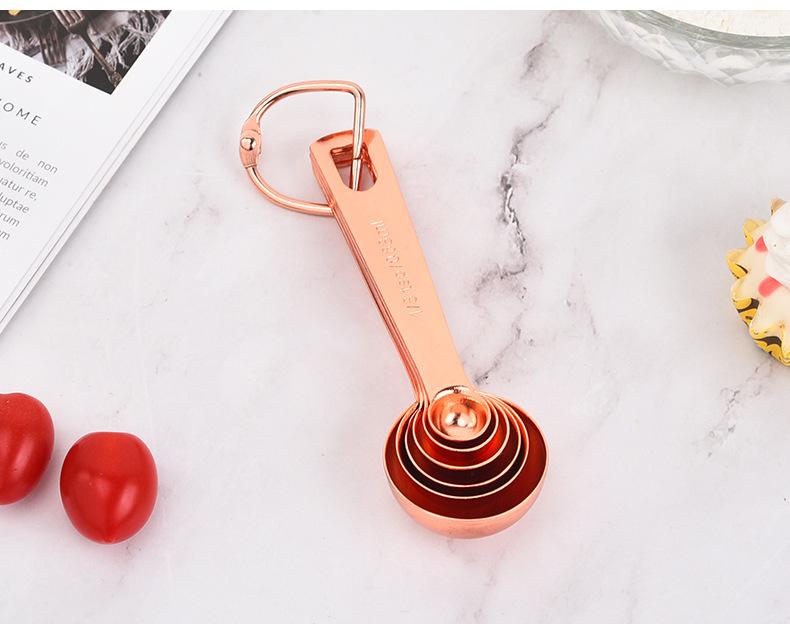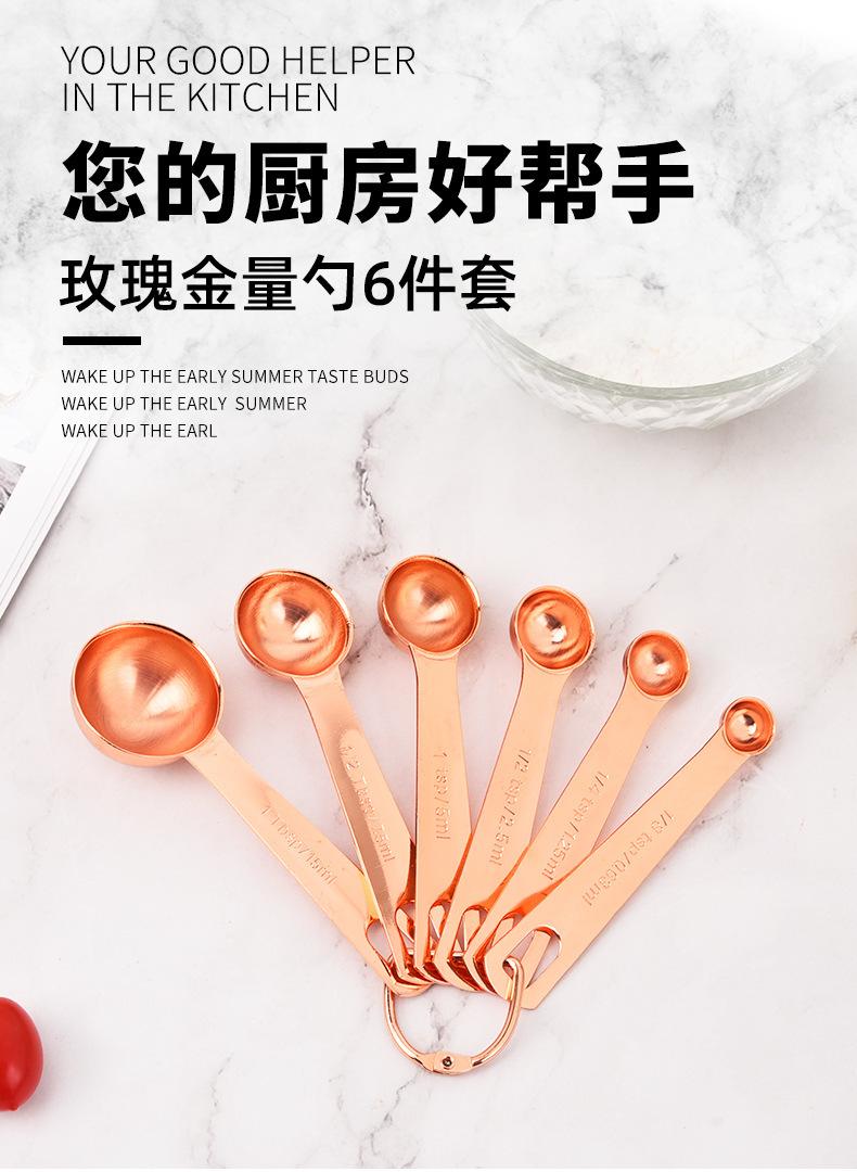 Juego de 6 cucharas medidoras de acero inoxidable en oro rosa con escala, cuchara medidora, cuchara para condimentar, herramienta para hornear en la cocina en stock