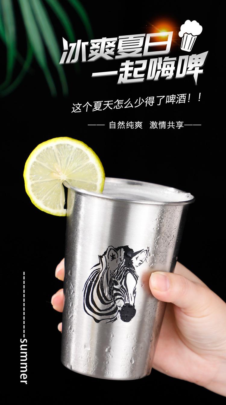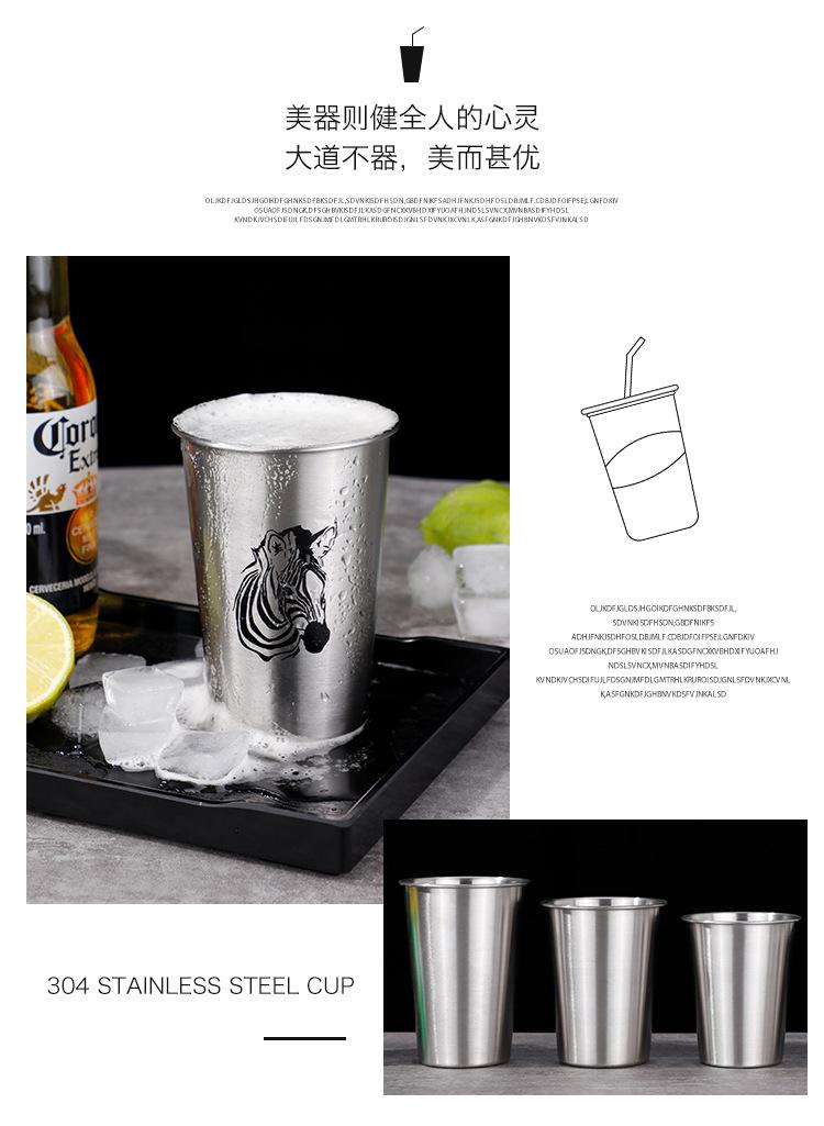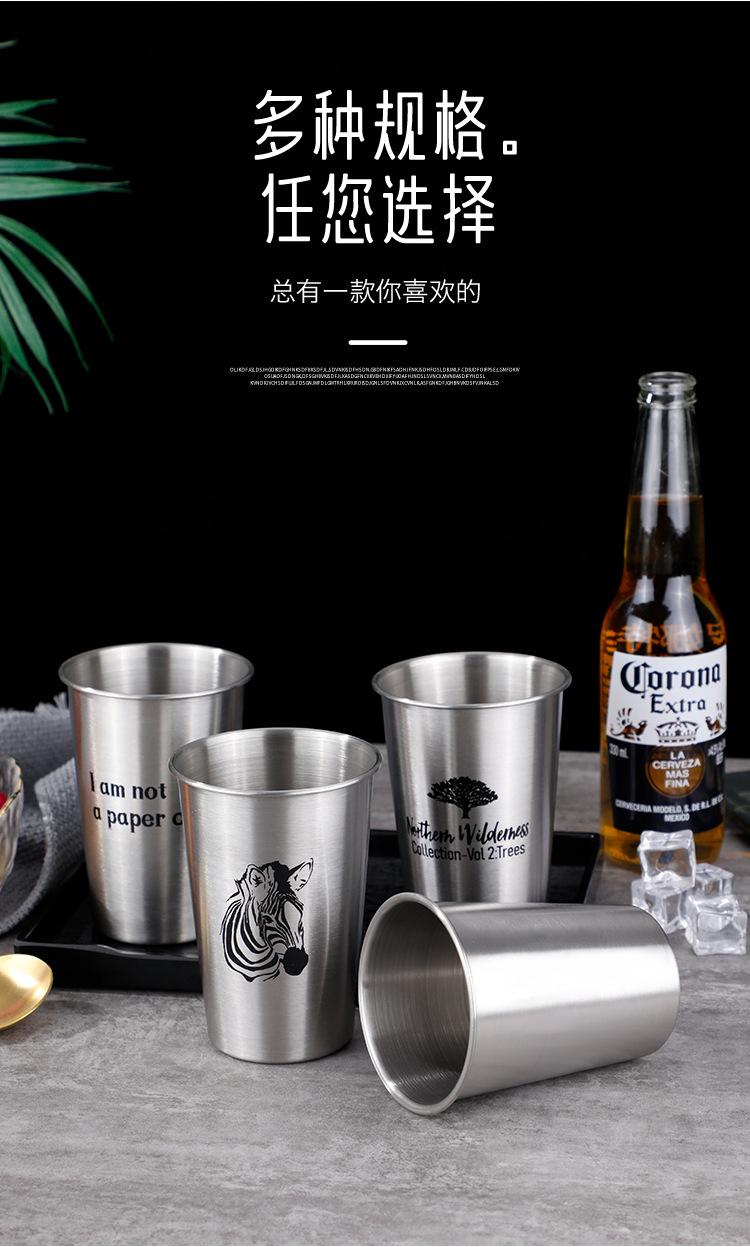 Vaso de cerveza de acero inoxidable 304 estilo coreano, de una sola capa, resistente a caídas, para uso doméstico, para restaurante, grueso, para bebidas frías para niños.