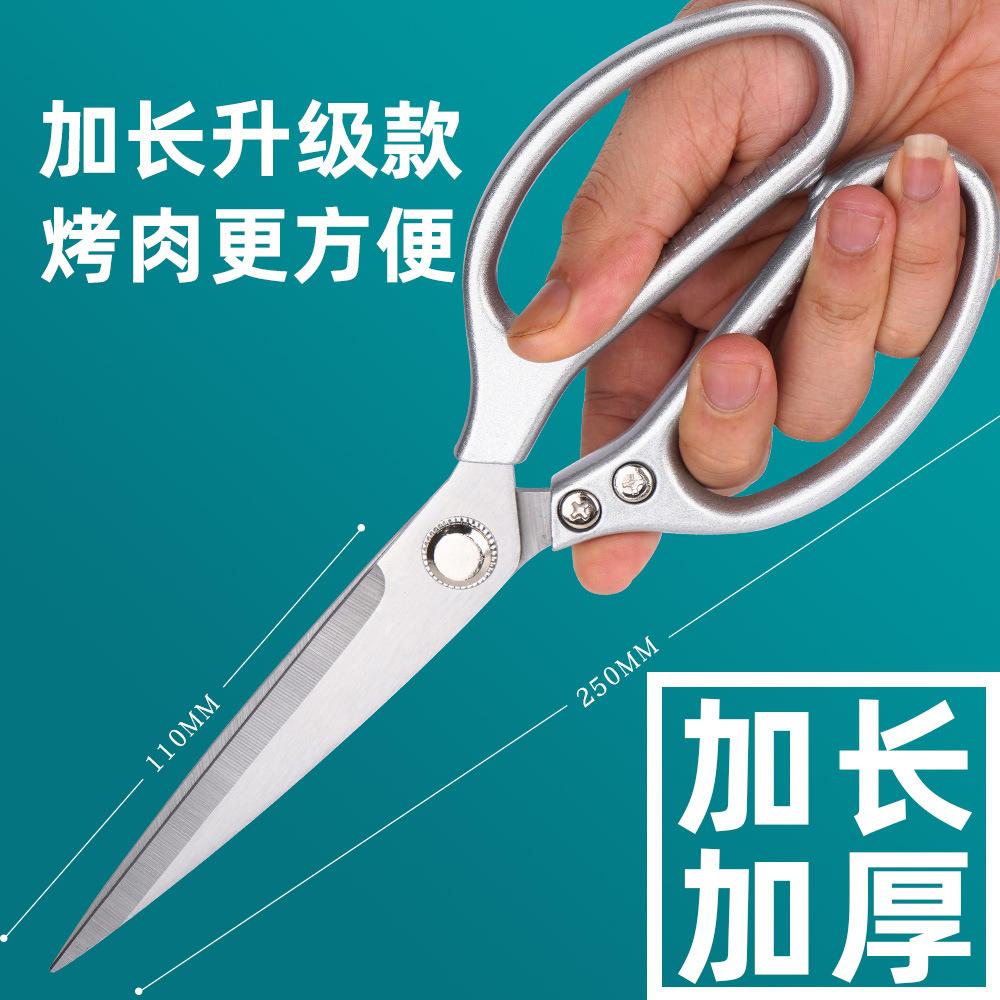 Tijeras de acero inoxidable potentes para barbacoa, para cocina, hogar, para cortar pollo, cortar pescado, largas, gruesas, antiescaldaduras, antioxidantes, para alimentos, grandes.