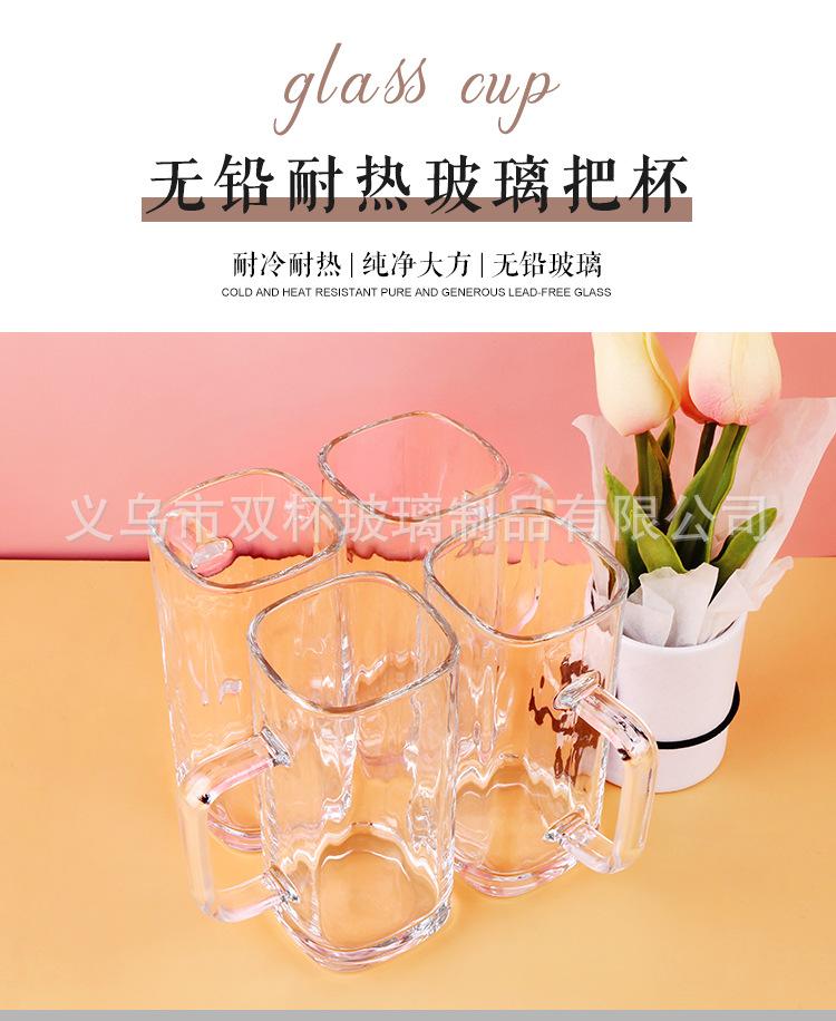 Vaso simple transparente grueso con asa para jugo, vaso de vidrio para té de frutas, vaso rayado para té con leche, vaso para cerveza