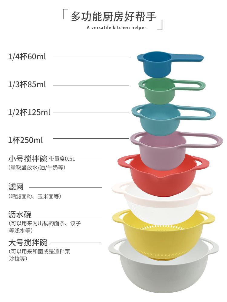 Herramientas para Hornear Taza Medidora Cuchara Medidora Juego de Ocho Piezas Cocina Doméstica Cuchara para Sal Cuchara Medidora para Condimentos Multifuncional Ensaladera Arcoíris