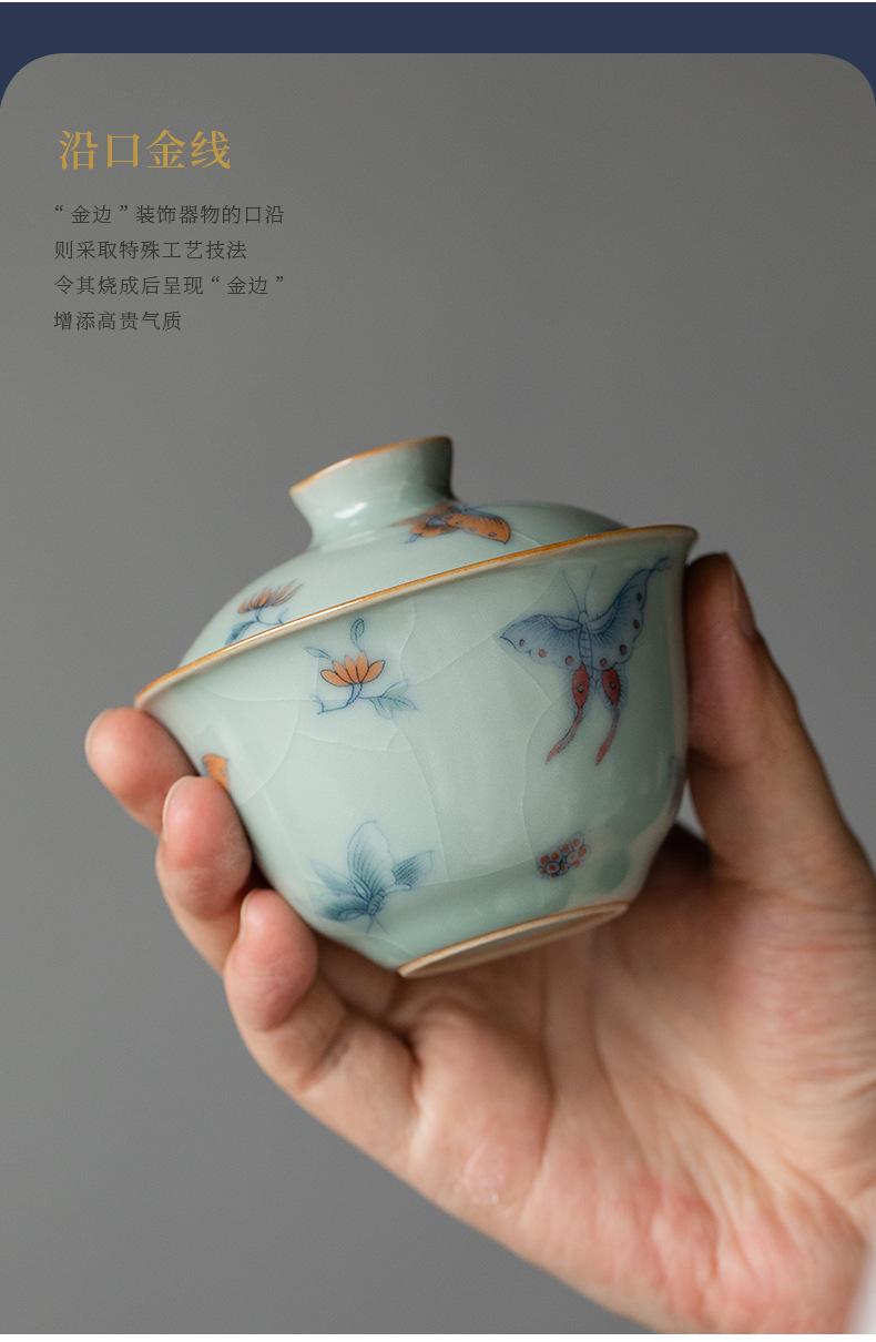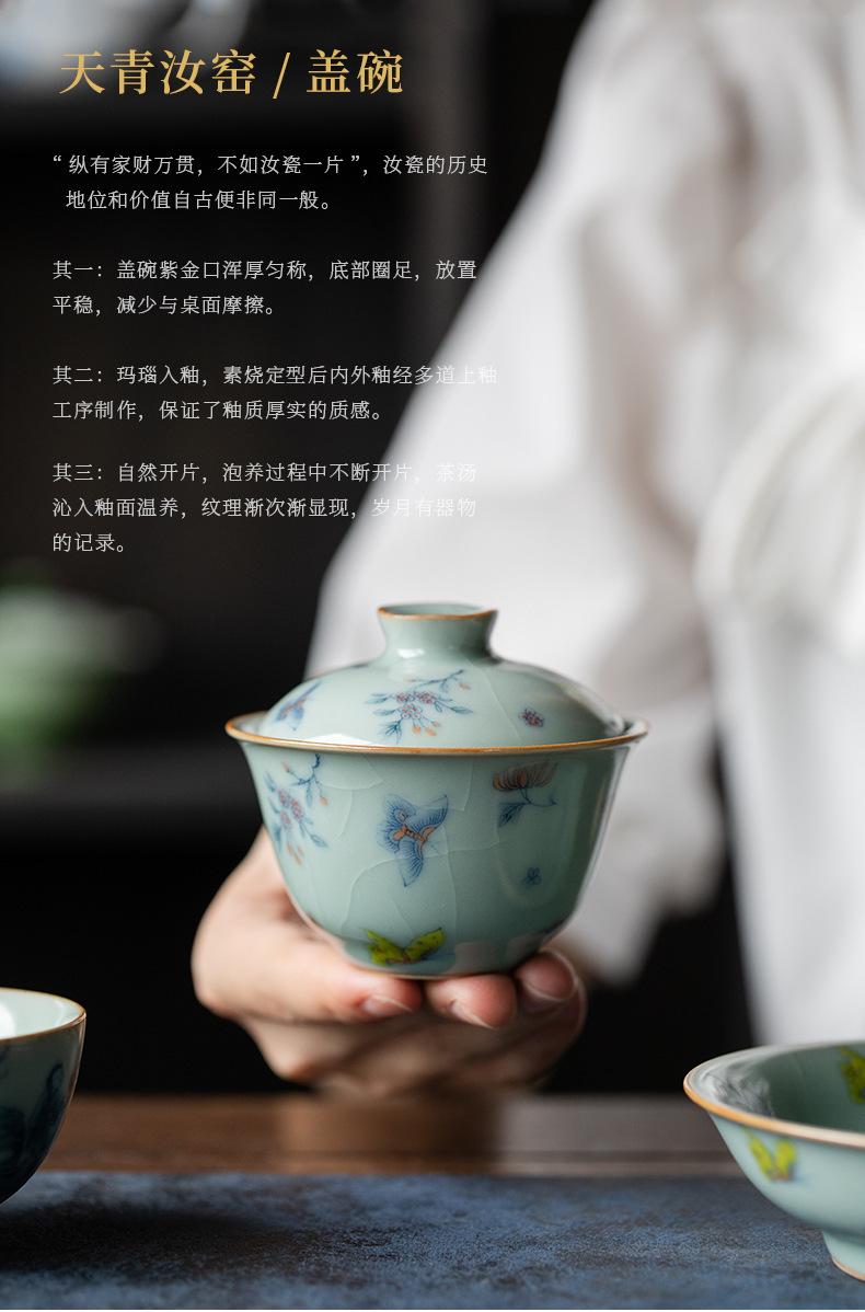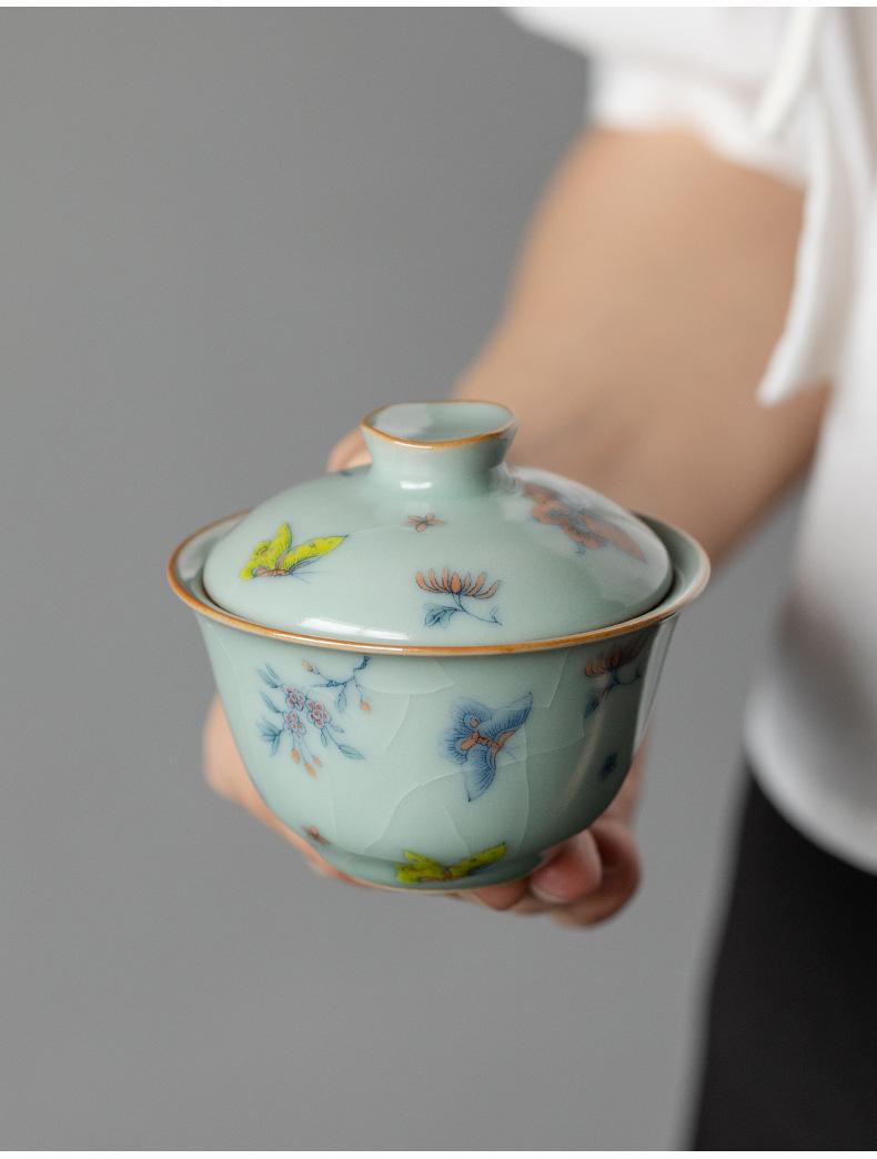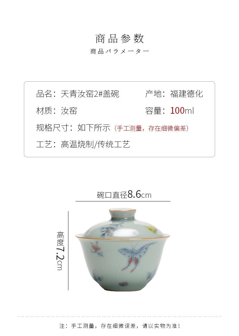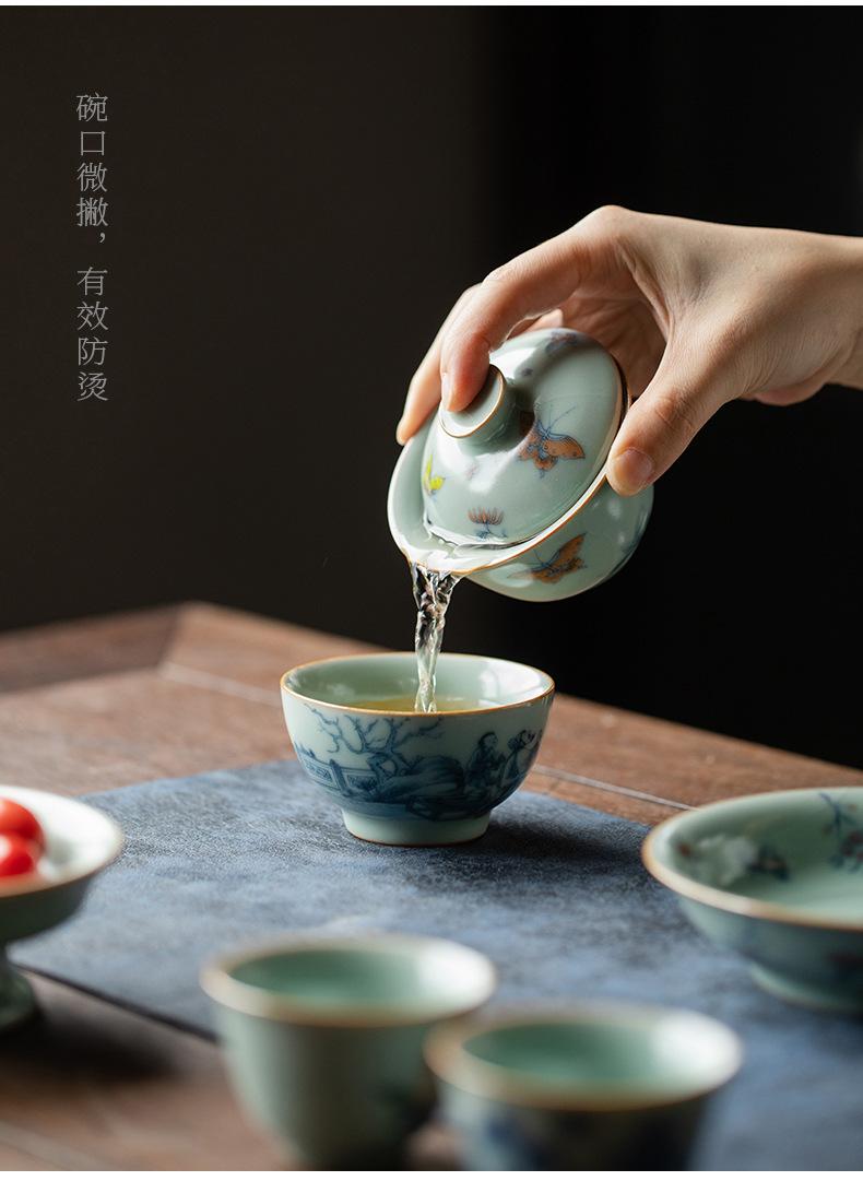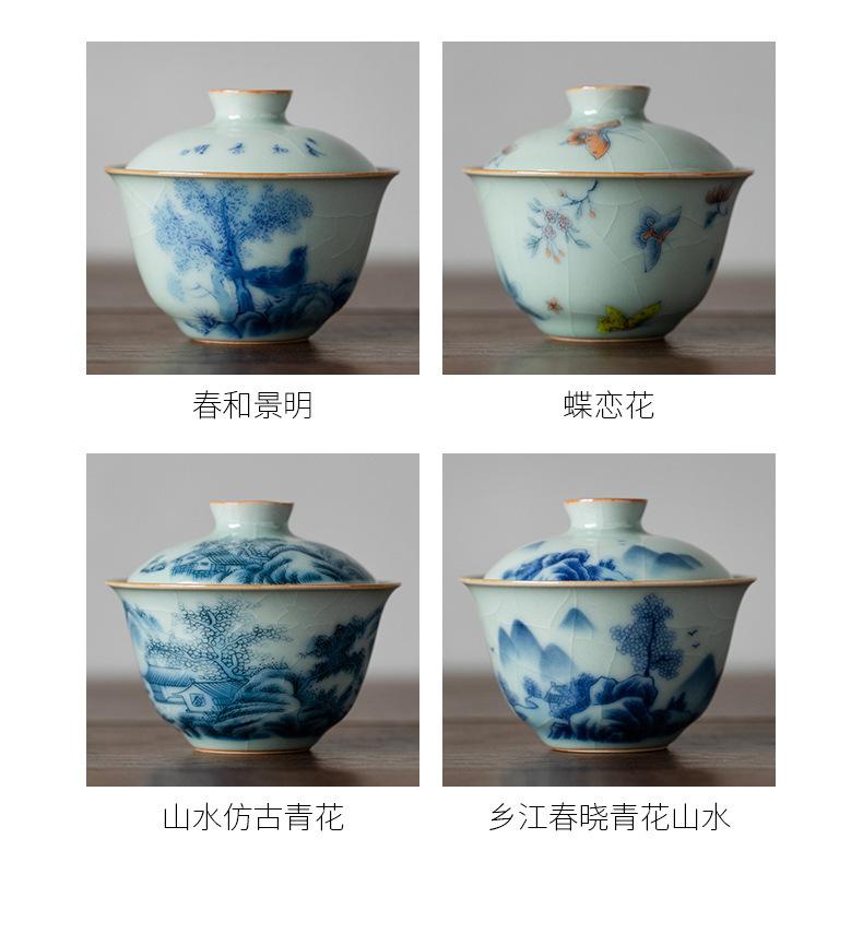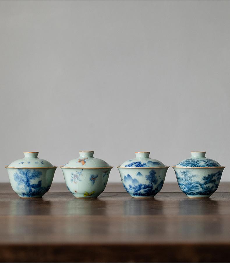 Película de apertura del cuenco Tianqing Ruyao Qinghua Ercai Gai, que puede levantar un tazón de té de tamaño pequeño, juego de té de kung fu de cerámica para un solo hogar