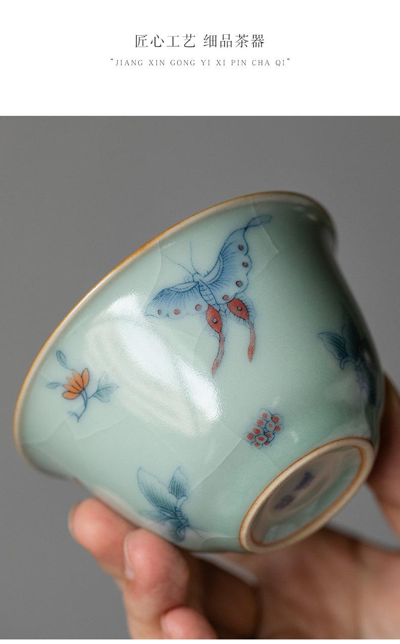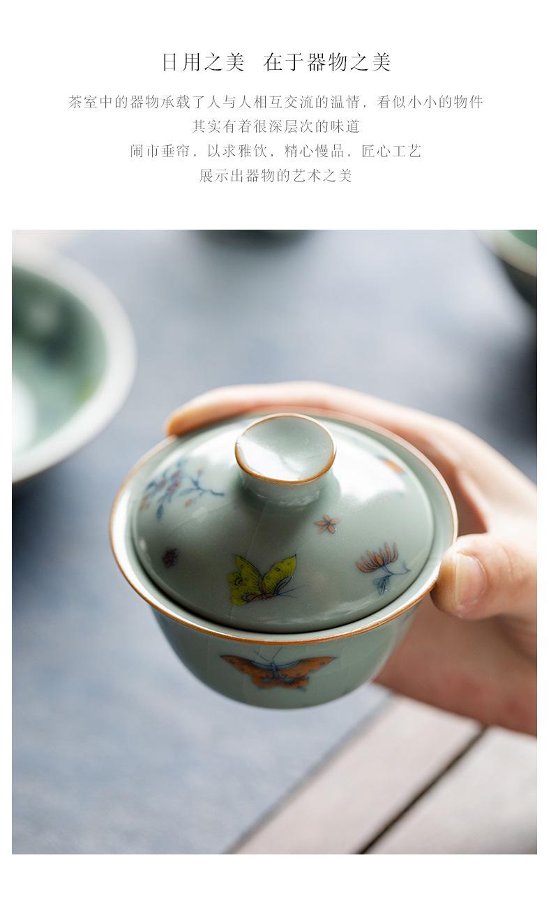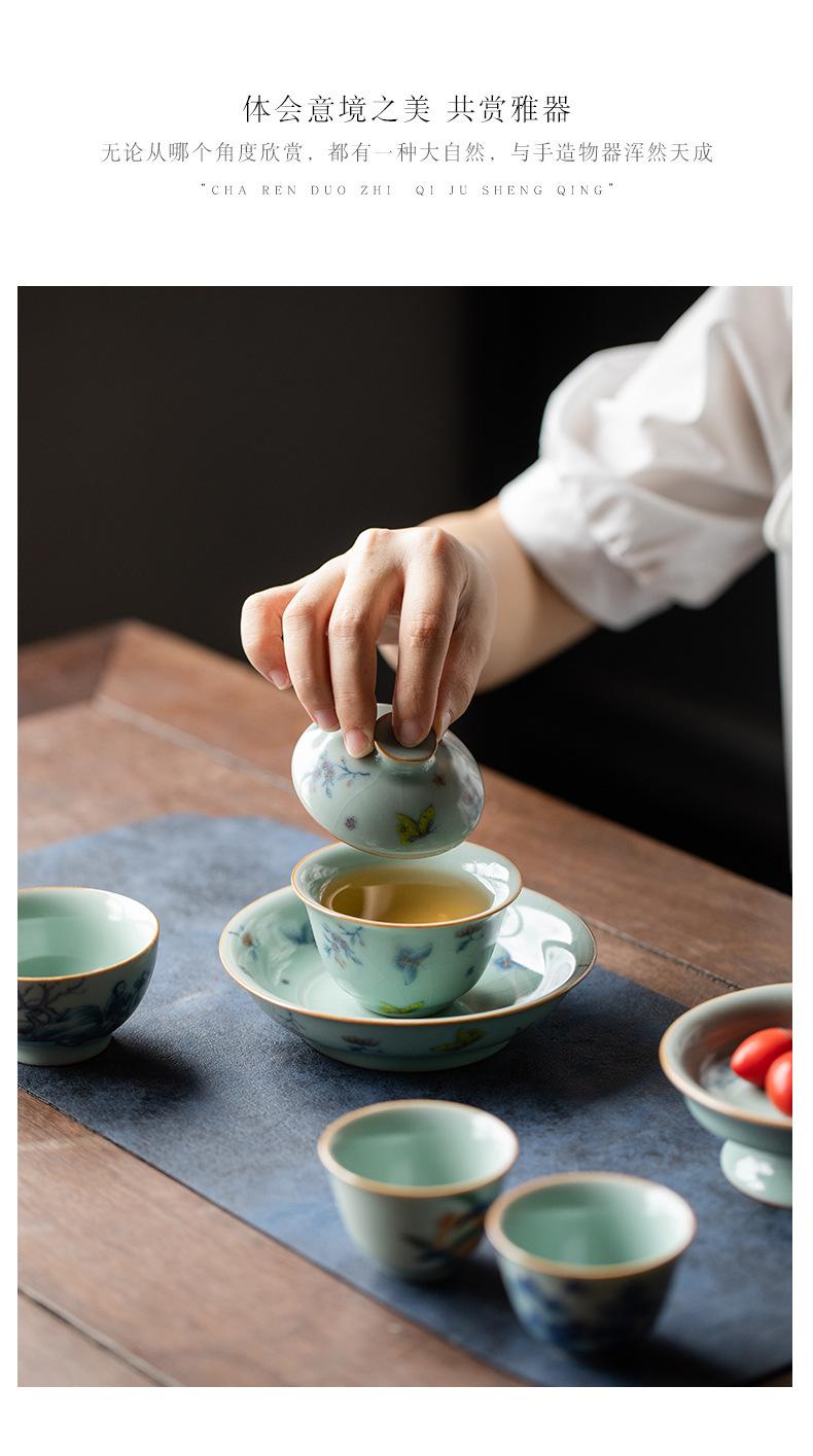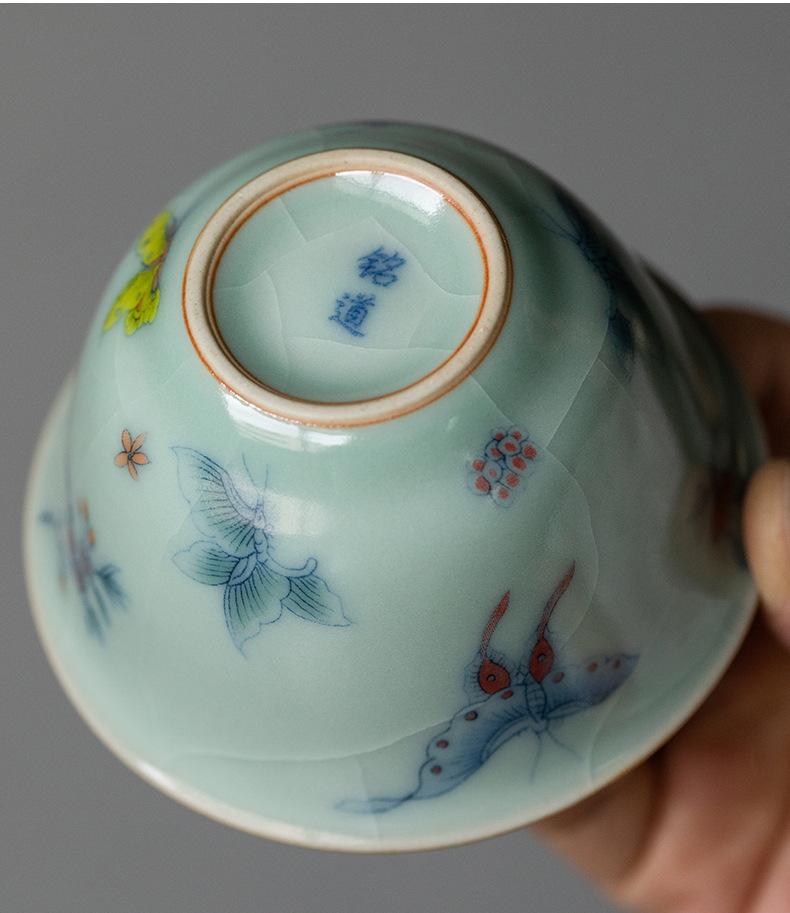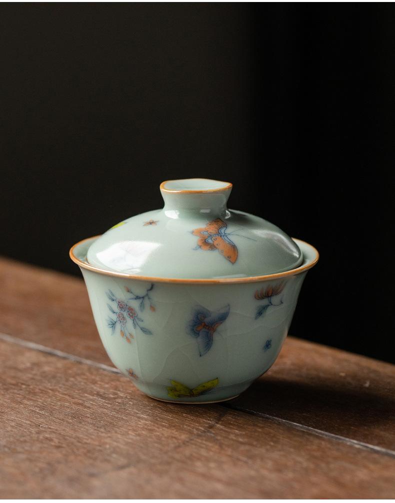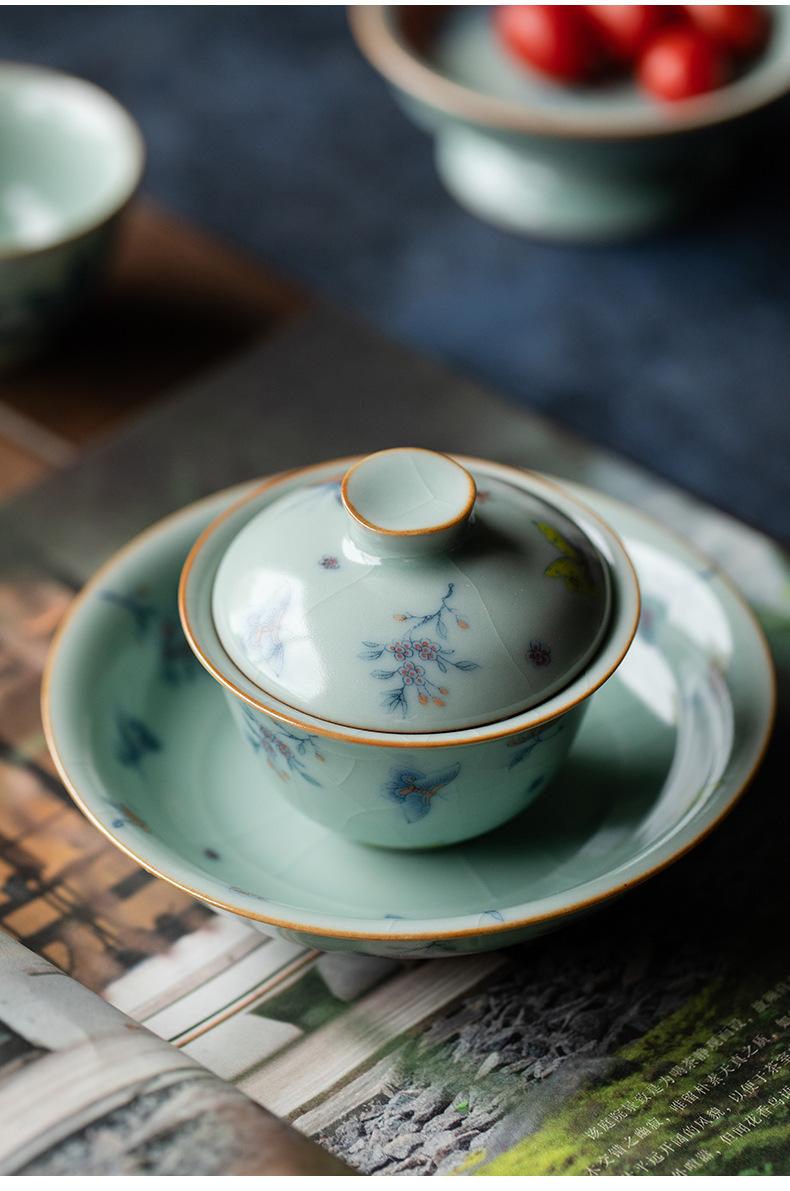 Película de apertura del cuenco Tianqing Ruyao Qinghua Ercai Gai, que puede levantar un tazón de té de tamaño pequeño, juego de té de kung fu de cerámica para un solo hogar
