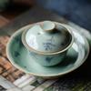 Tazón cubierto de dos colores de horno Ru de Tianqing pieza agrietada se puede criar tamaño pequeño individual damas hogar juego de té kung fu de cerámica tazón de té