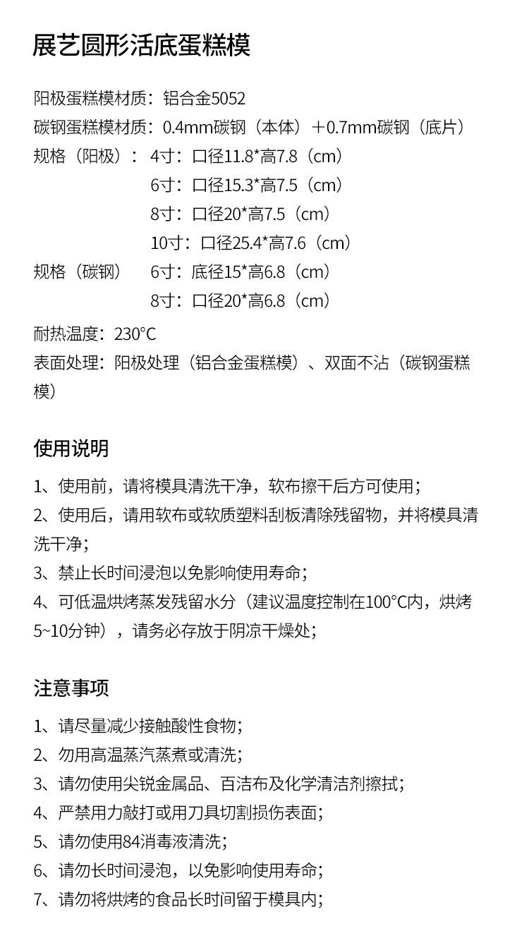 6 inch anode live bottom cake mold (24/box), 8 inch anode live bottom cake mold (24/box)