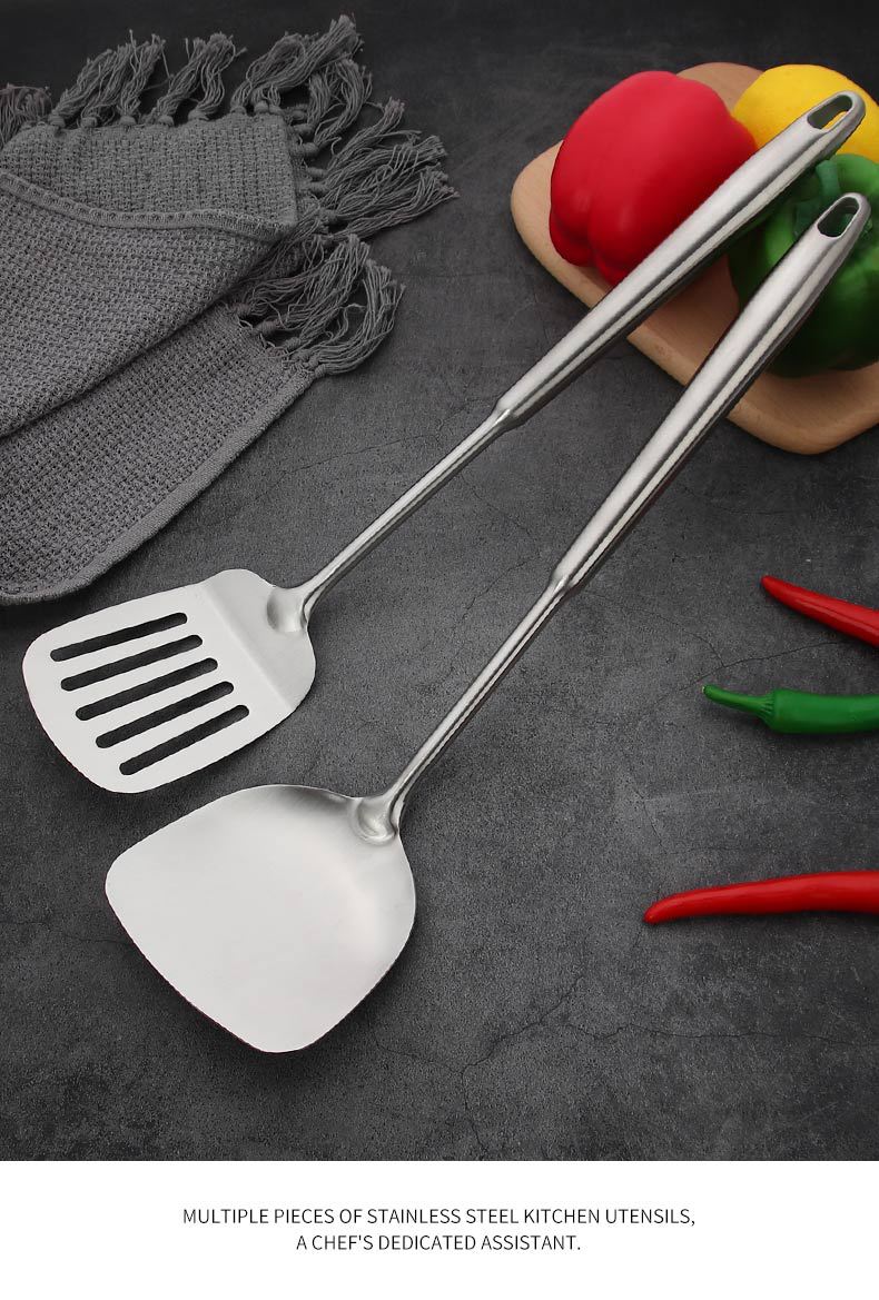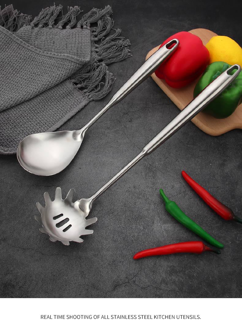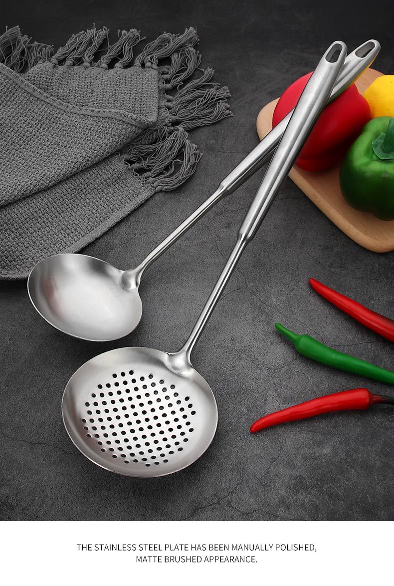 Espátula de mango hueco de acero inoxidable, pala para freír, cuchara para sopa a la parrilla, cuchara para sopa para olla caliente, colador, juego de cuchara y pala para cocinar de cocina al por mayor