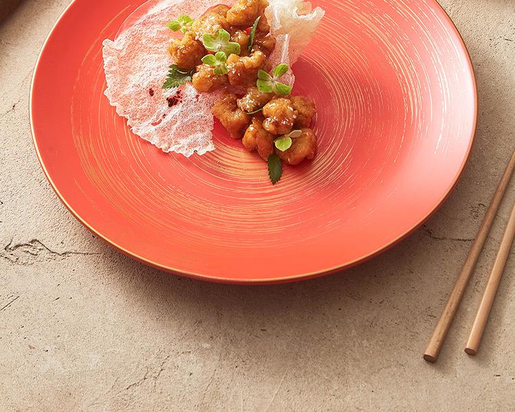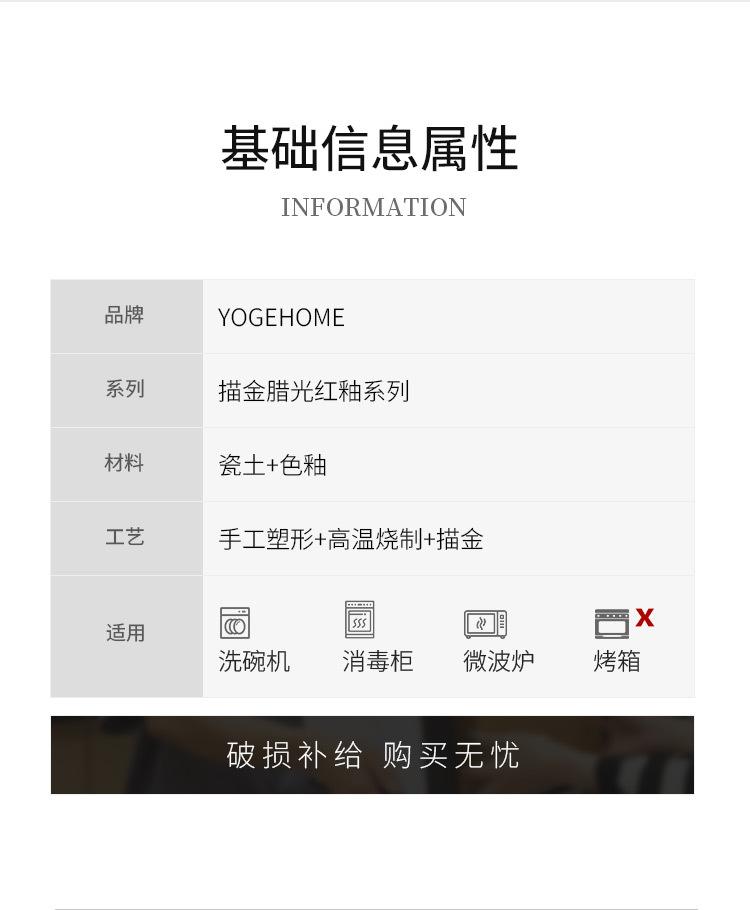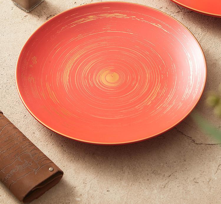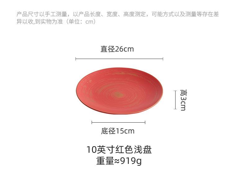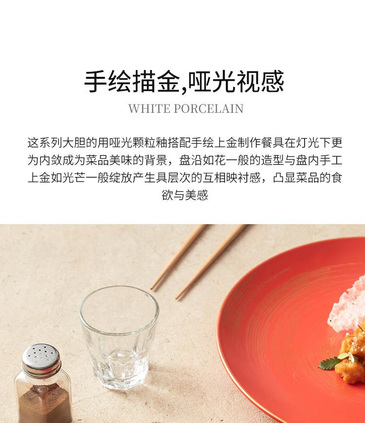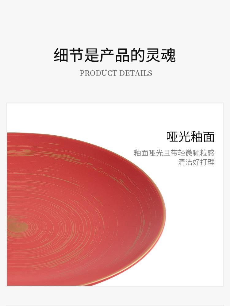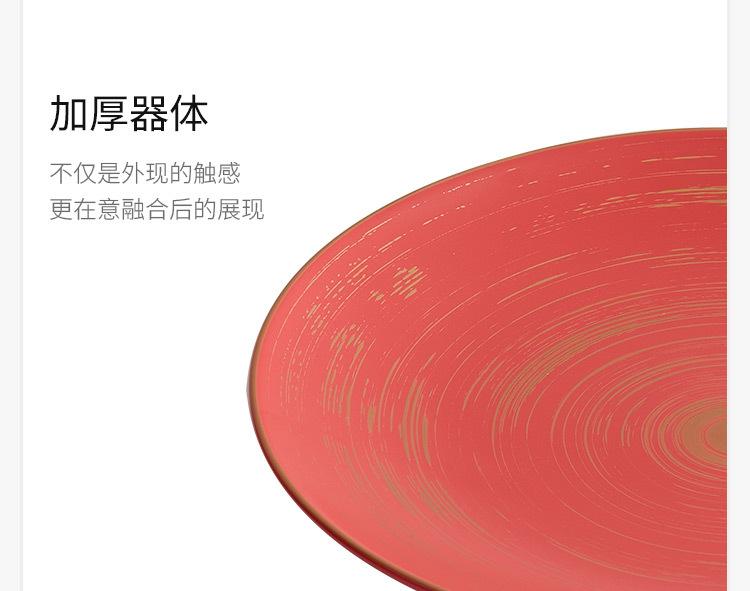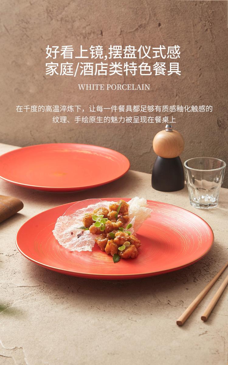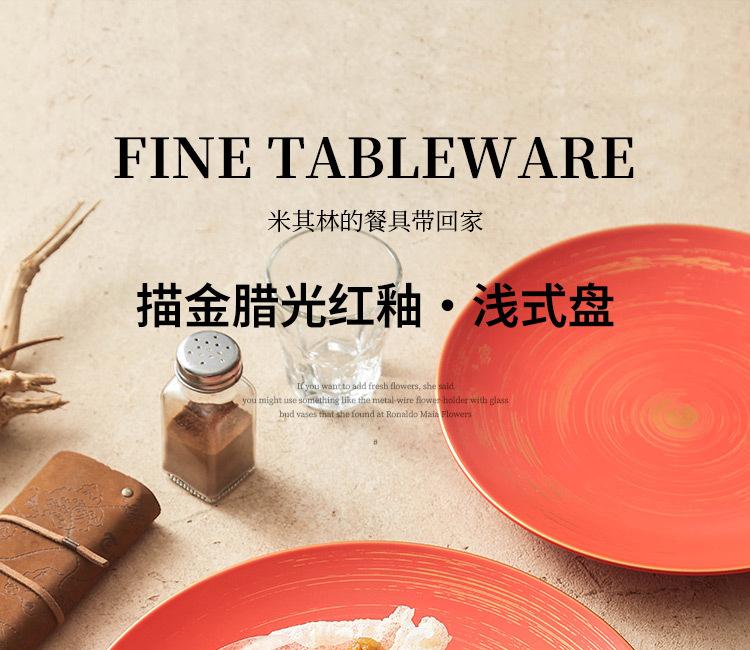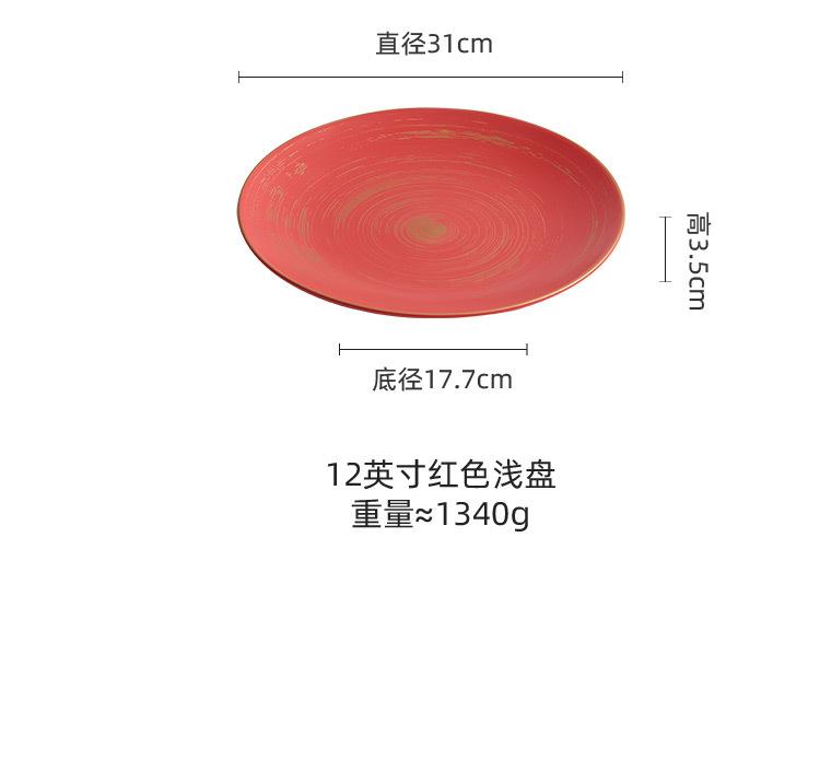 10 inch gold tracing wax light red glaze_shallow plate, 12-inch gold tracing wax light red glaze_shallow plate