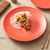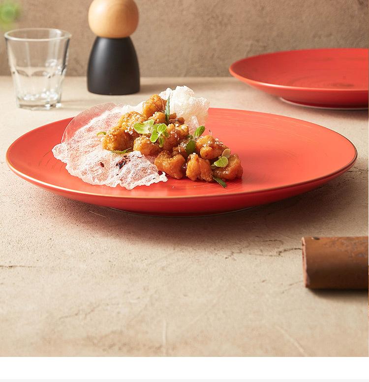 Plato de cerámica con esmalte rojo claro y cera pintada a mano, plato para carne de alta calidad, vajilla creativa para el hogar, plato de cena de estilo occidental