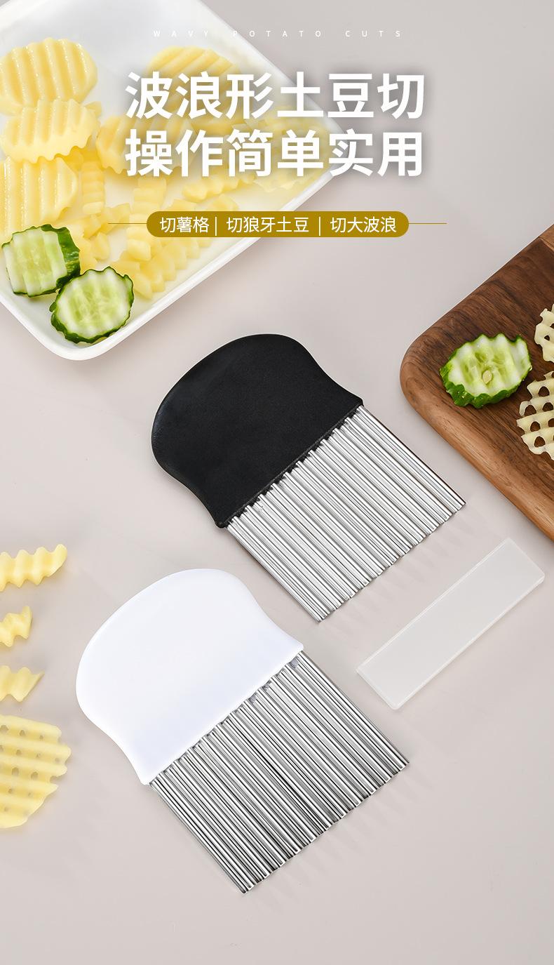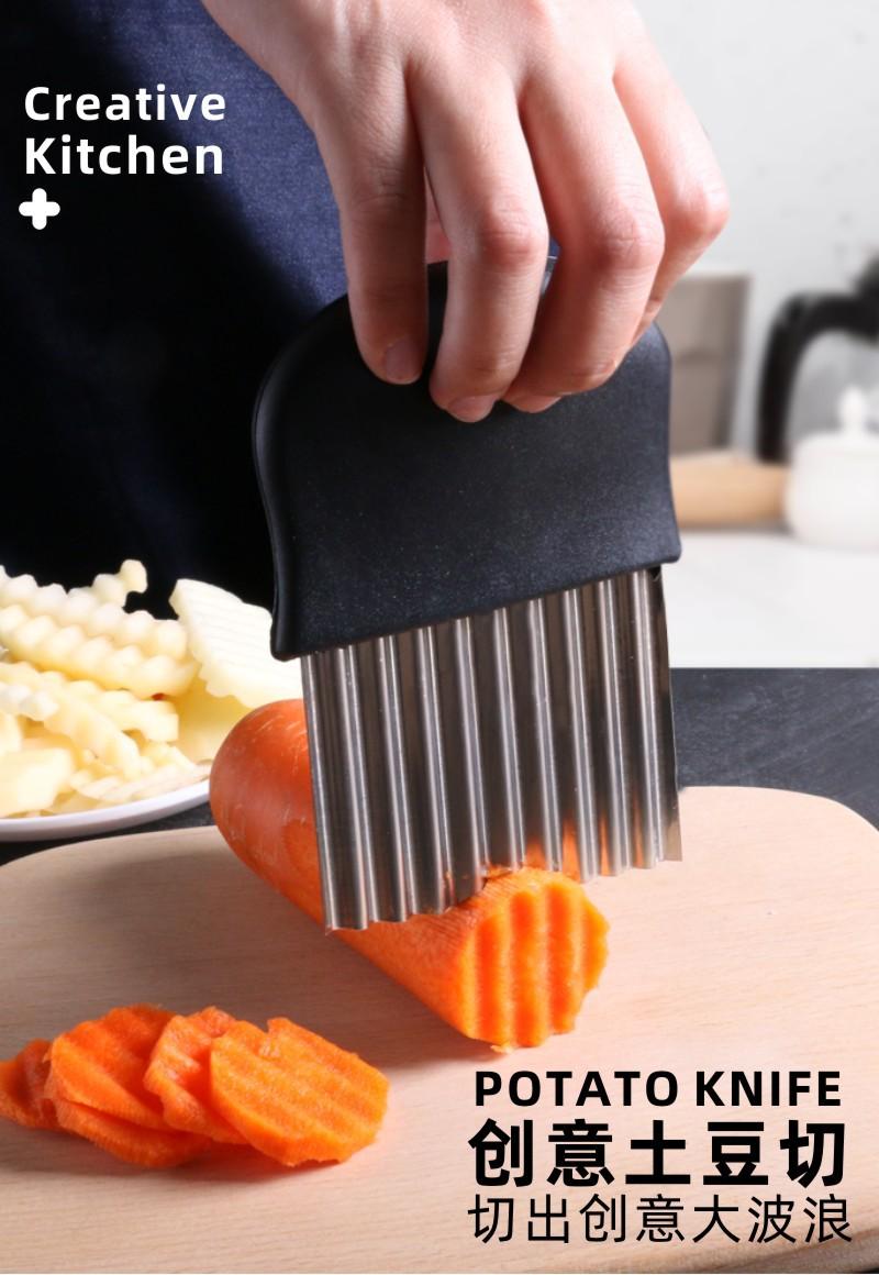 Cuchillo cortador de patatas Wolf, cuchillo ondulado, cuchillo corrugado, creativo, para hotel, hogar, rejilla para patatas, cortador de patatas de acero inoxidable