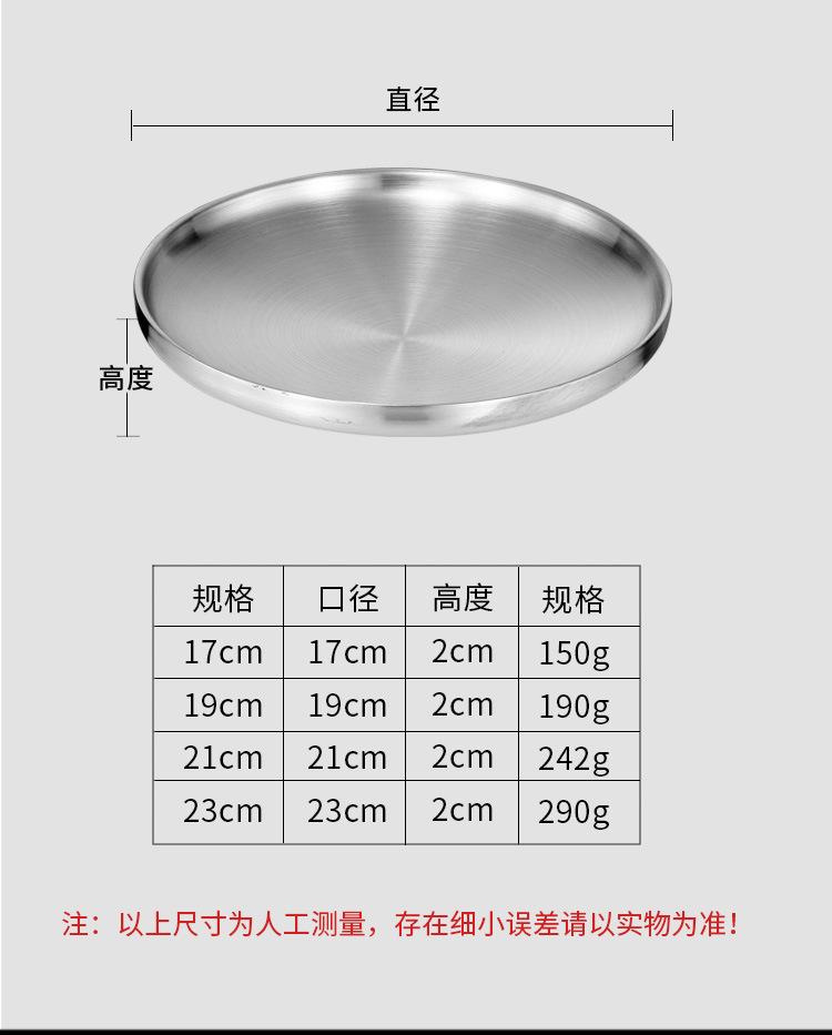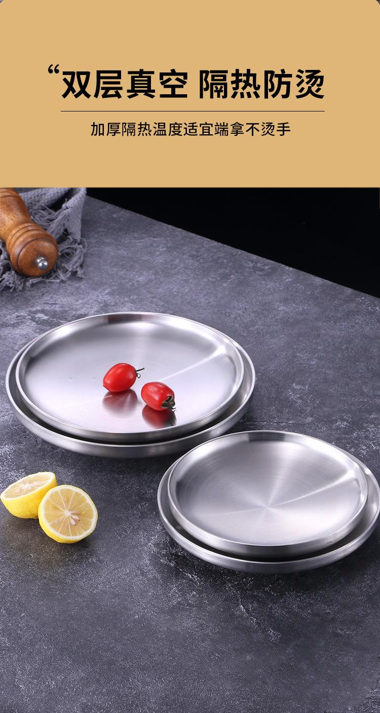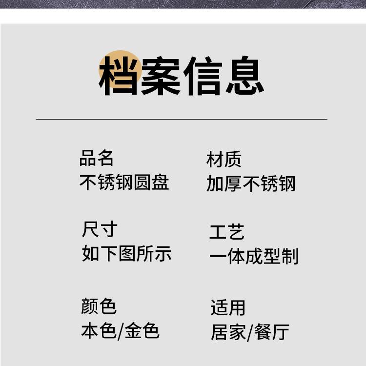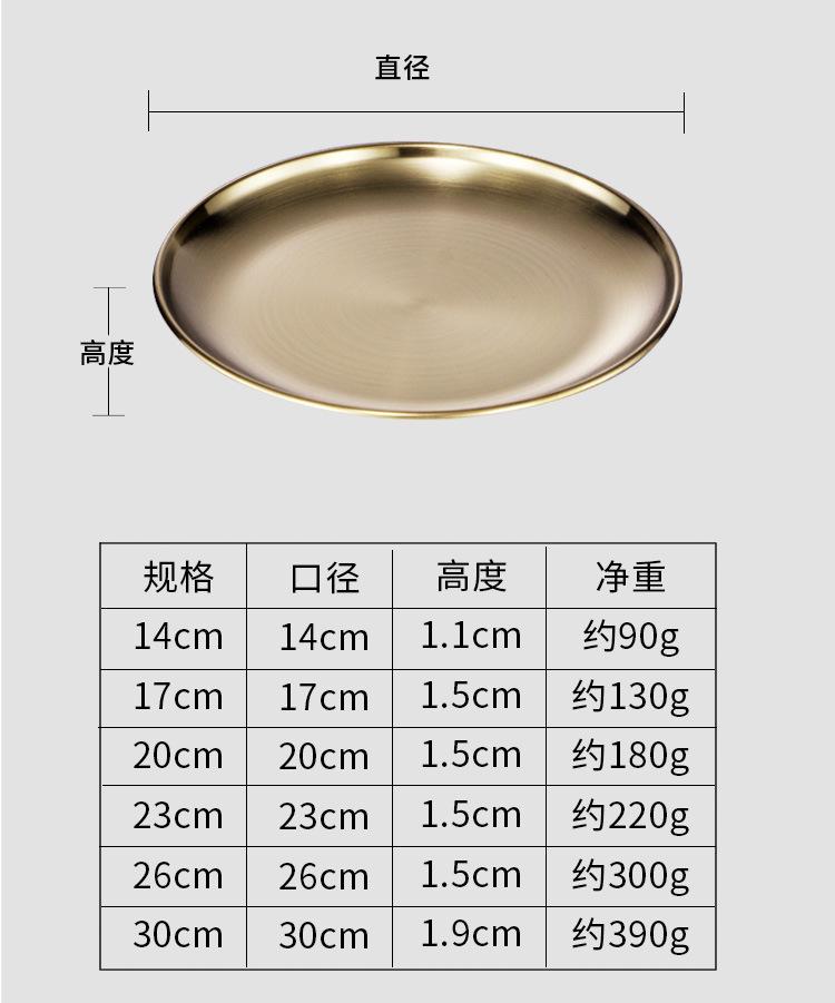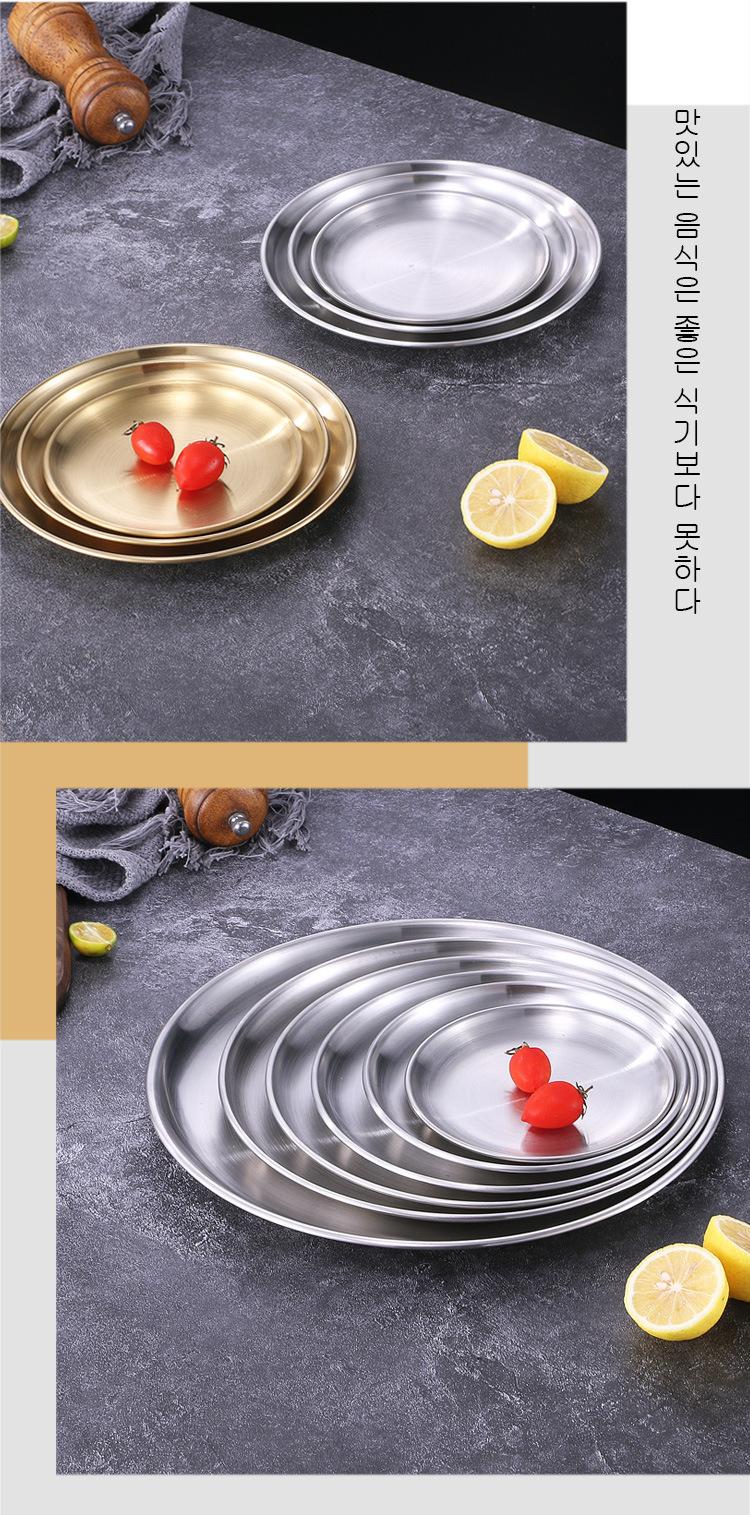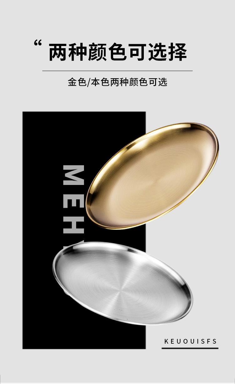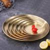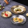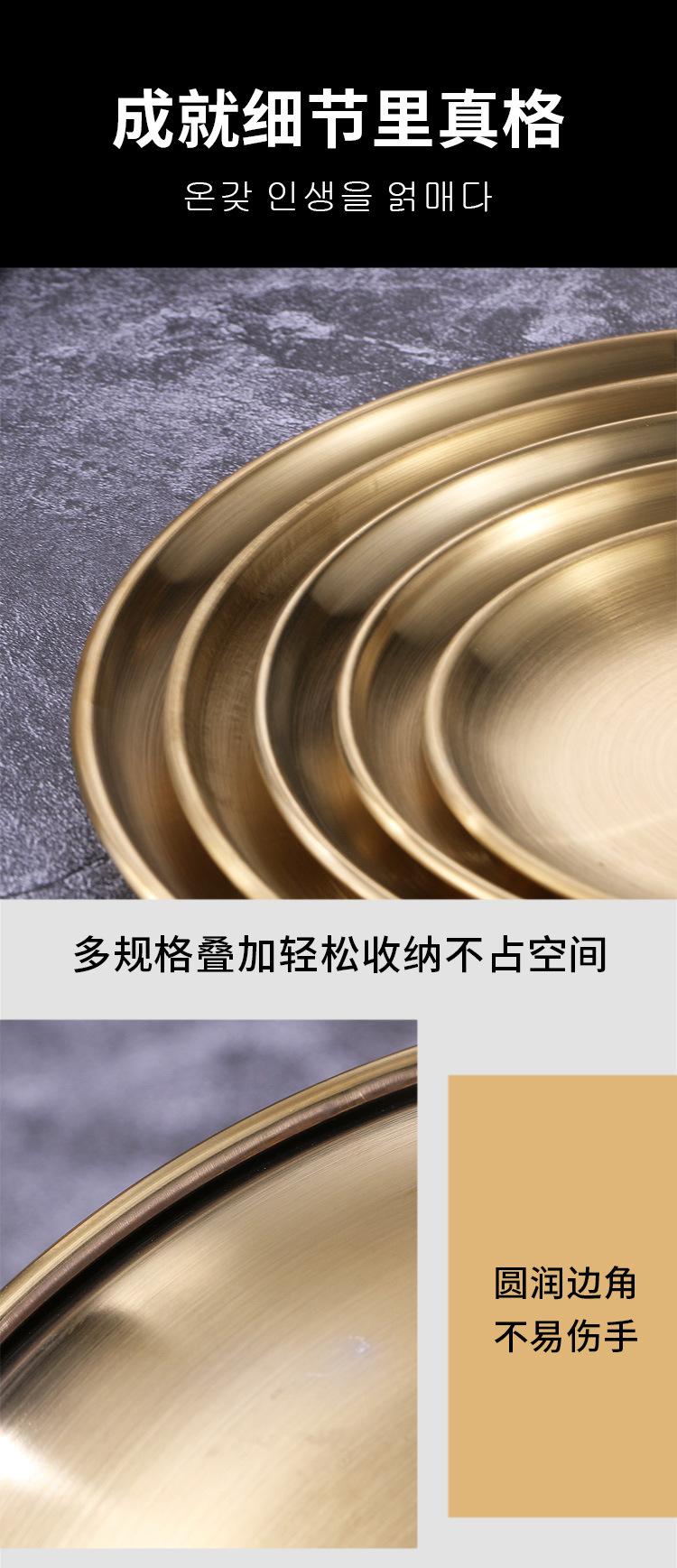Plato redondo de acero inoxidable 304 para barbacoa, dorado, para uso doméstico, estilo coreano, para dim sum, pastel, fruta, estilo occidental, multiusos.