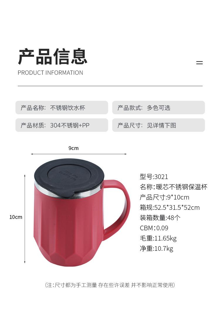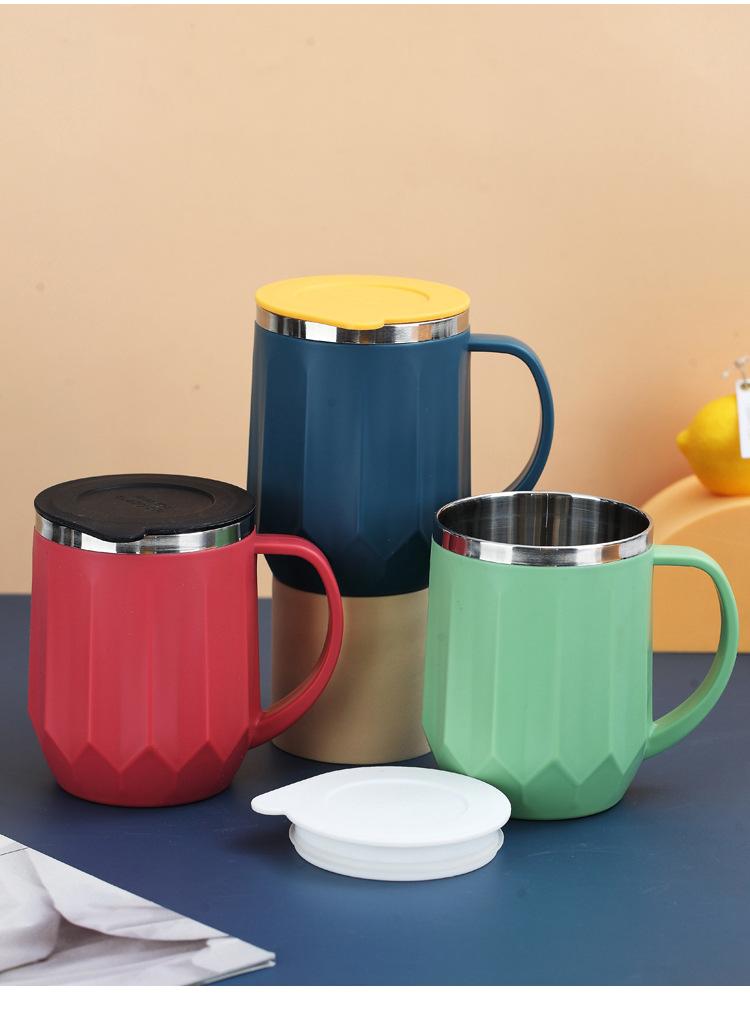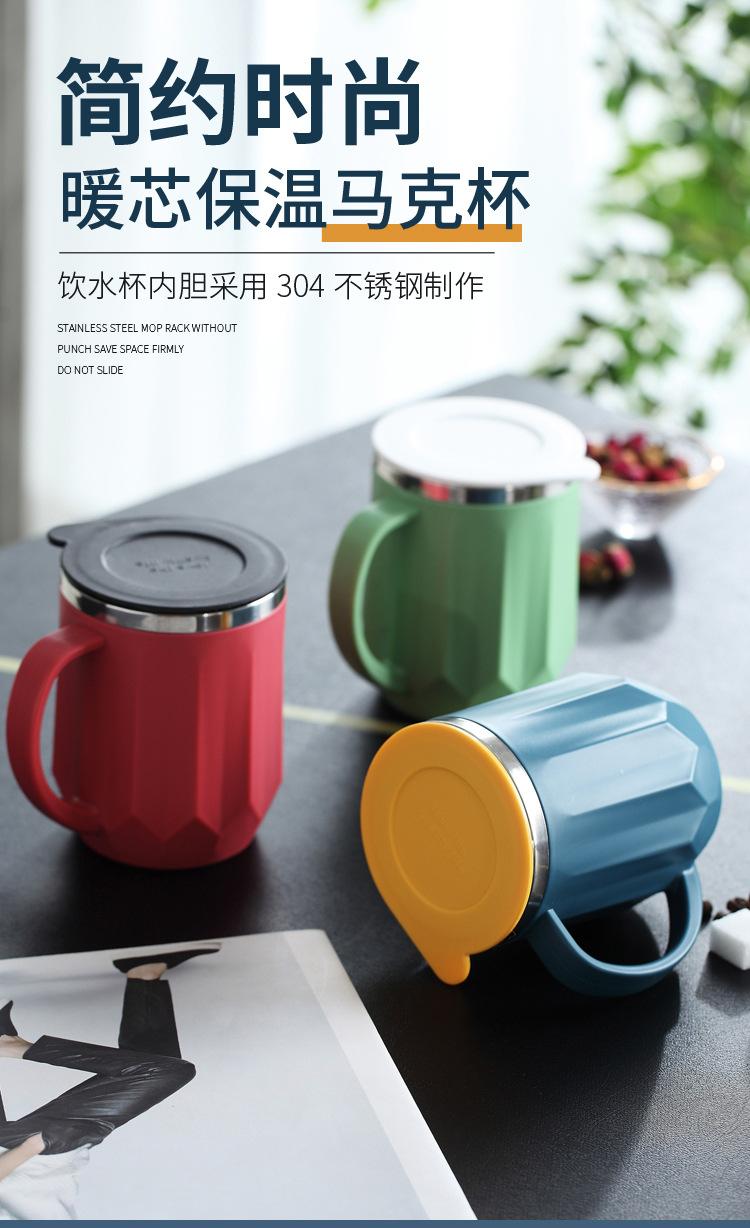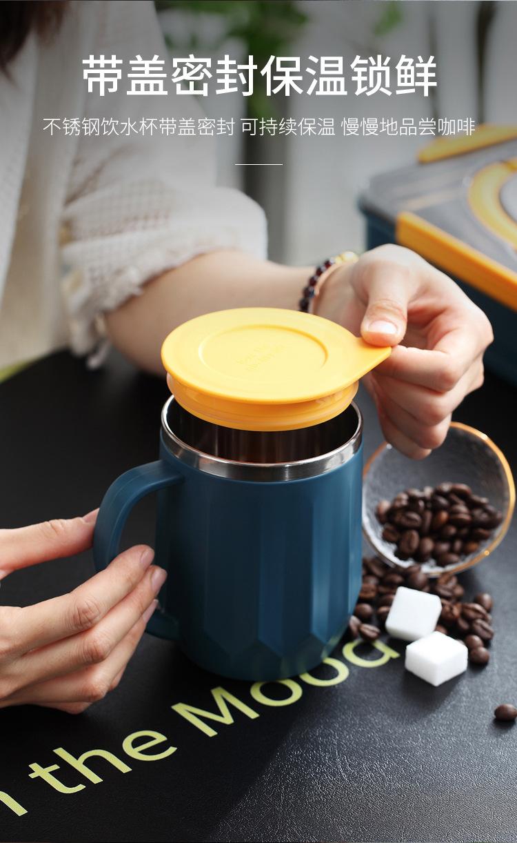 Taza Aislante Simple Creativa de Acero Inoxidable 304 con Tapa para Oficina Pareja Estilo ins Taza para Café Leche Té