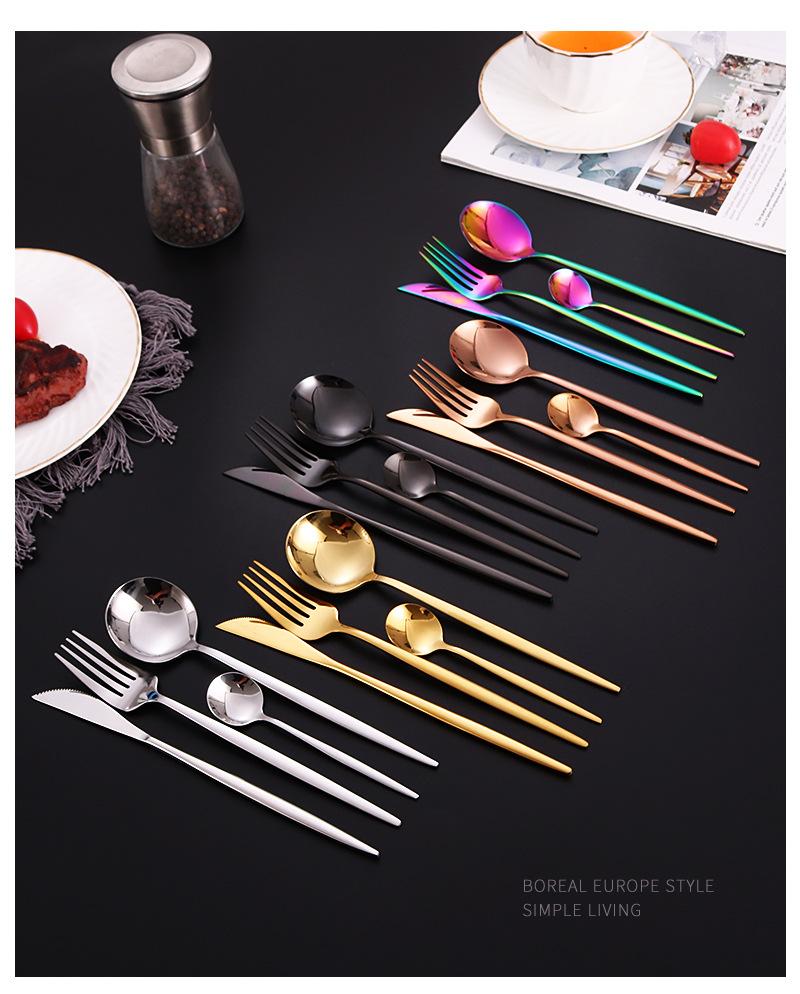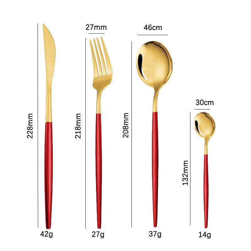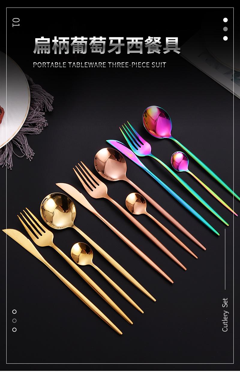 Juego de vajilla de acero inoxidable de 24 piezas con suministro transfronterizo, cuchillo, tenedor y cuchara para carne occidental creativo portugués, regalo dorado