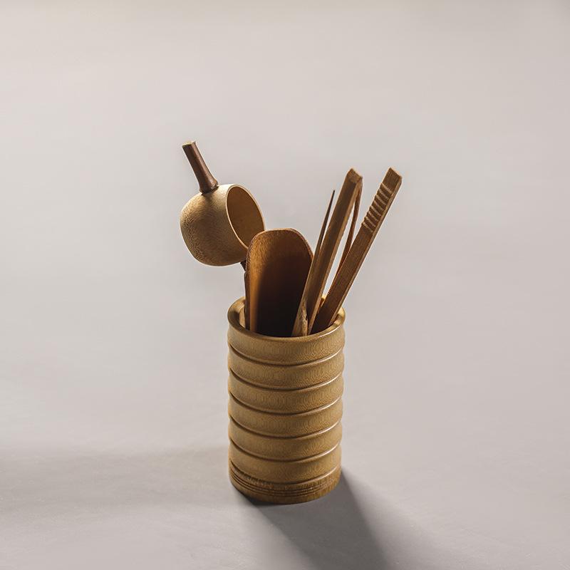 Juego de té de bambú japonés para seis caballeros, accesorios de té de kung fu Daquan, hechos a mano, sin pintar, suministros para ceremonias de té al por mayor
