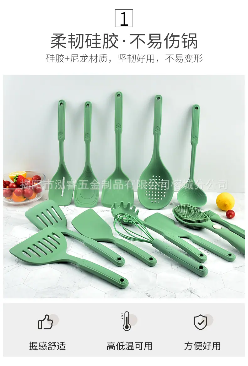 Compra Espátula de silicona integrada para utensilios de cocina, apta para el hogar, resistente a altas temperaturas, antiadherente, cuchara de cocina, espátula al por mayor en Joom.pro