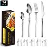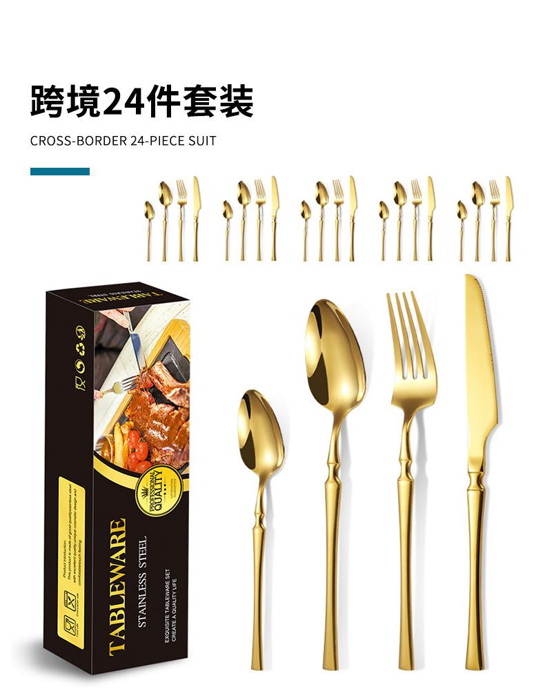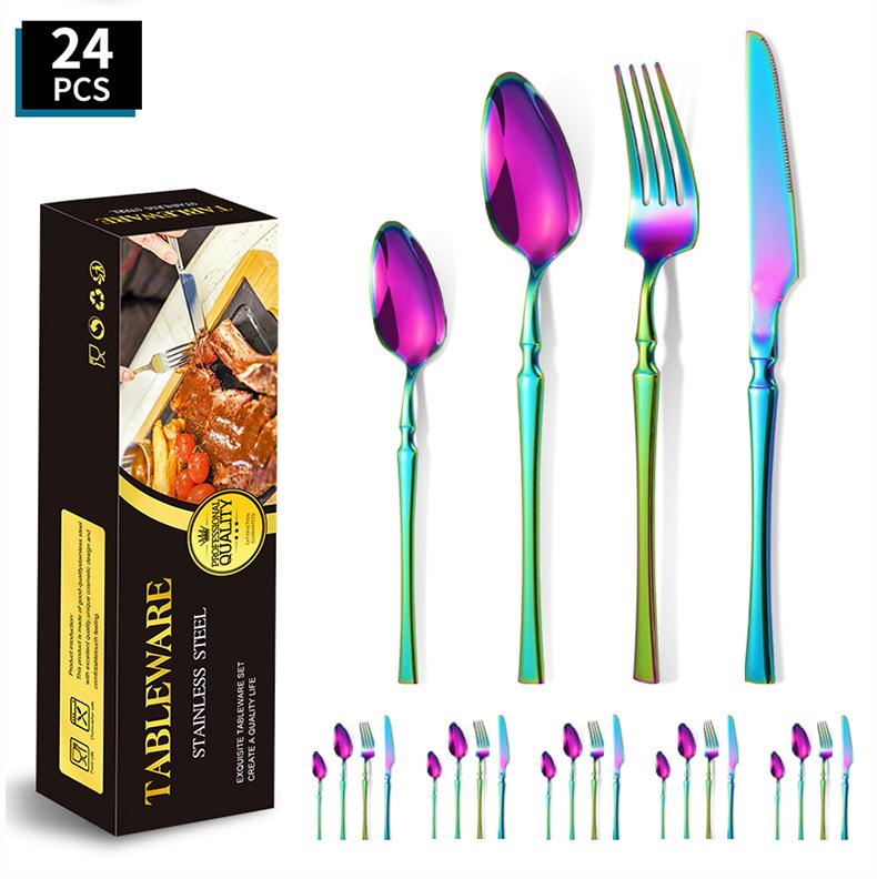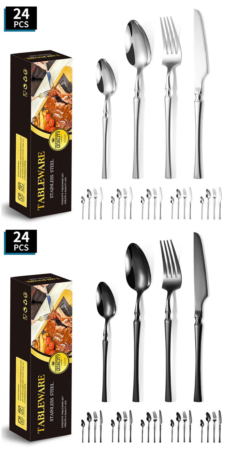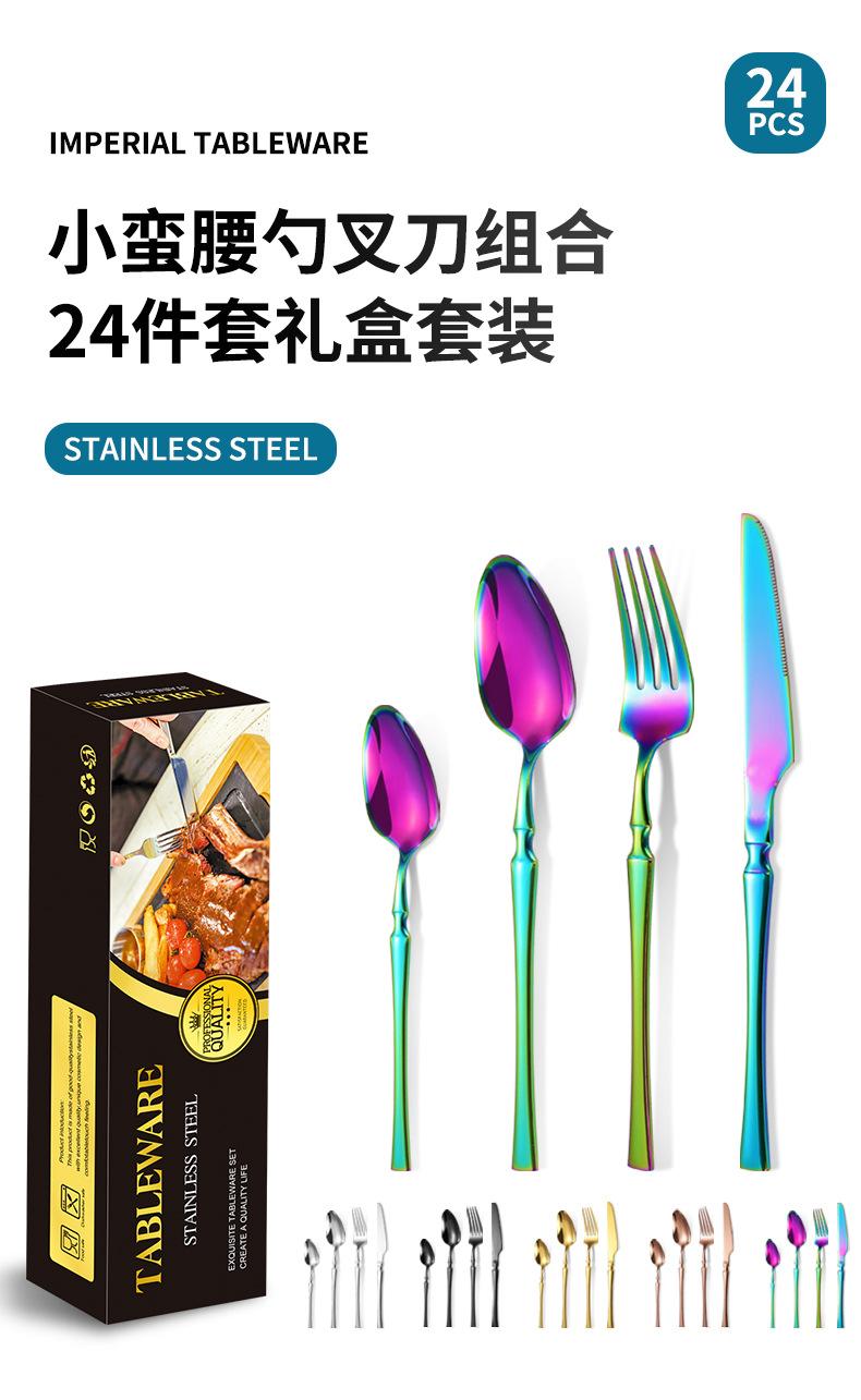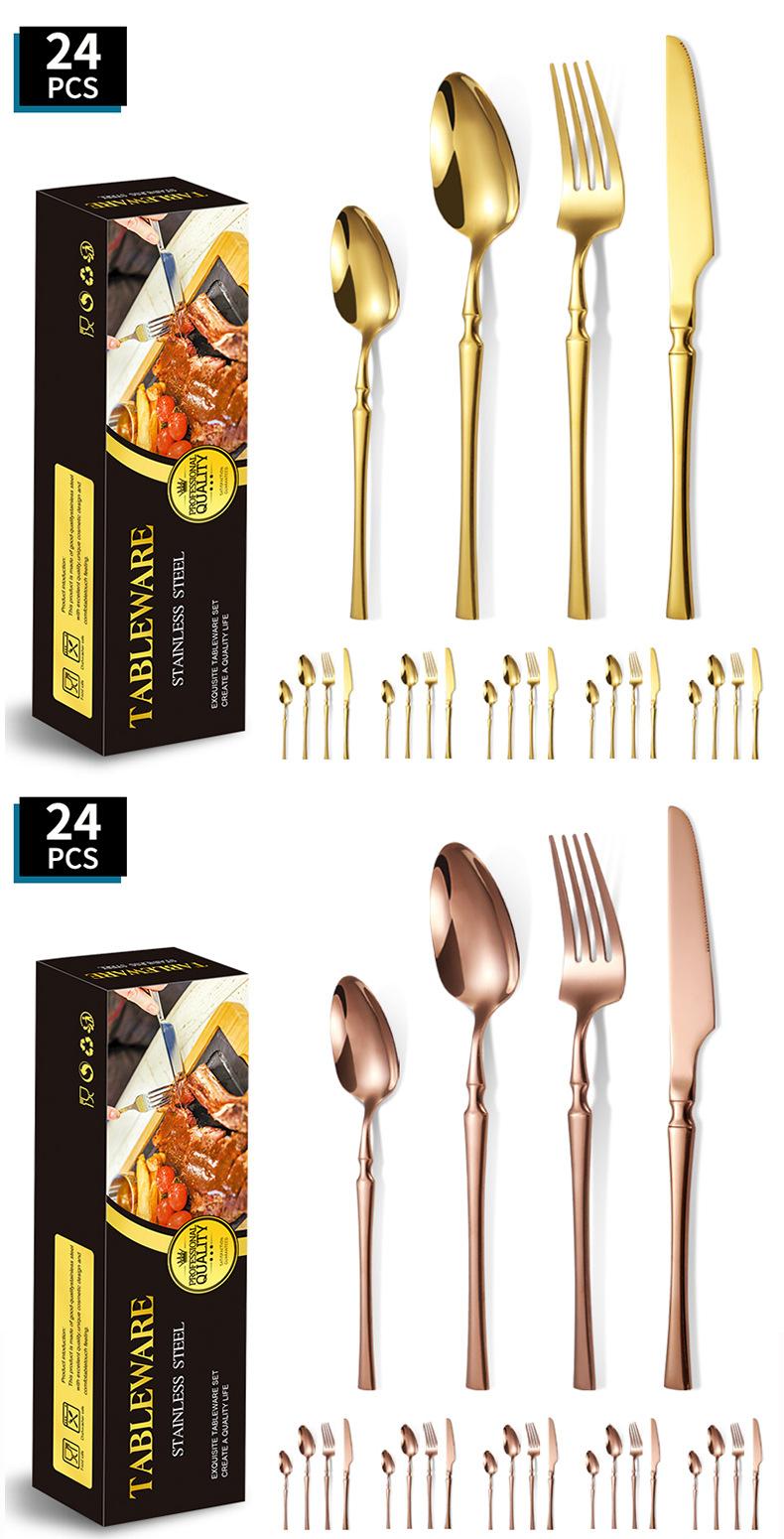Cuchillo, tenedor y cuchara de acero inoxidable de cintura pequeña transfronterizos. Vajilla de Amazon. Cuchillo, tenedor y cuchara para carne occidental. Caja de regalo de 24 piezas.