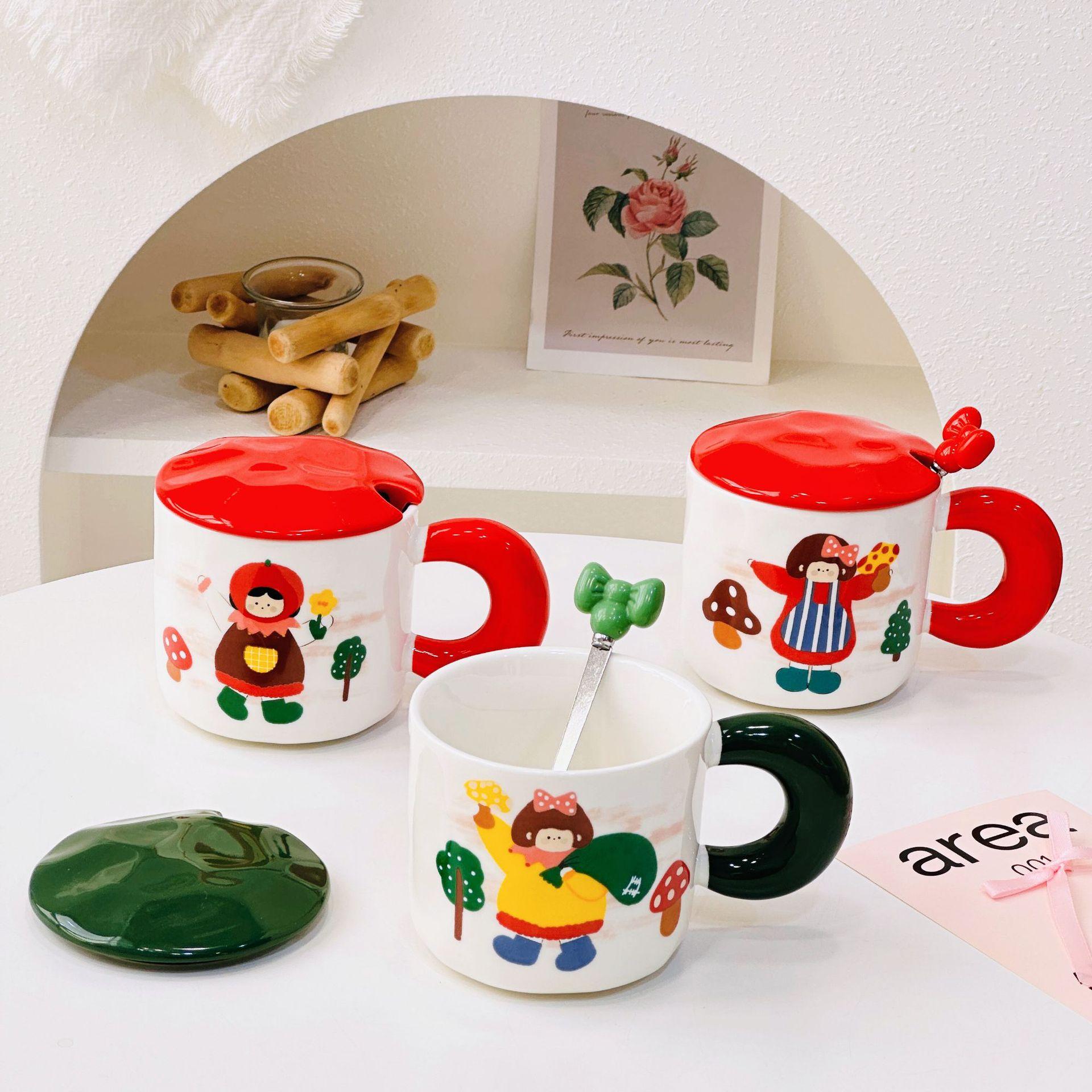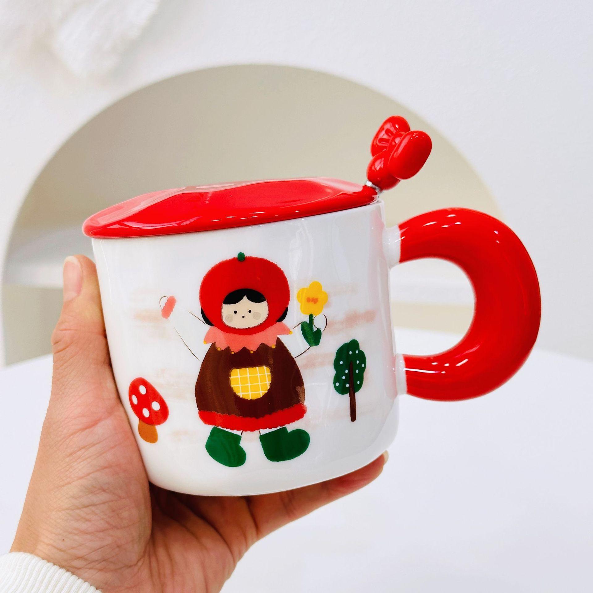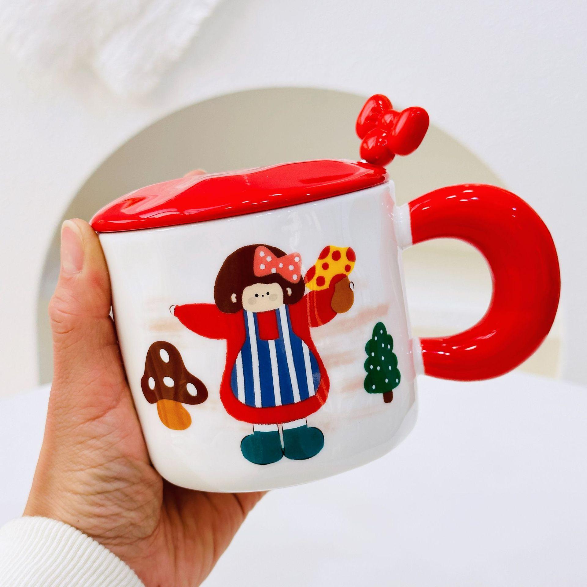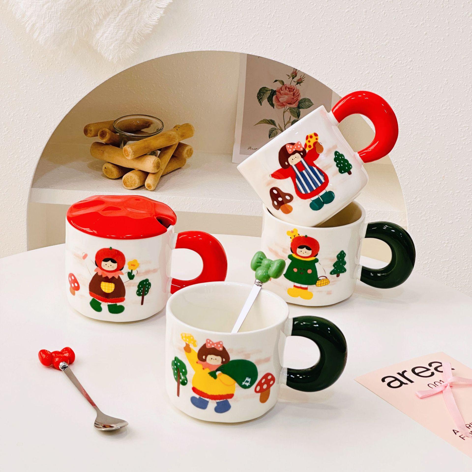 Taza de cerámica con tapa y tubo de succión de dibujos animados para regalo pequeño, ideal para parejas de niñas, taza de agua de alto valor de color, juego para el hogar