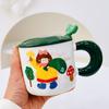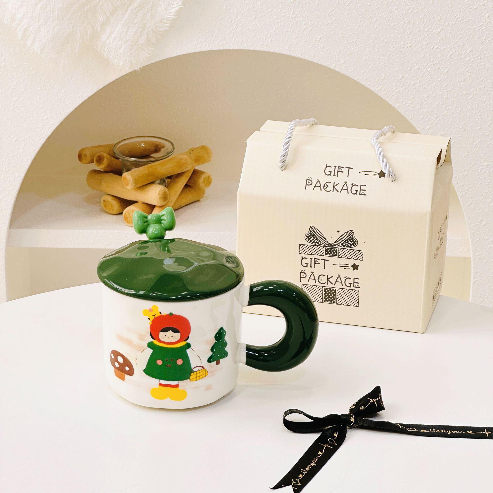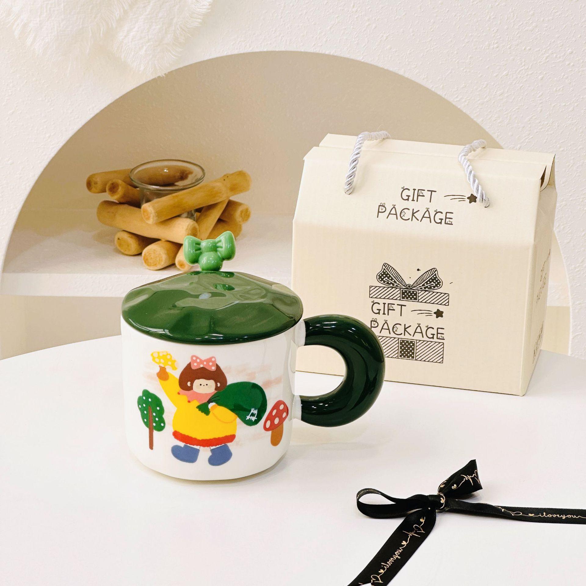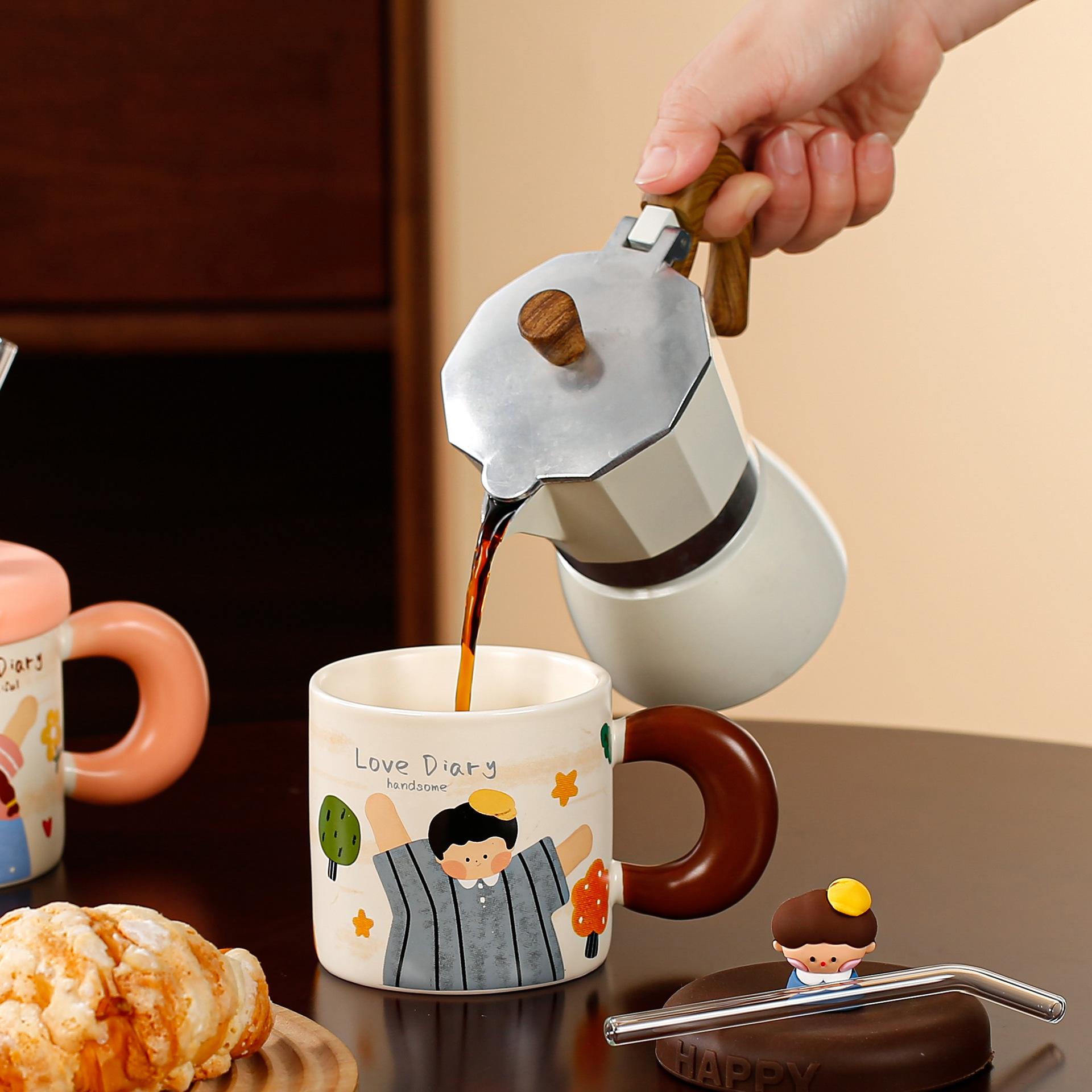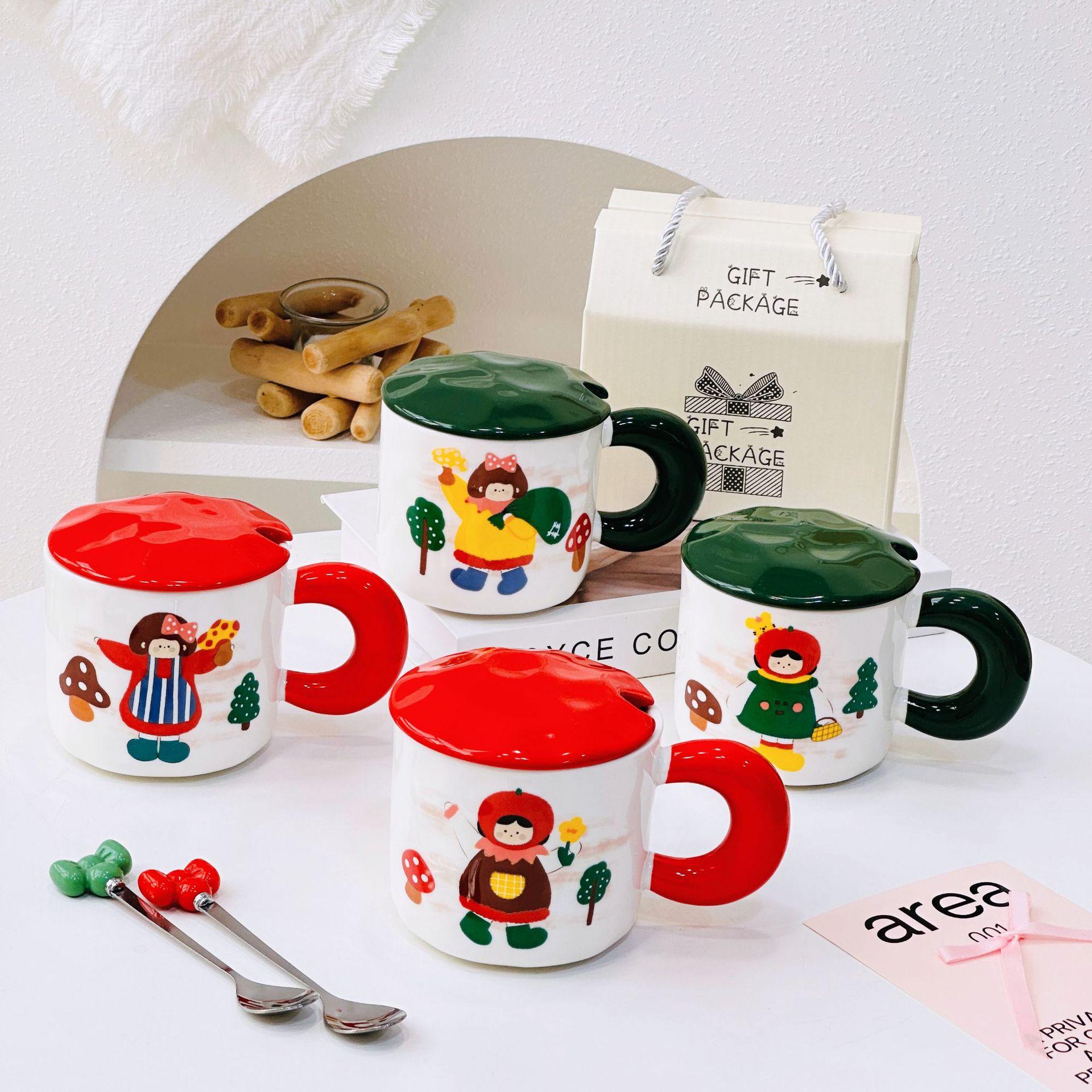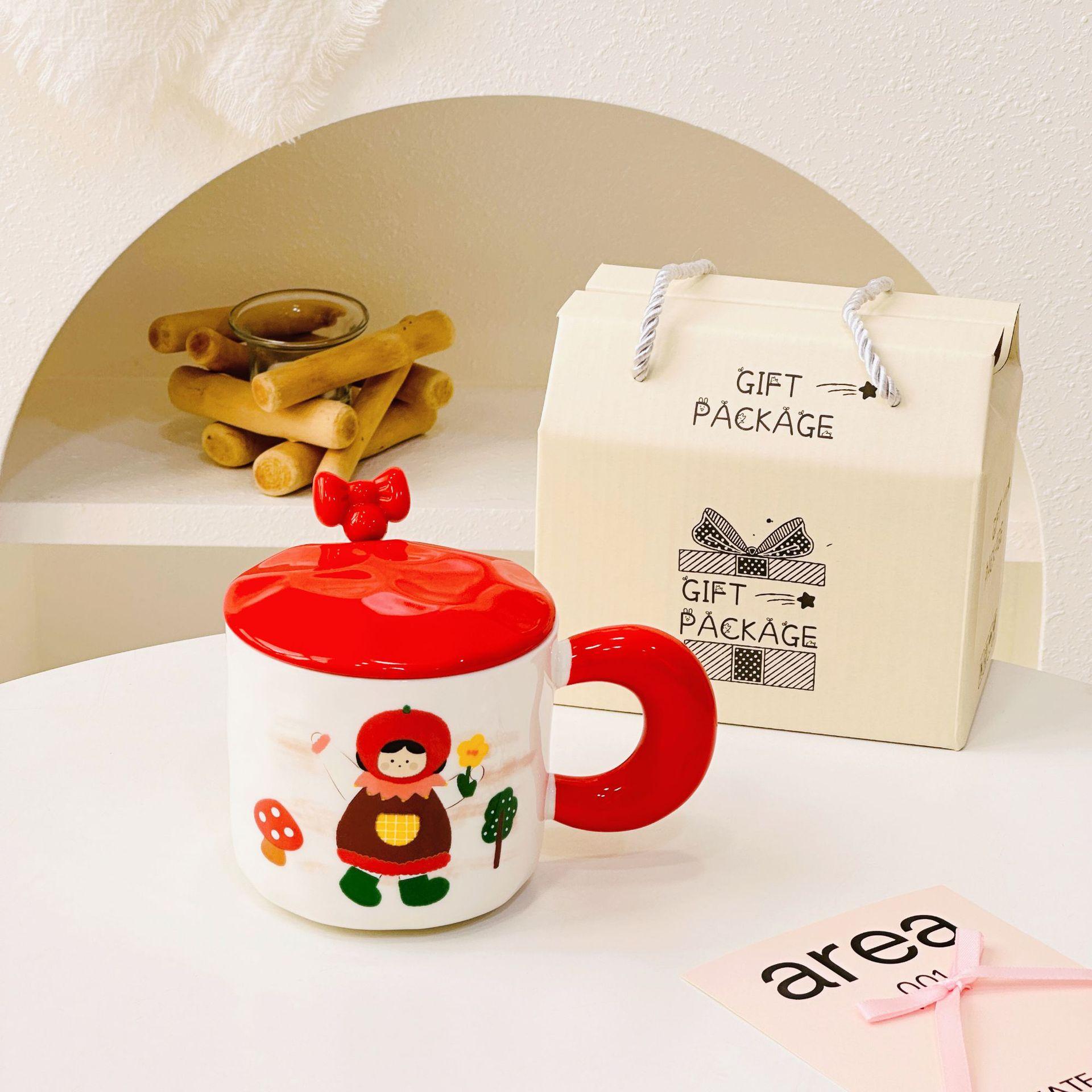Taza de cerámica con tapa y tubo de succión de dibujos animados para regalo pequeño, ideal para parejas de niñas, taza de agua de alto valor de color, juego para el hogar