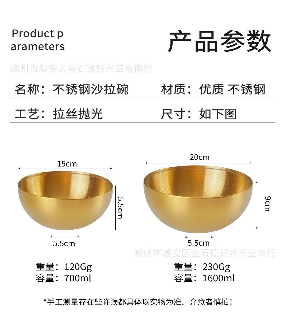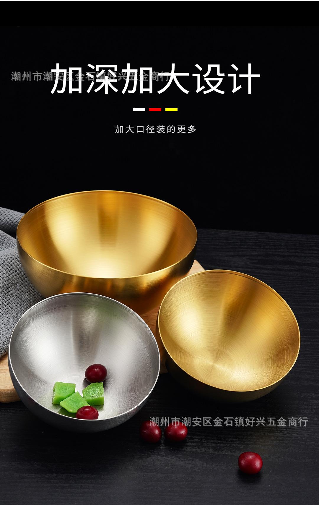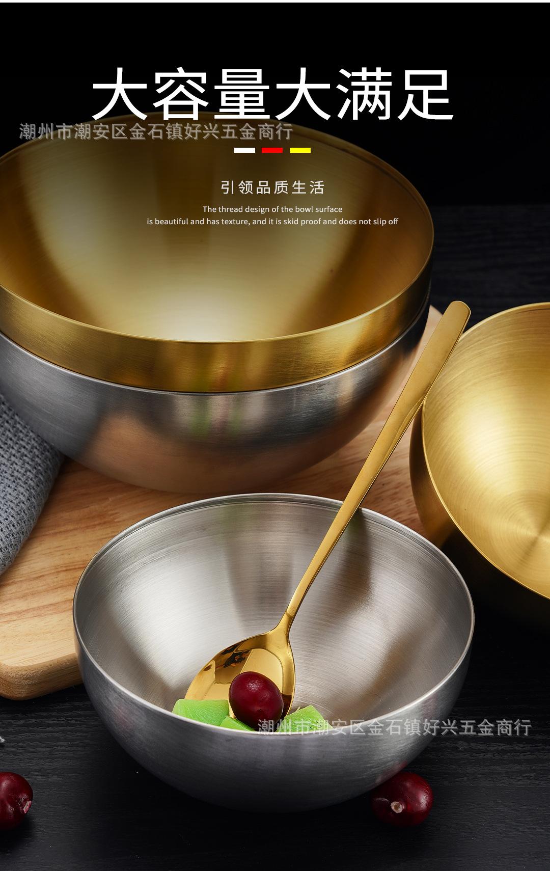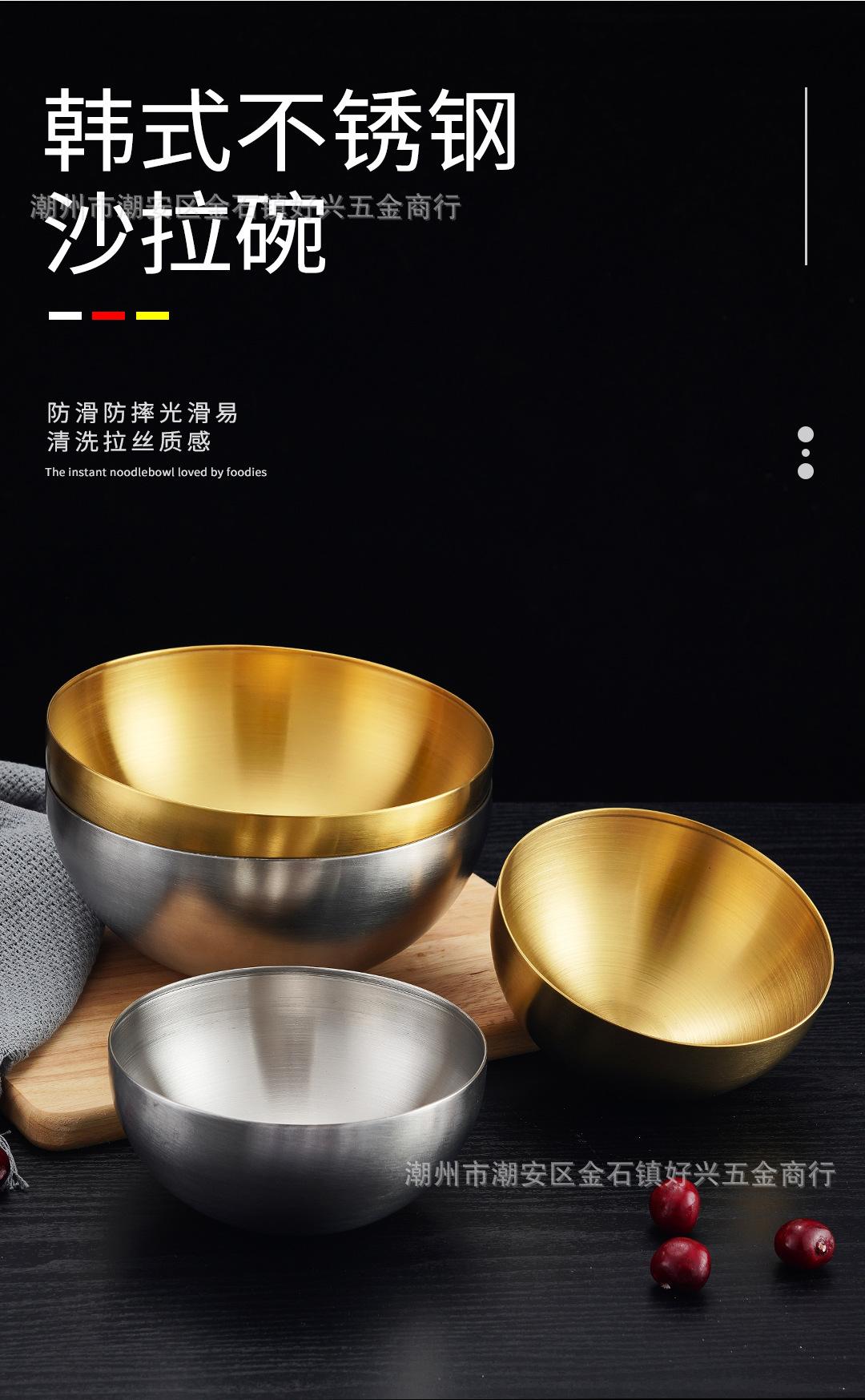 Ensaladera dorada de estilo coreano, de acero inoxidable, para fideos fríos coreanos, frutero de gran tamaño para el hogar, cuenco para polvo de caracol, vajilla creativa