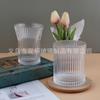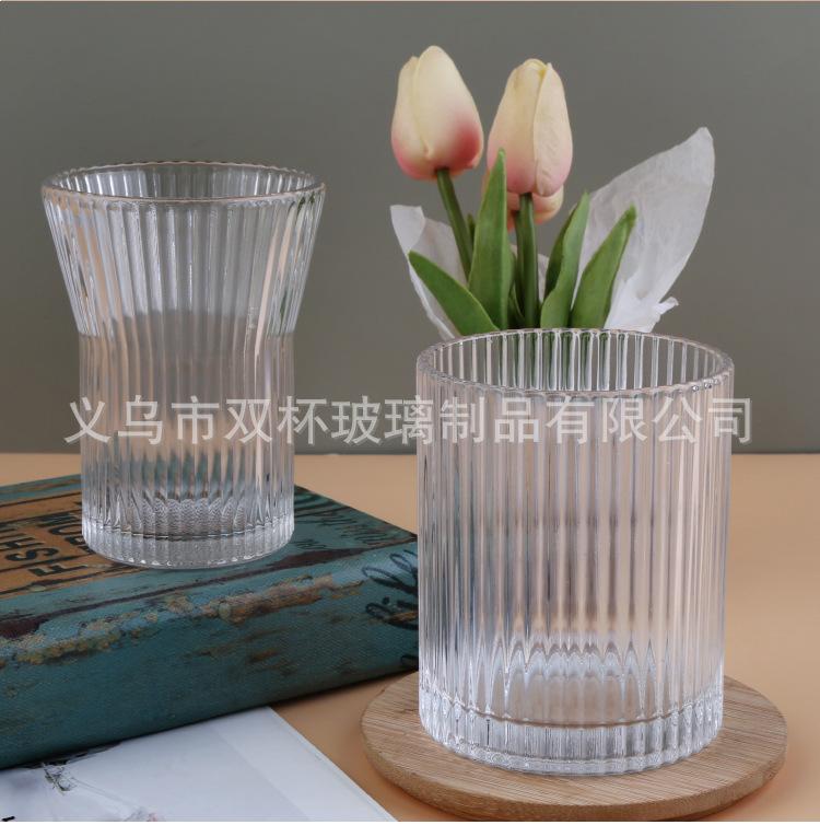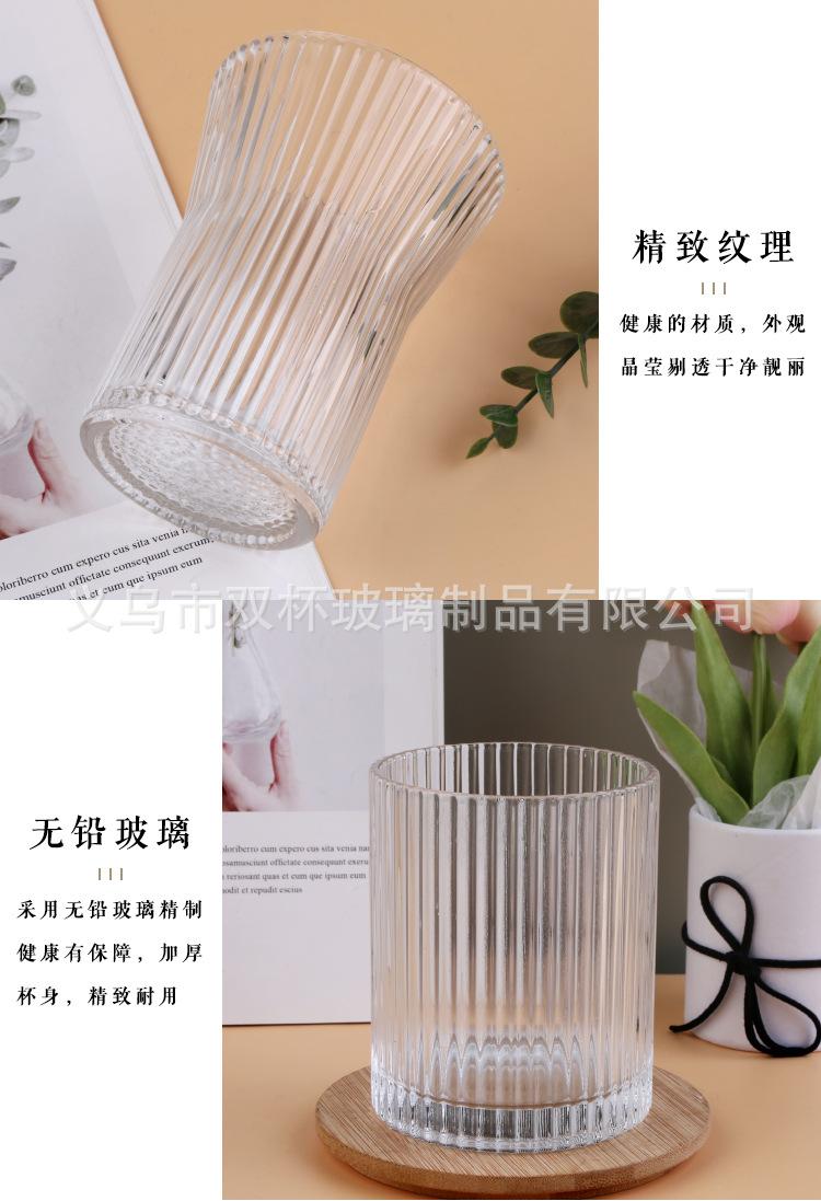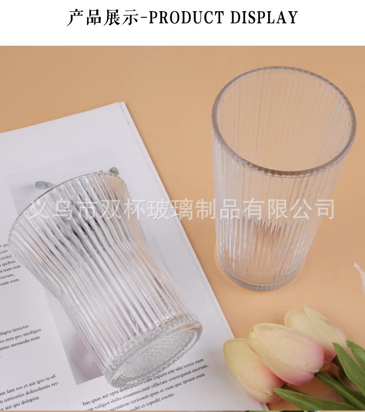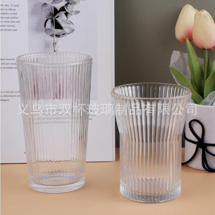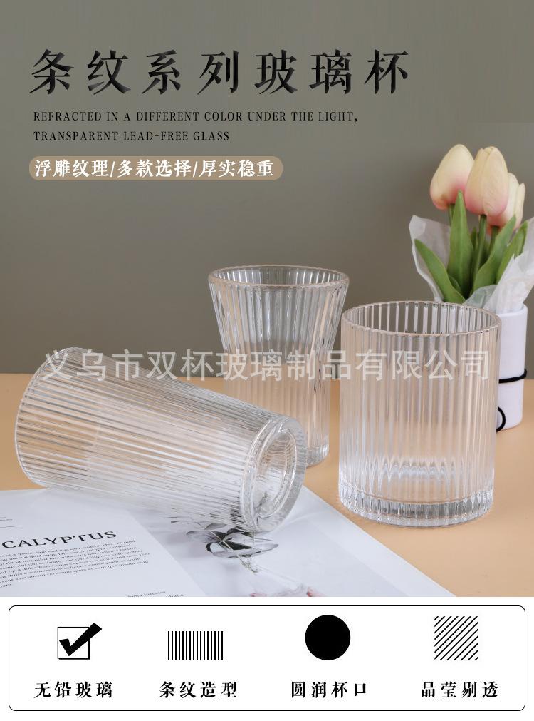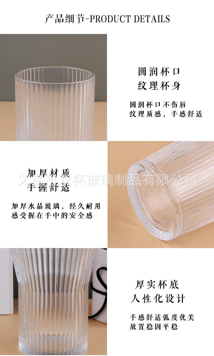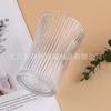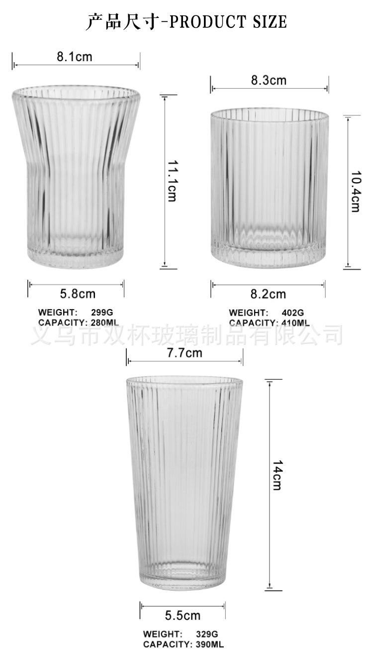Taza de rayas verticales de vidrio transparente de estilo japonés, resistente a altas temperaturas, para leche, jugo, agua, taza de té, taza de café ajustada a la cintura