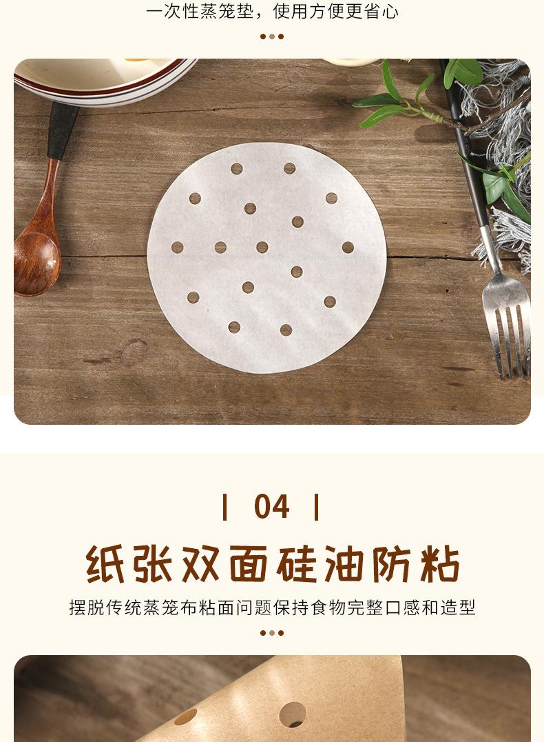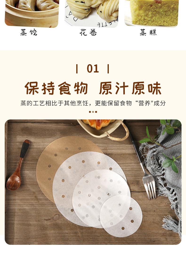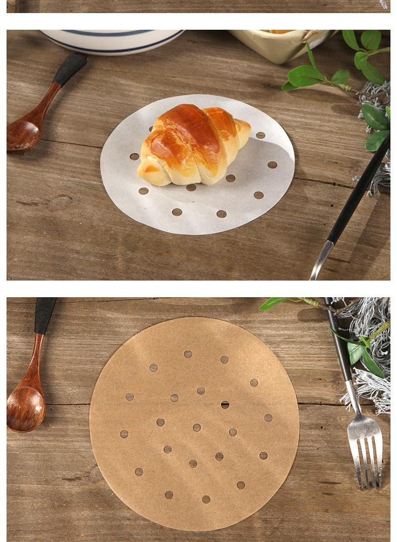 Papel vaporizador de aceite de silicona Pan vaporizado Tela vaporizada Almohadilla vaporizadora desechable Papel de grado alimenticio para el hogar Papel vaporizador redondo