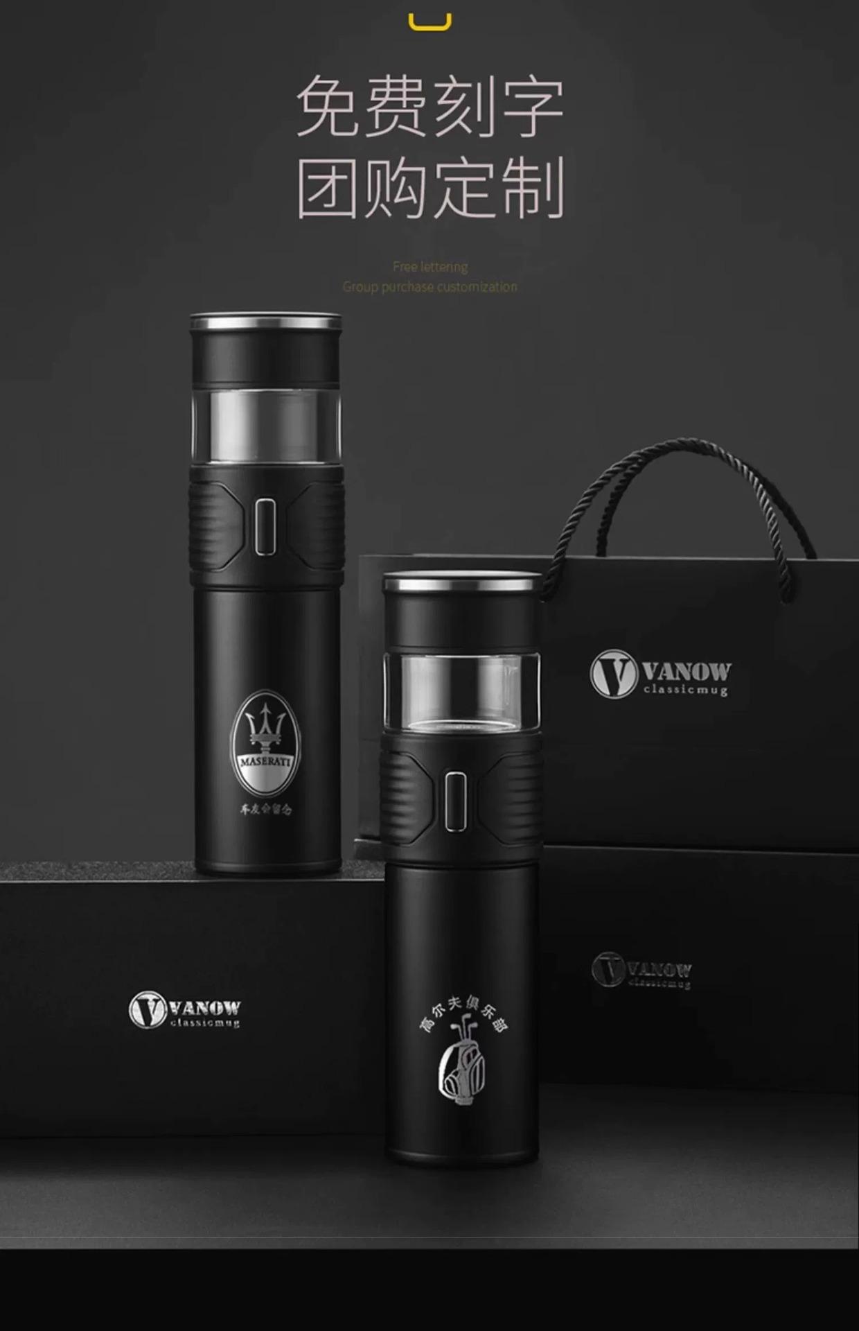 Vaso Termo Vanow Separación Agua Té Forro Cerámico Caja de Regalo Coche Regalo para Hombre Vaso de Agua Grabado