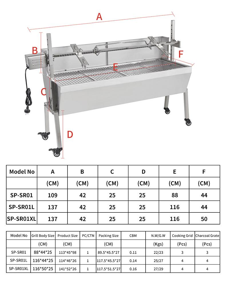 La longitud total del horno es de 135CM (versión extendida), la longitud total del horno versión regular es de 107CM