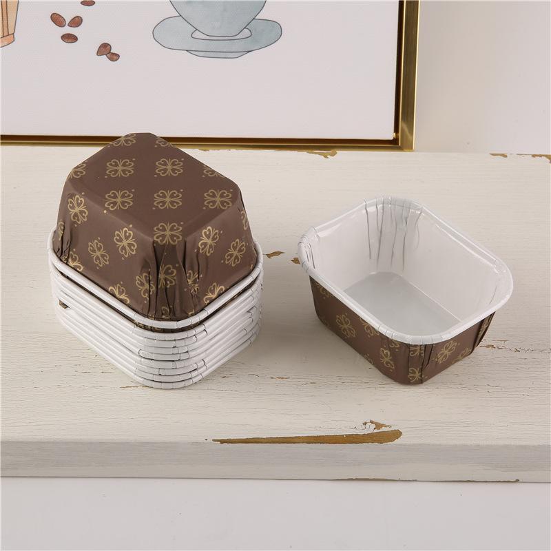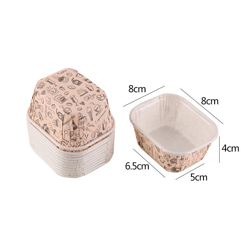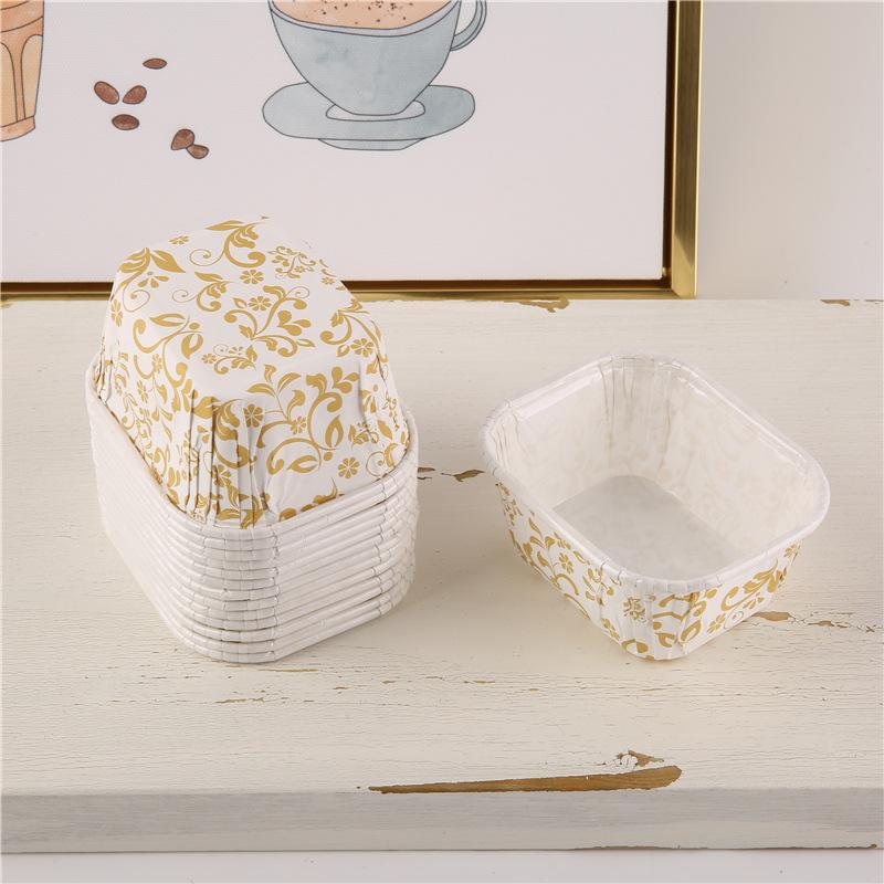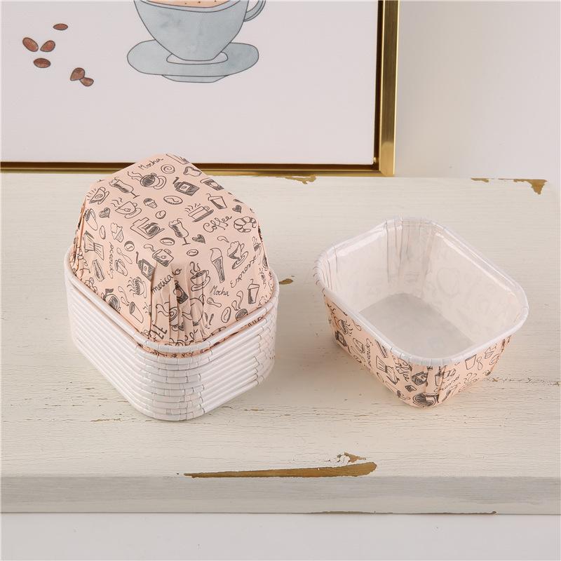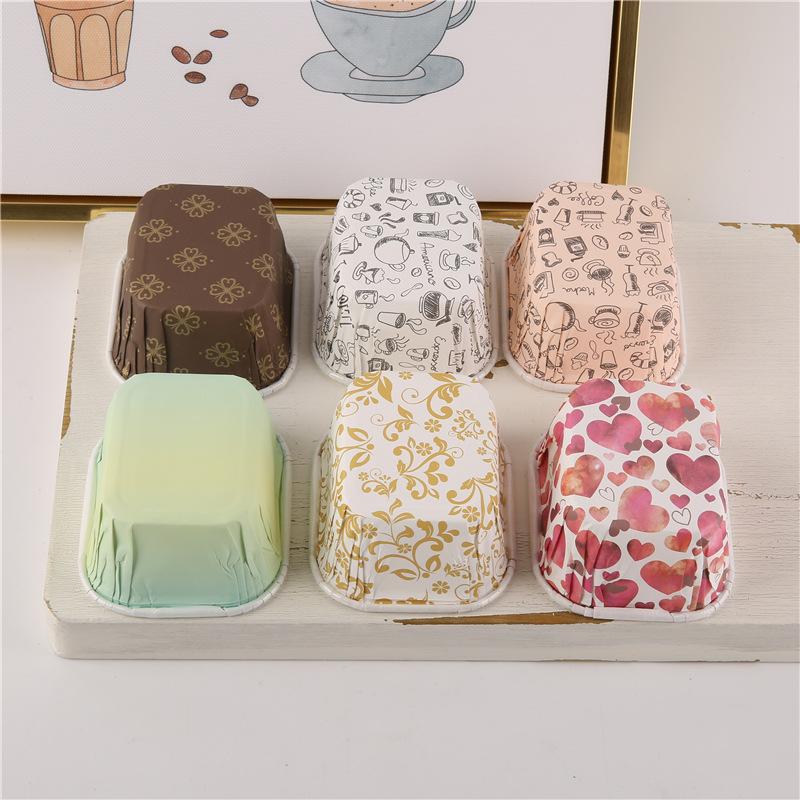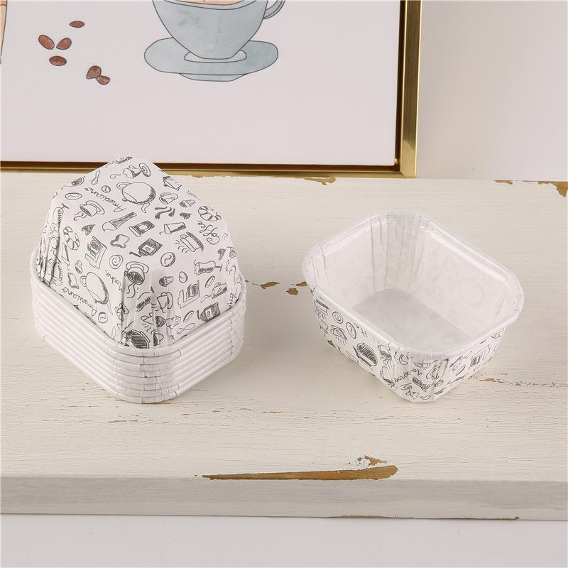 Taza de papel cuadrada pequeña para pastel, taza para pastel, nuevo rollo de impresión, taza para muffins resistente a altas temperaturas, 50 piezas/tira