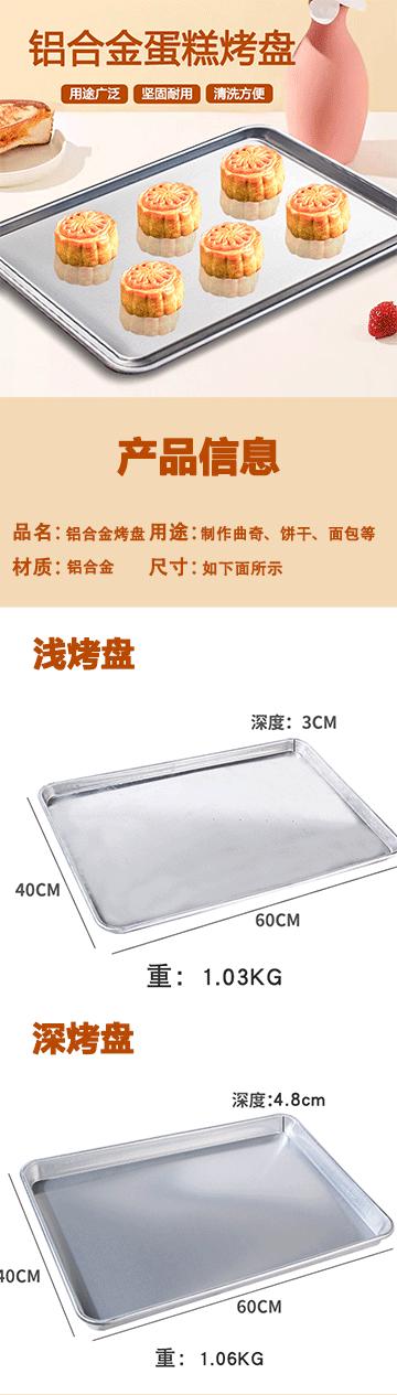 1.0 shallow aluminum cake plate (60*40*3cm), 1.0 deep aluminum cake plate (60*40*4.8cm)