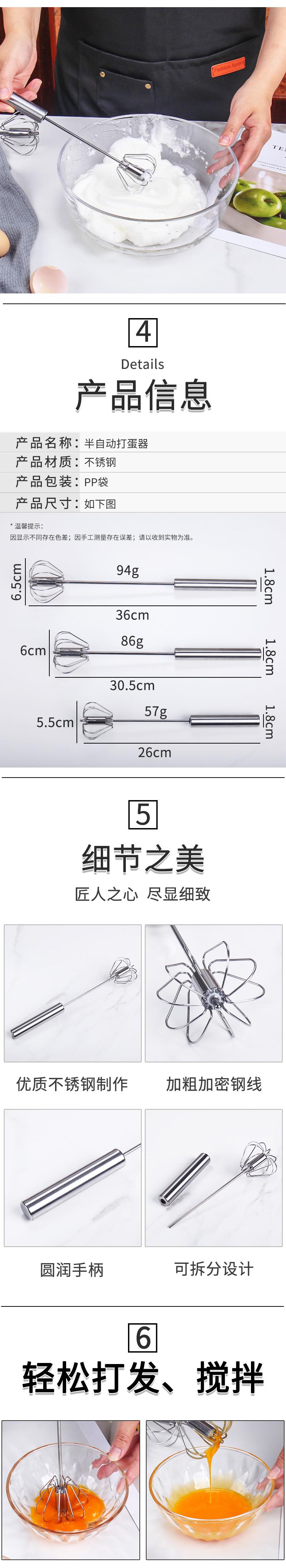 Batidor de huevos semiautomático de acero inoxidable, tipo prensa, mezclador giratorio para crema de huevos, utensilio de cocina para hornear.