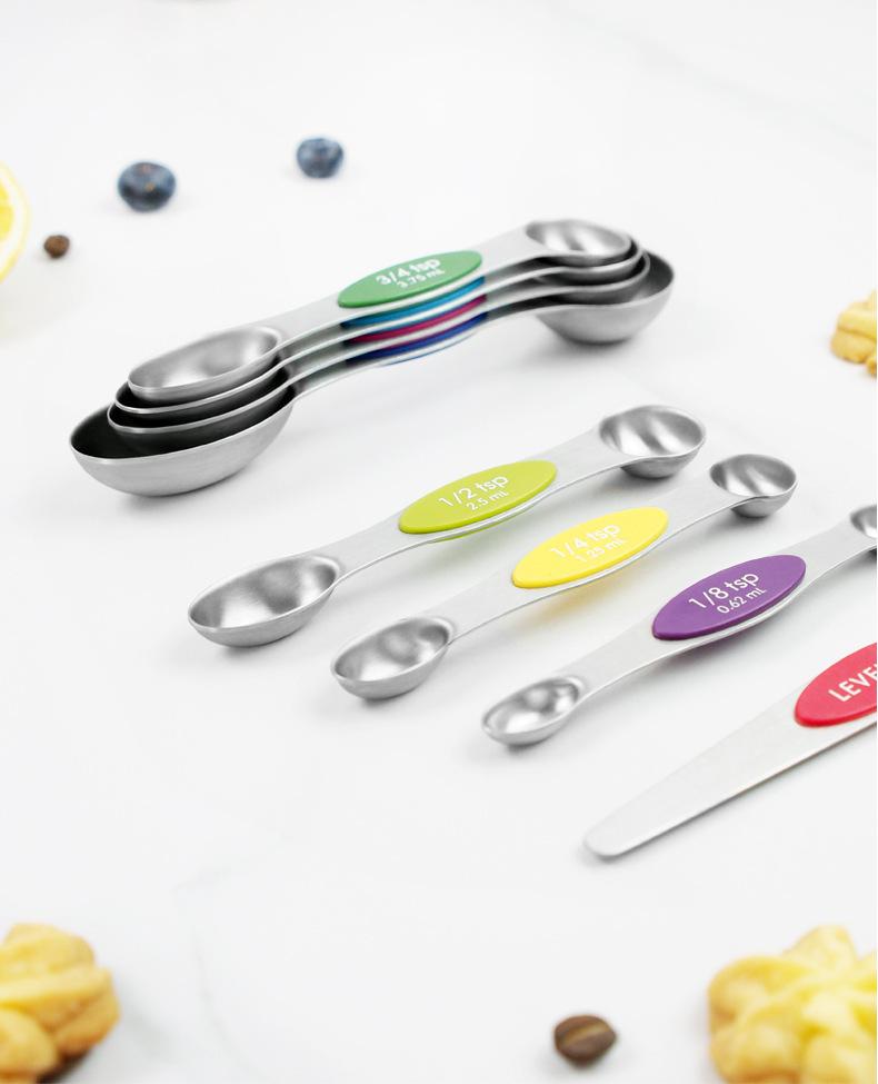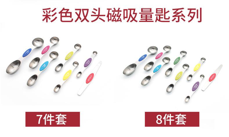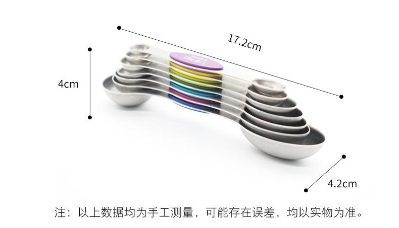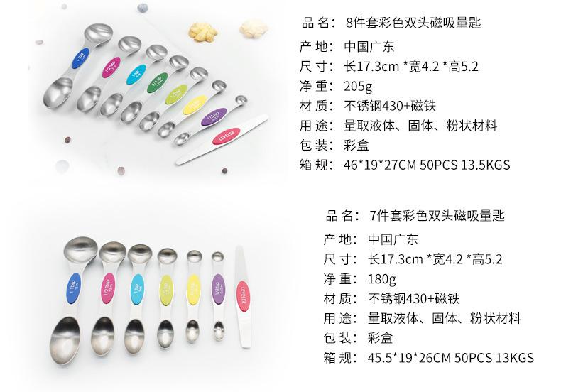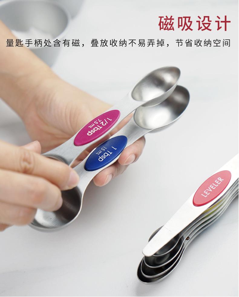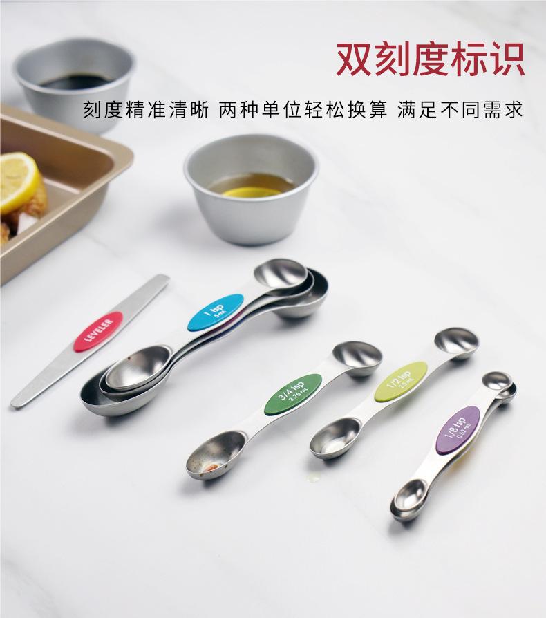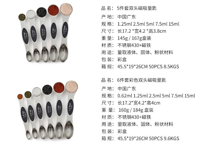 Exportación Amazon 5-6-8 juego de cucharas medidoras magnéticas de doble cabezal con escala, cuchara medidora para hornear, cuchara para condimentar de acero inoxidable