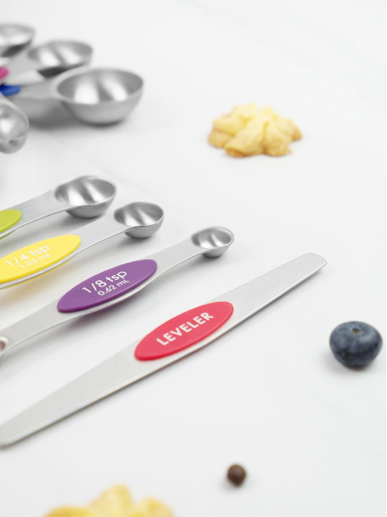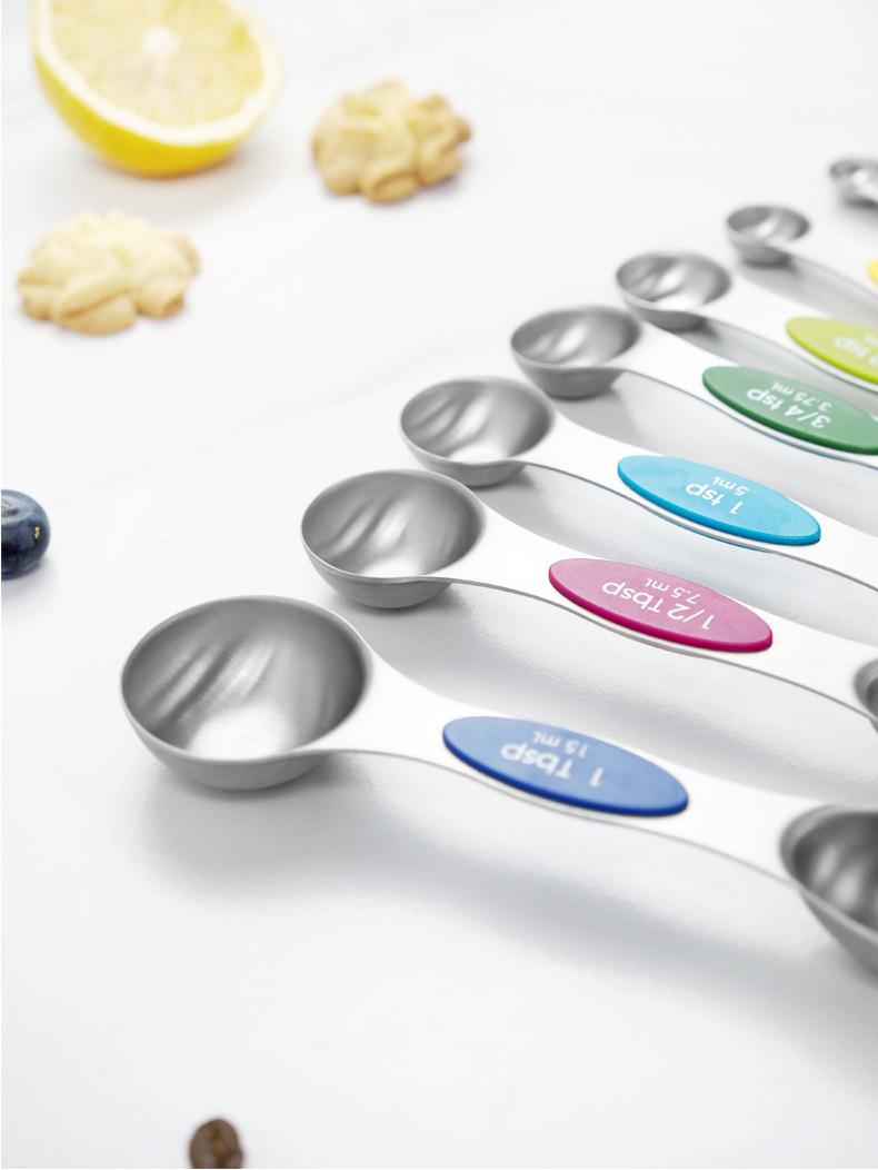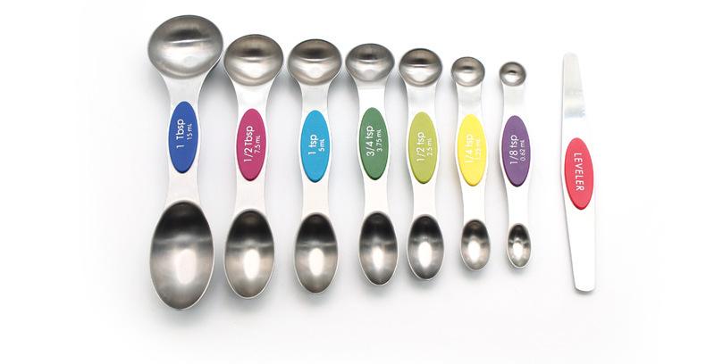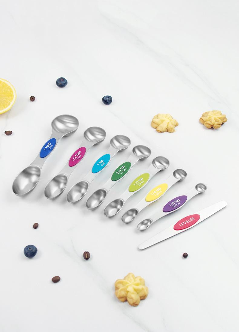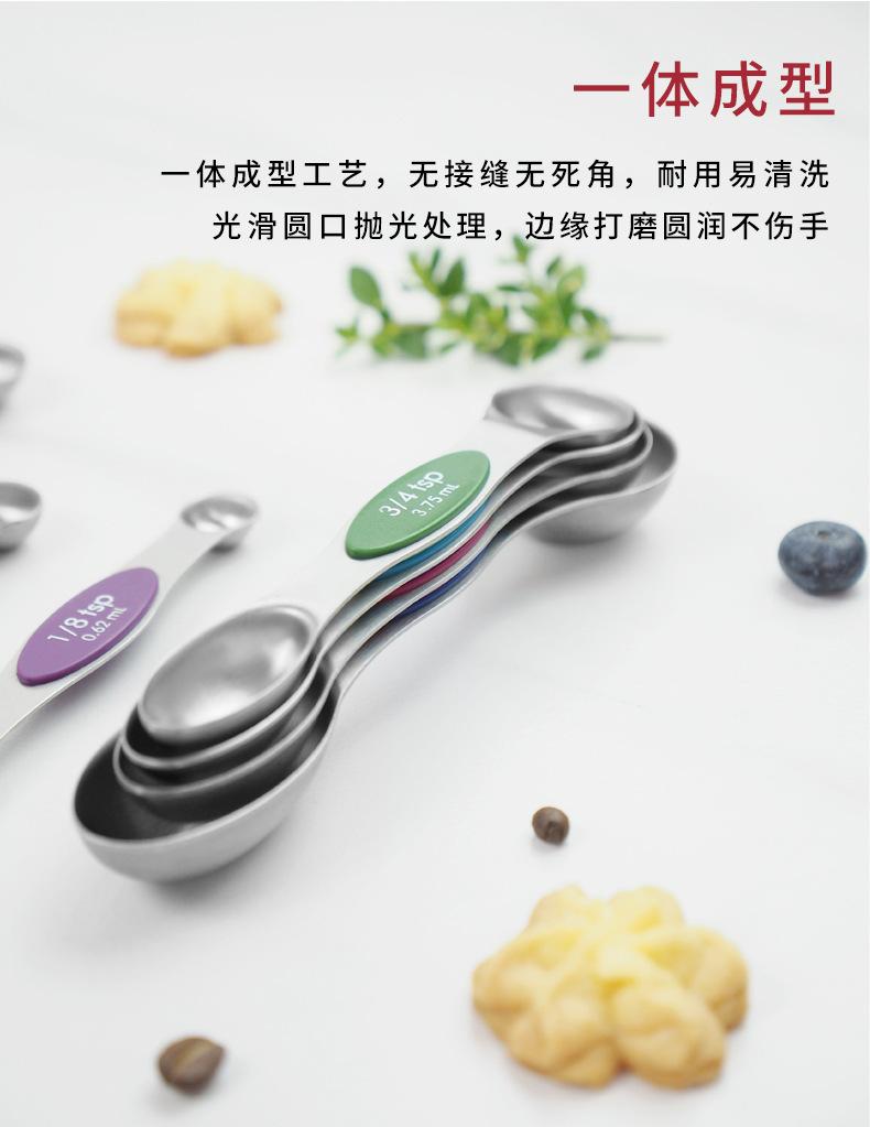 Exportación Amazon 5-6-8 juego de cucharas medidoras magnéticas de doble cabezal con escala, cuchara medidora para hornear, cuchara para condimentar de acero inoxidable