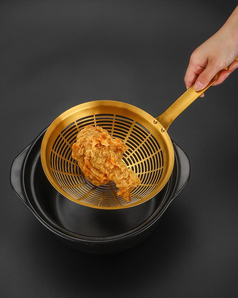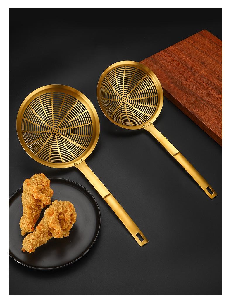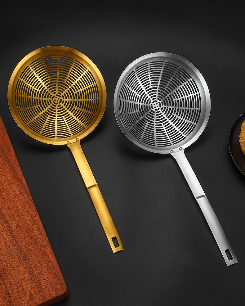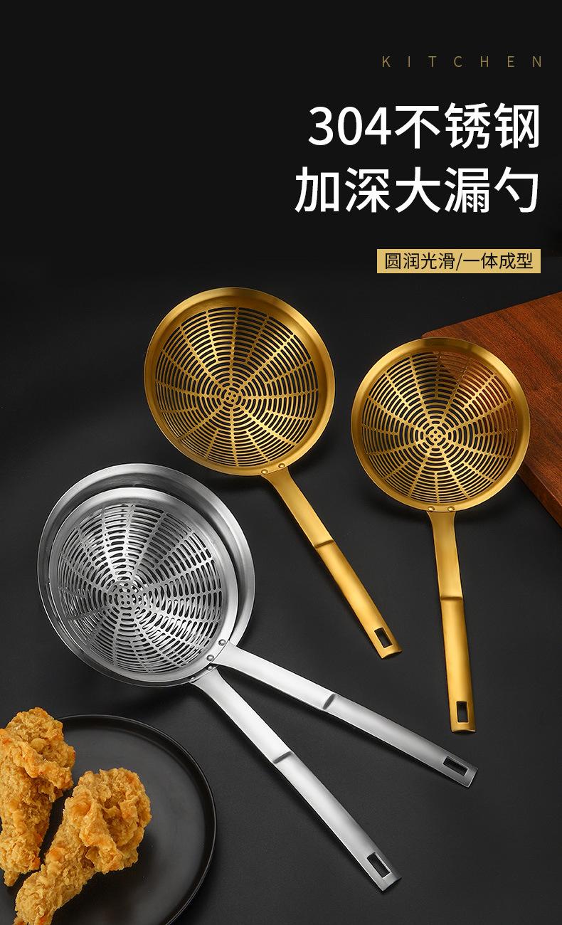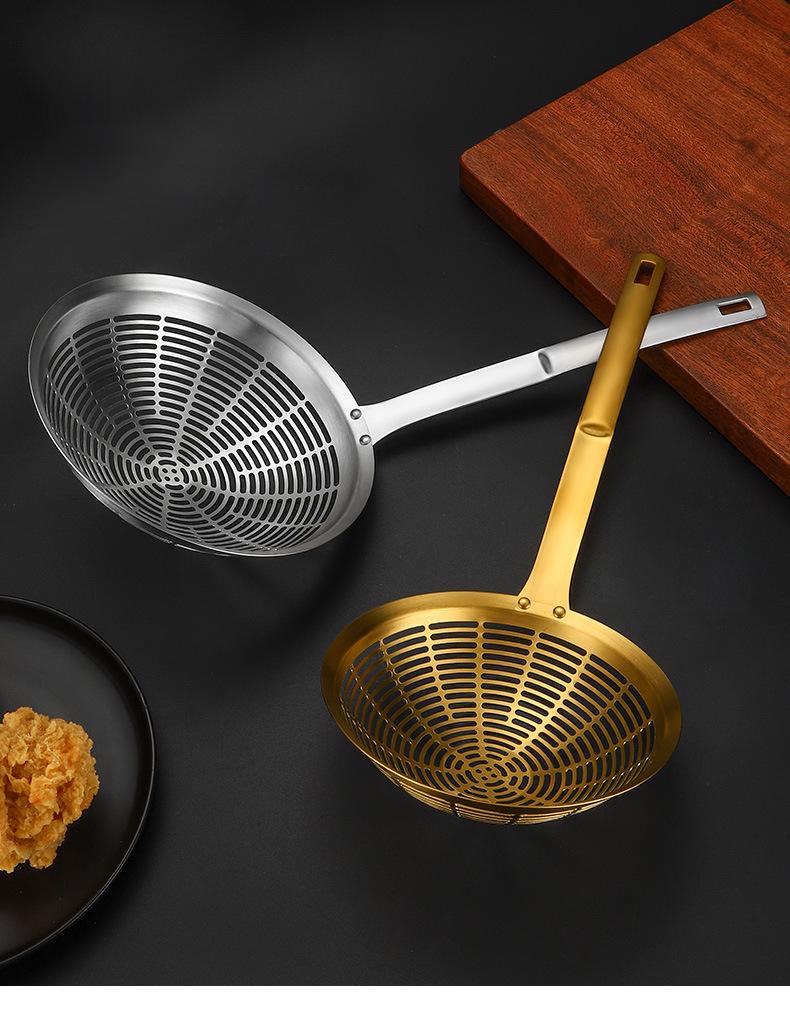 Cuchara coladora grande con mango cuadrado de acero inoxidable 304, colador de malla para aceite frito con aislamiento espesado, filtro para olla caliente, cuchara para escoria