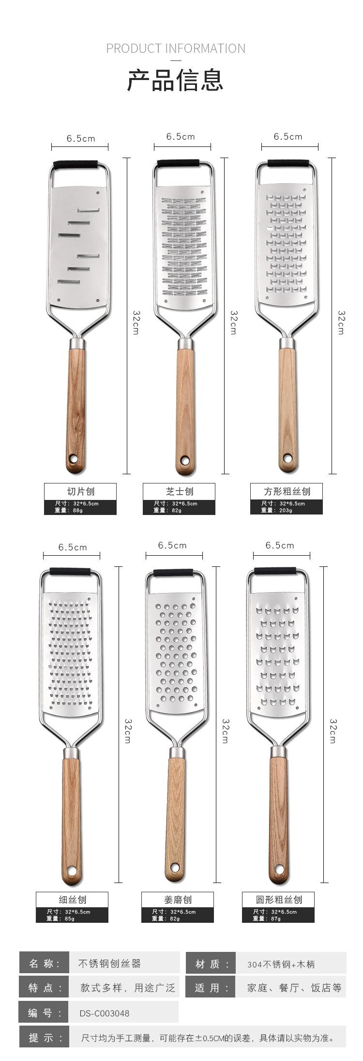 Square coarse silk planer, Ginger grater, Slice planer, Fine wire planer, Round coarse silk planer, Cheese planer